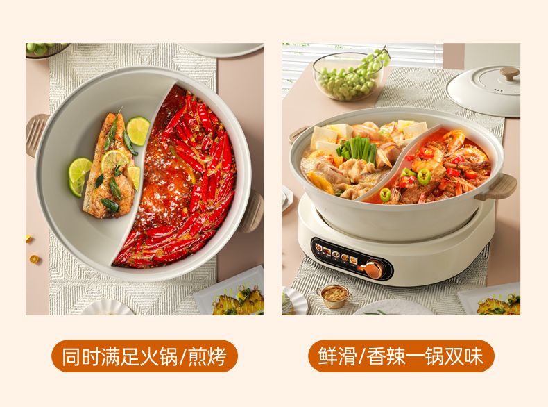 火锅家用分体式鸳鸯火锅多功能料理锅一体锅烤肉热锅煎烤锅