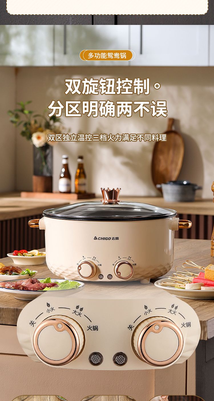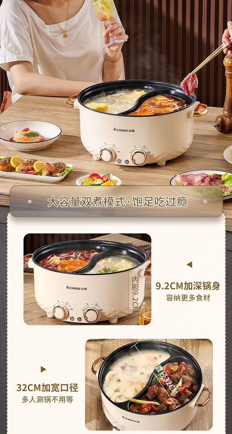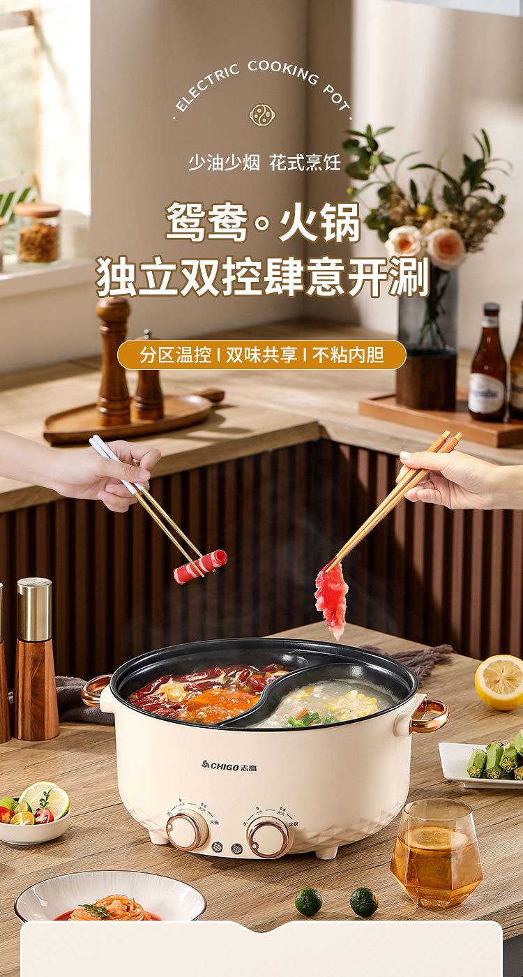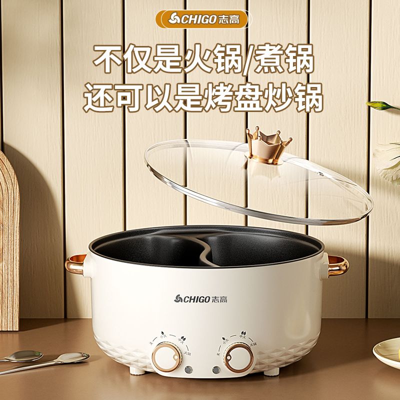 志高鸳鸯锅电火锅锅宿舍电热火锅家用大容量多功能一体电煮锅电锅