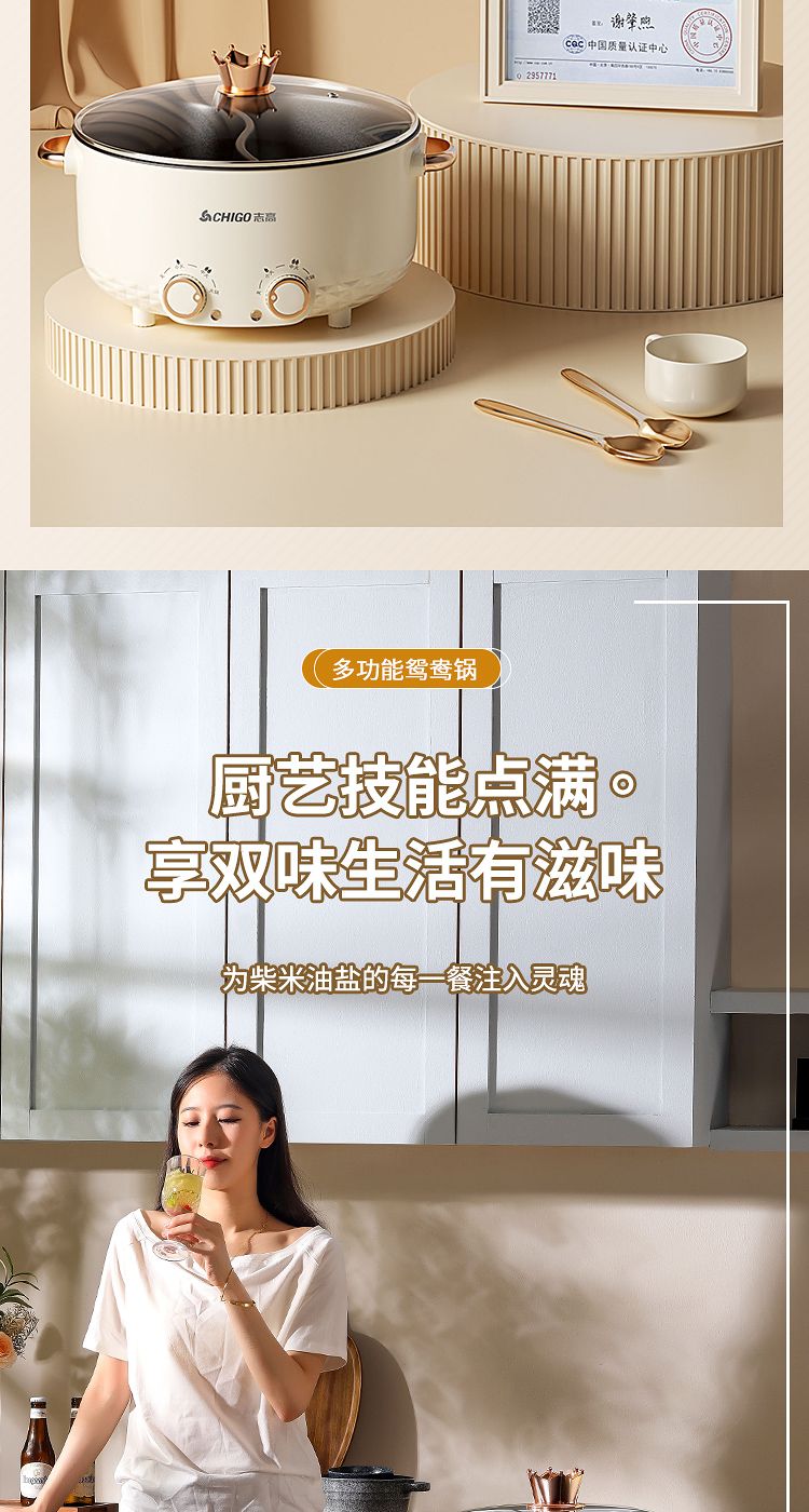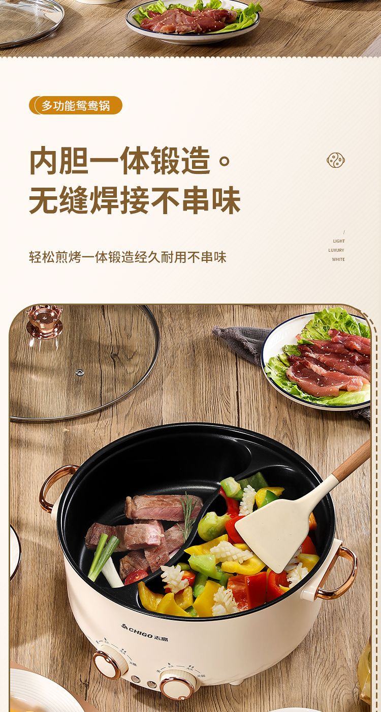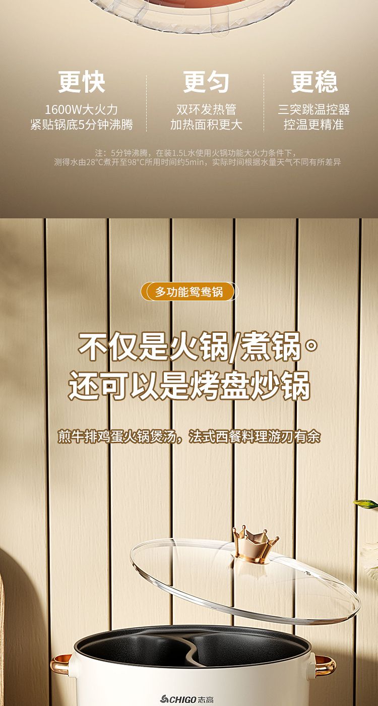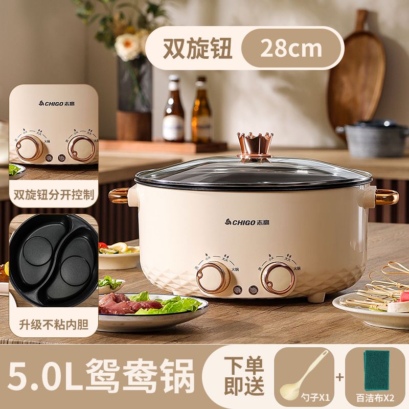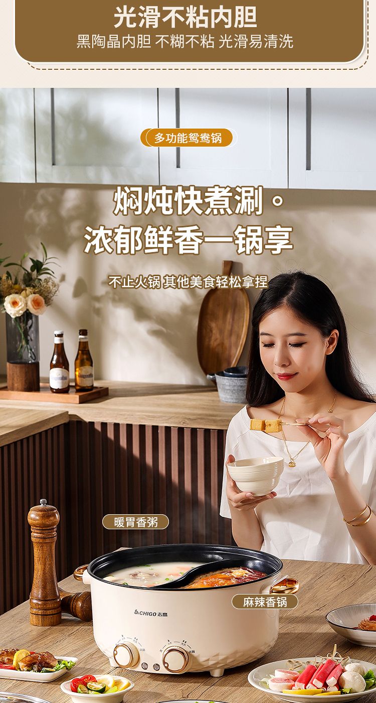 志高鸳鸯锅电火锅锅宿舍电热火锅家用大容量多功能一体电煮锅电锅