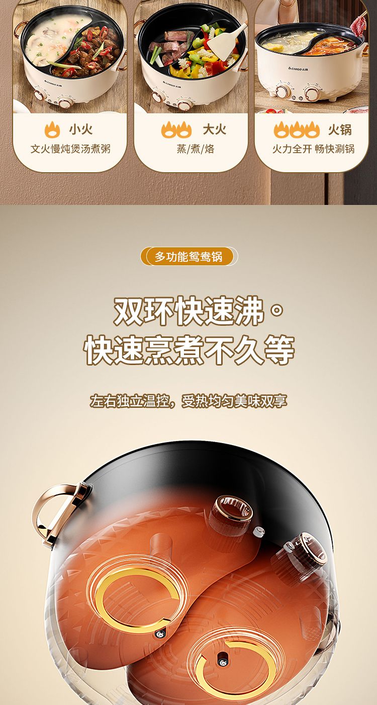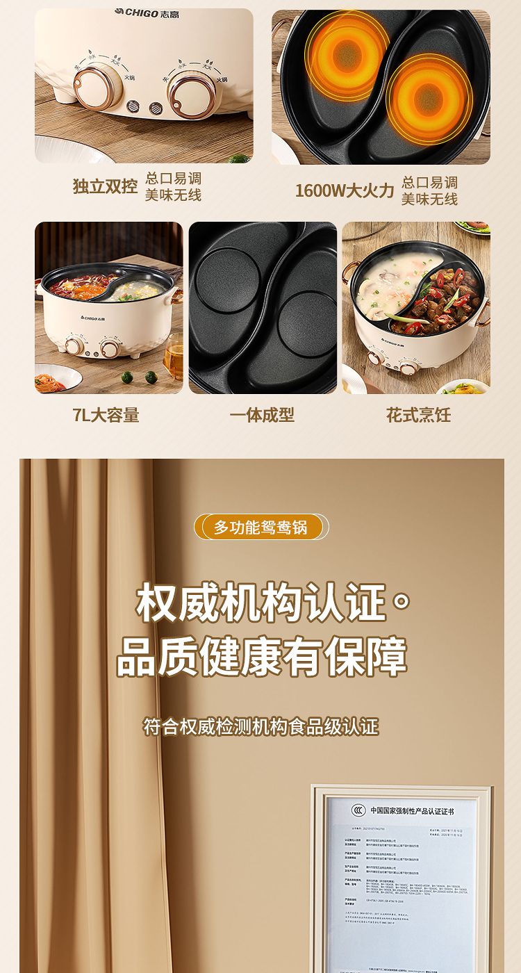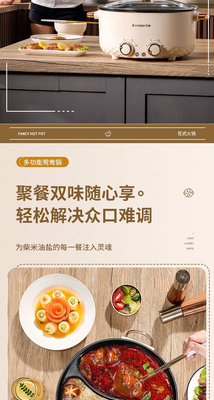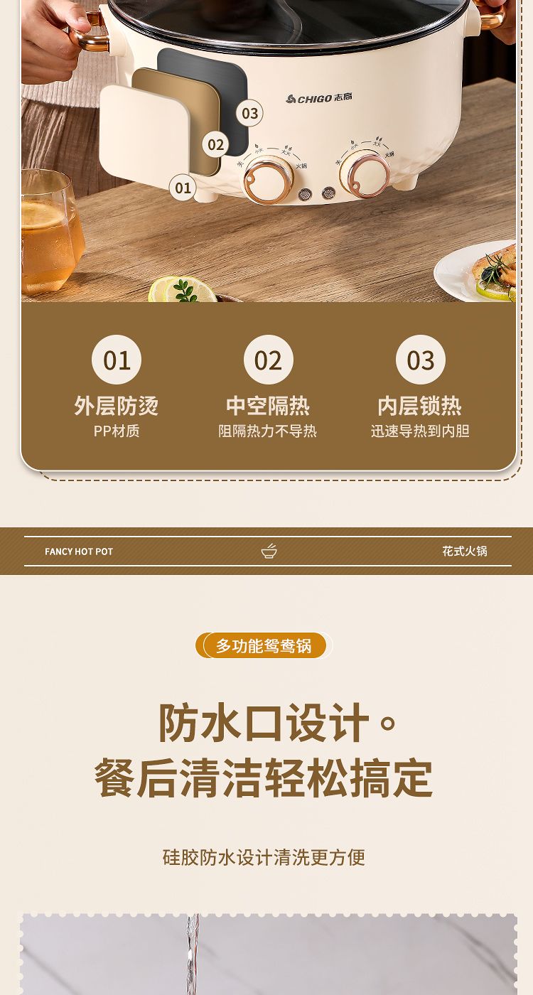 志高鸳鸯锅电火锅锅宿舍电热火锅家用大容量多功能一体电煮锅电锅