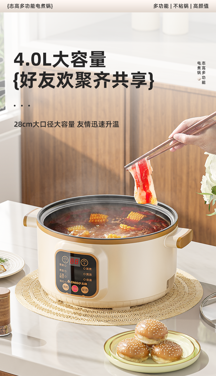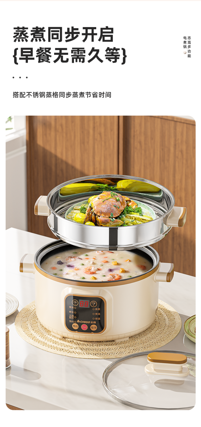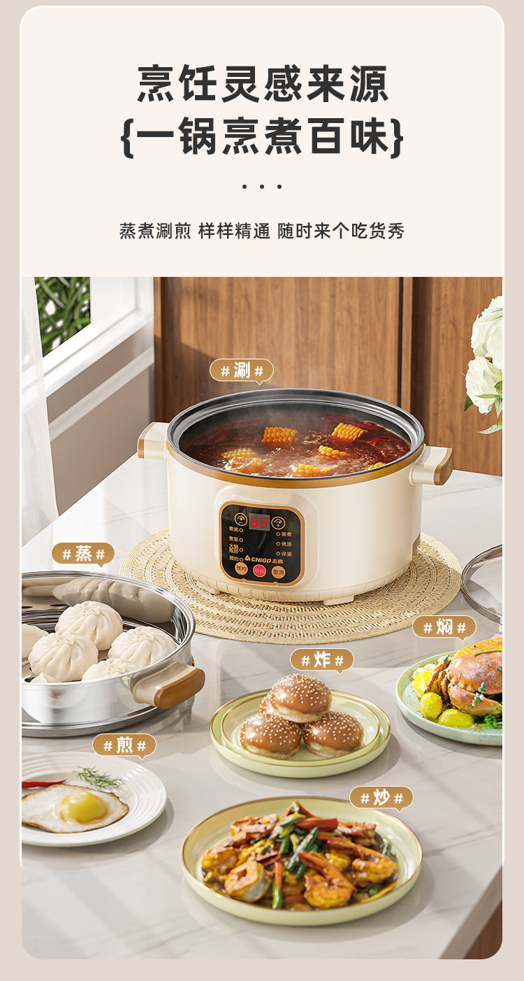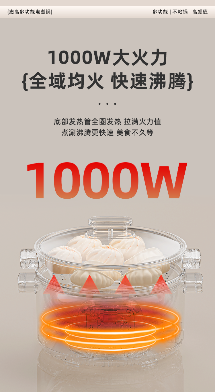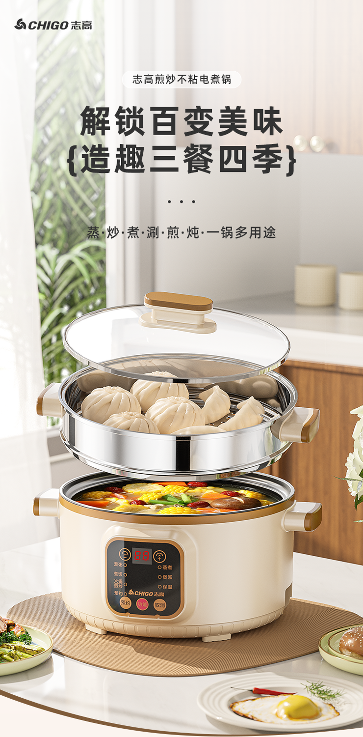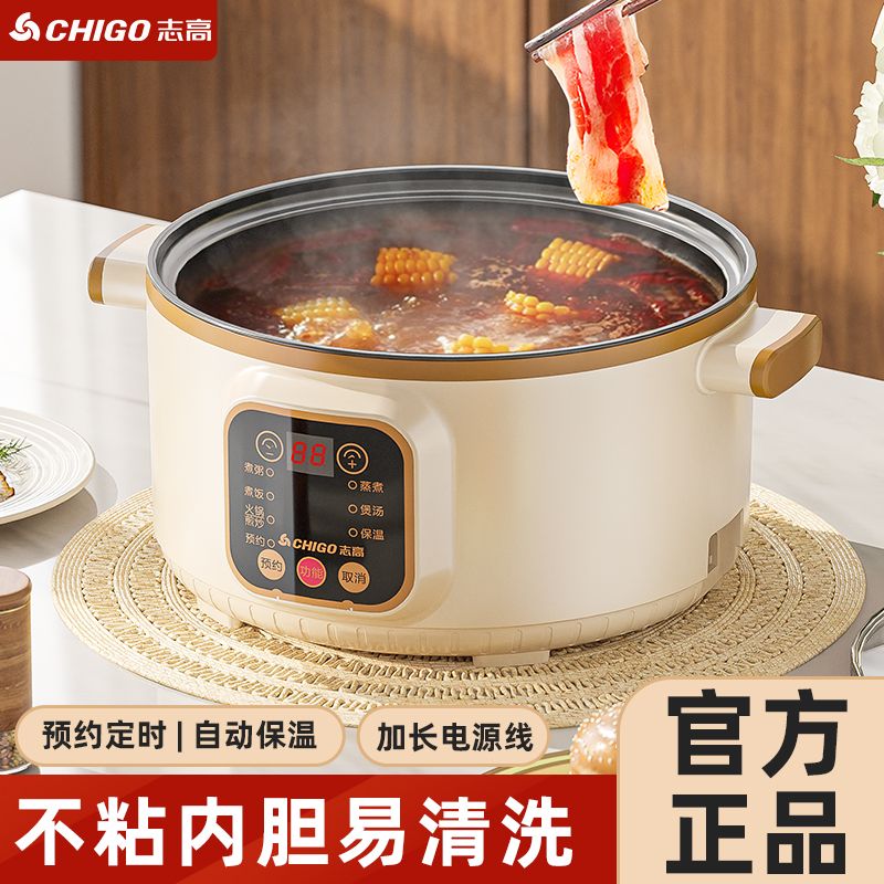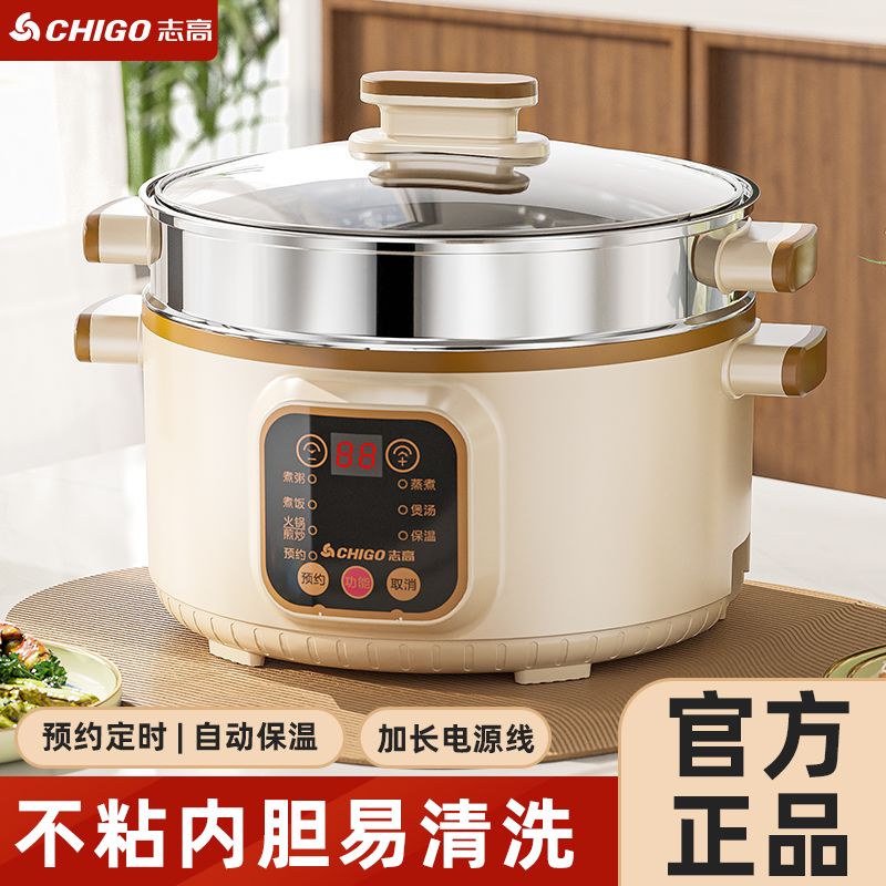 志高电煮锅多功能电火锅宿舍锅电热锅学生锅煮面泡面锅蒸煮一体锅