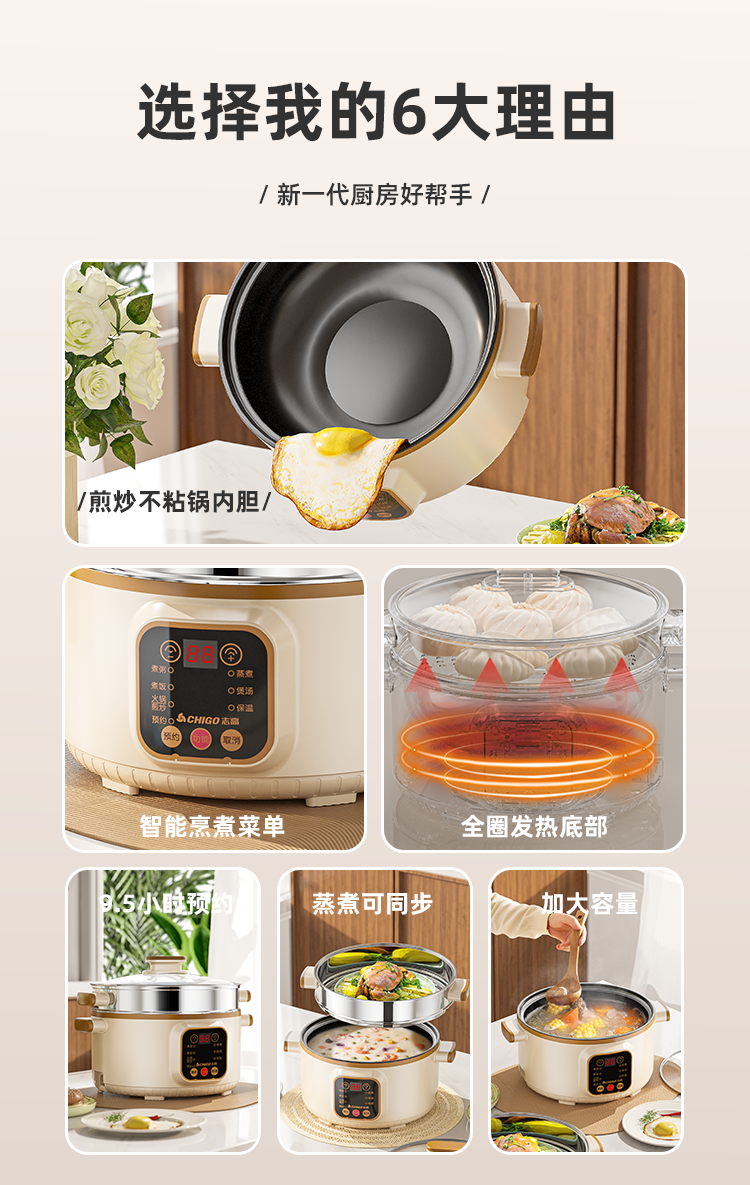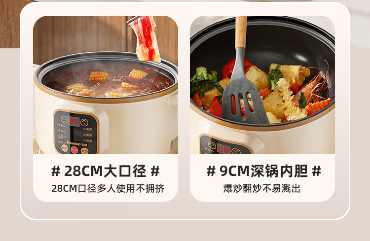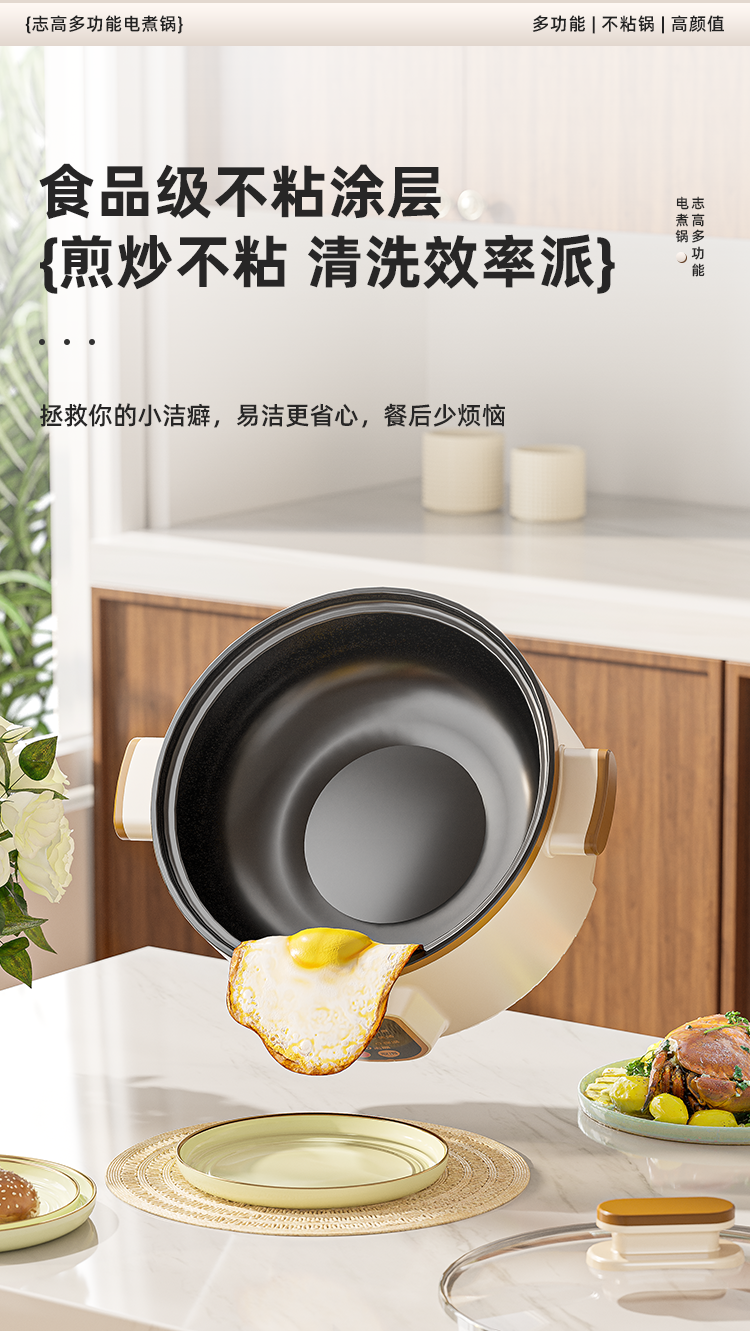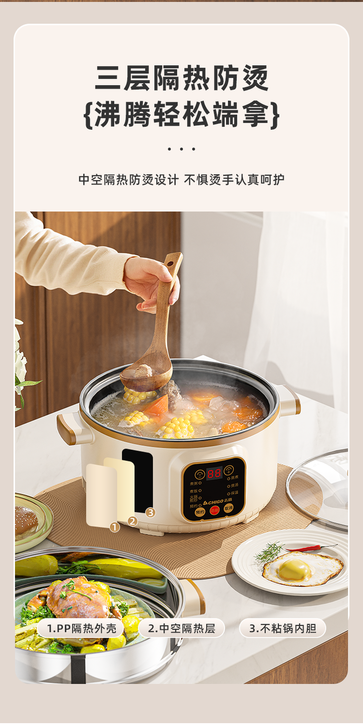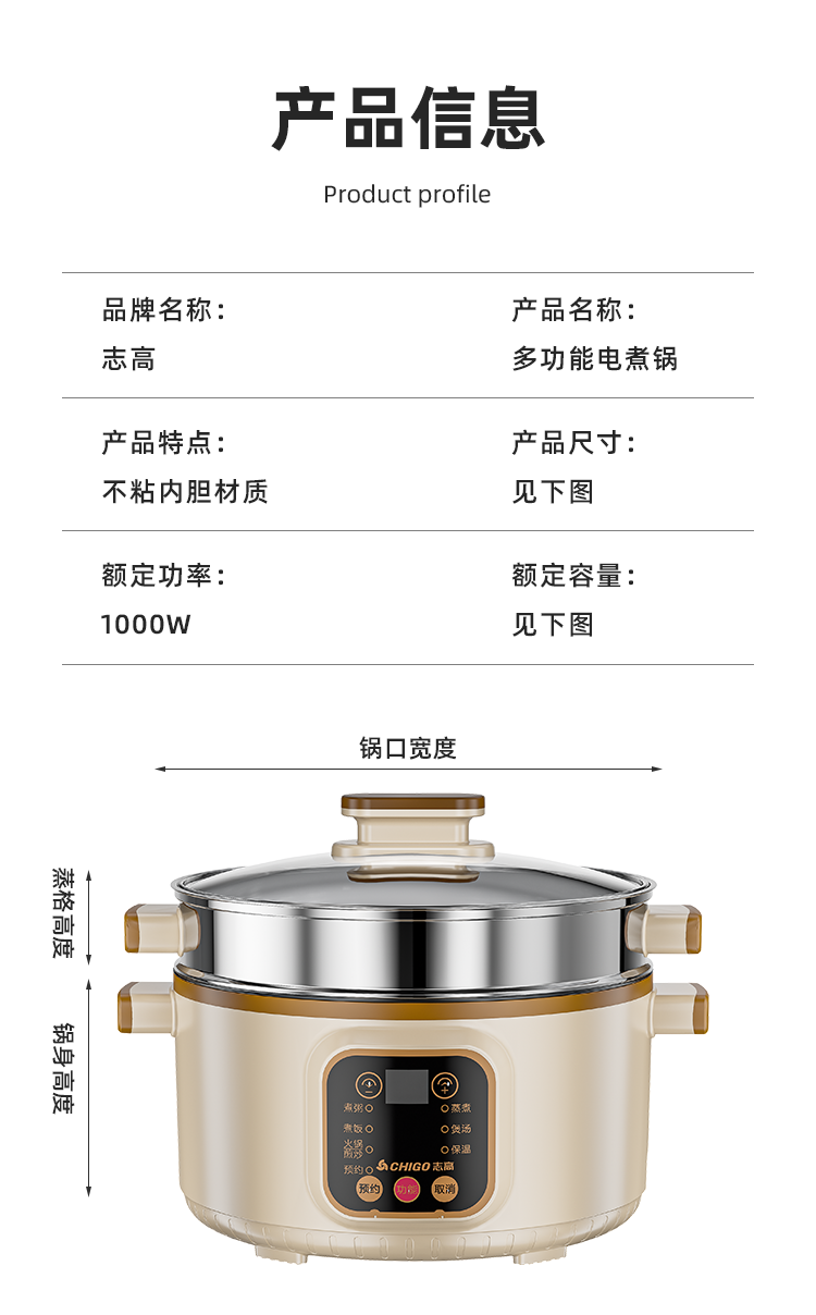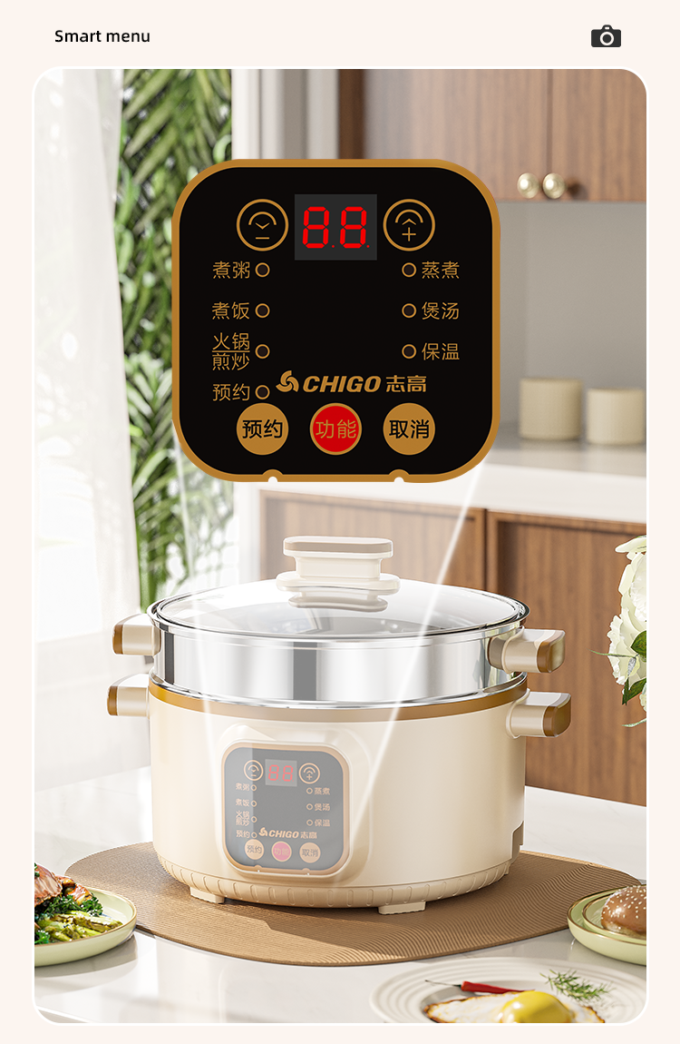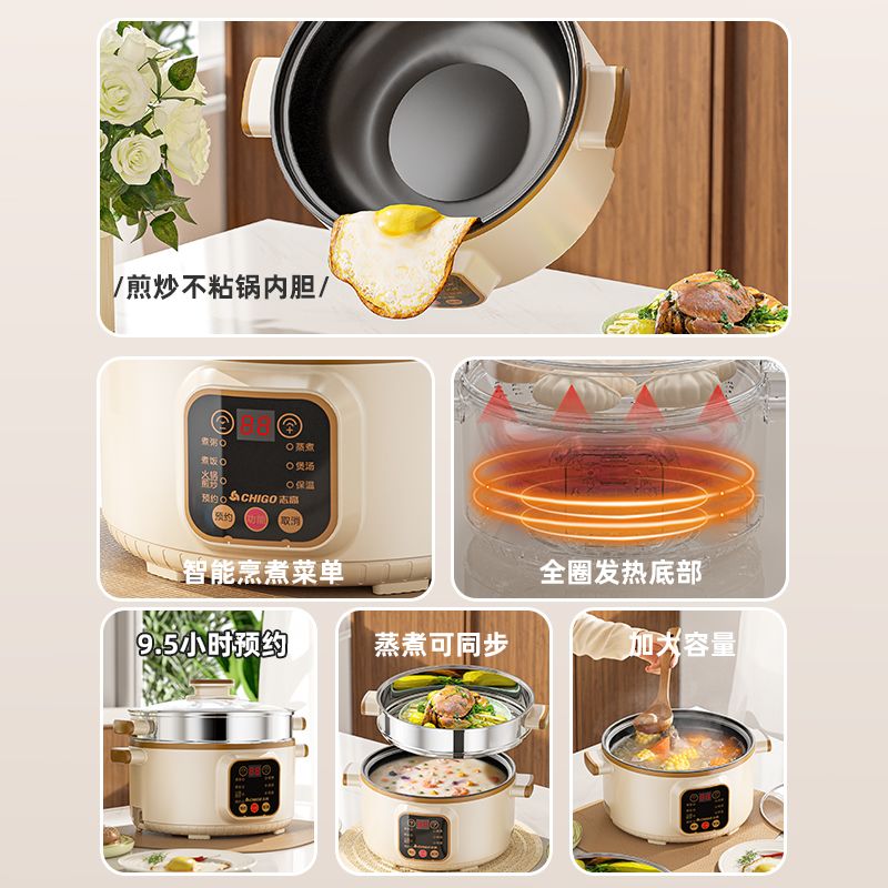 志高电煮锅多功能电火锅宿舍锅电热锅学生锅煮面泡面锅蒸煮一体锅