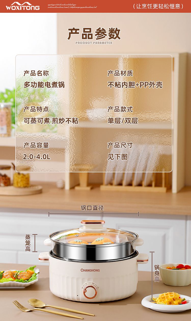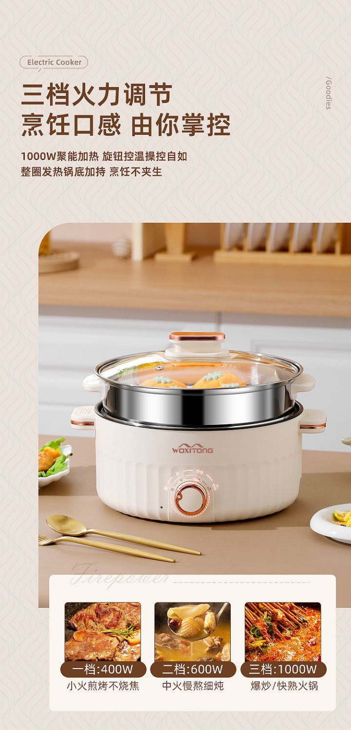 WOXITONG电煮多功能家用学生宿舍煮面电锅电炒锅蒸煮一体电热火锅