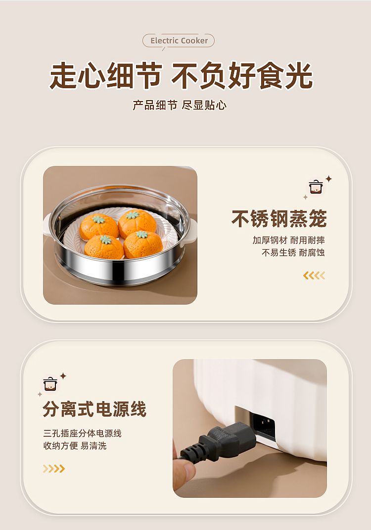 | creamy-white 2.0l + steamer [applicable to 1 person]](米白色2.0L+蒸笼【适用1人】) | USD $10.66 | 999999 piece available |