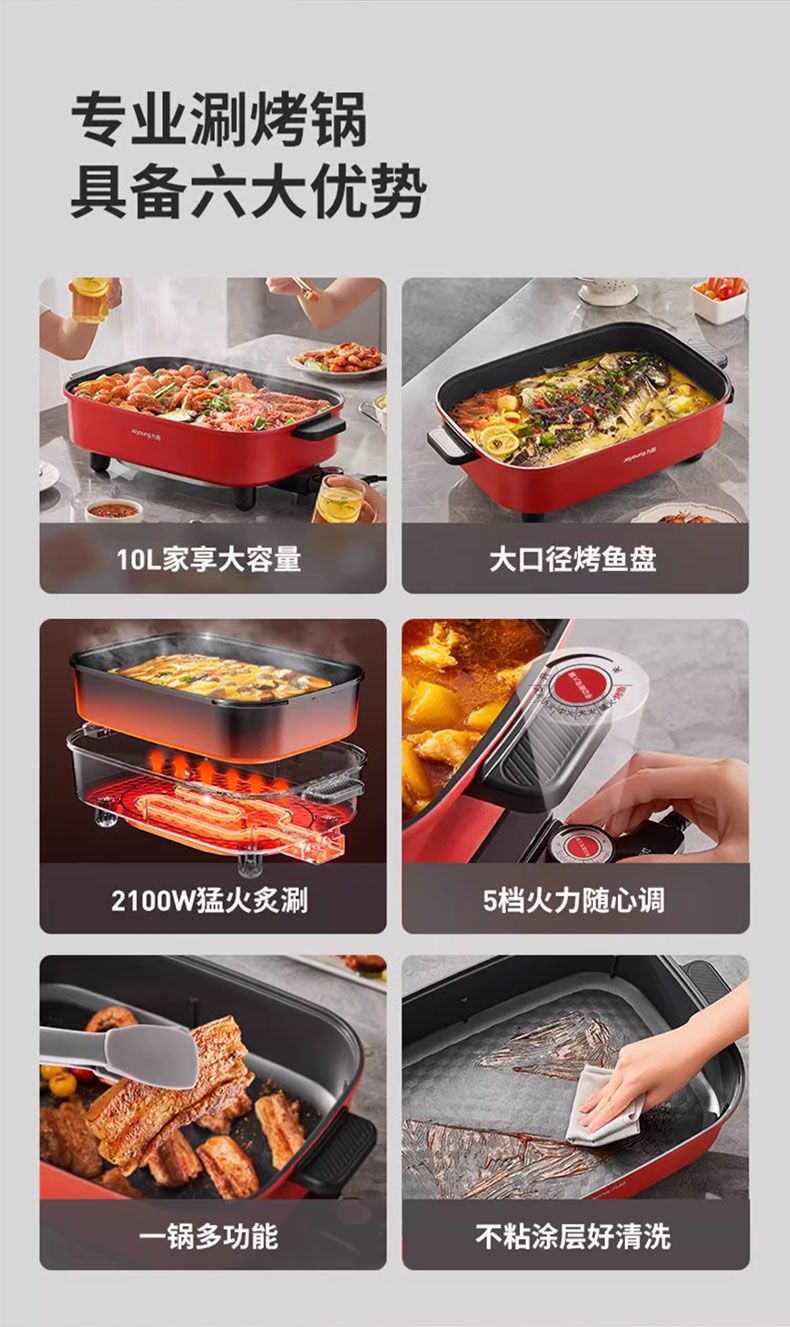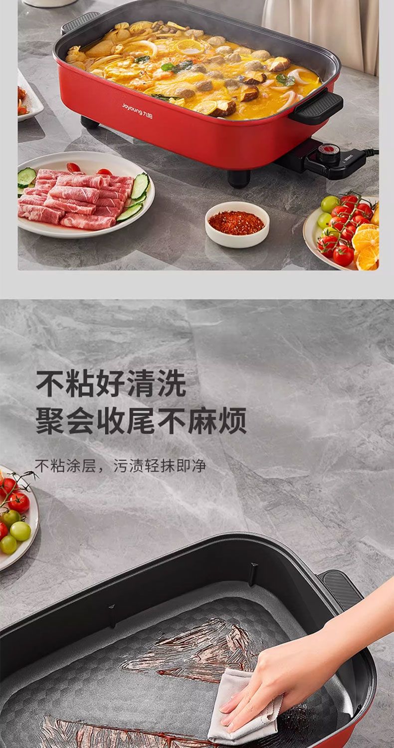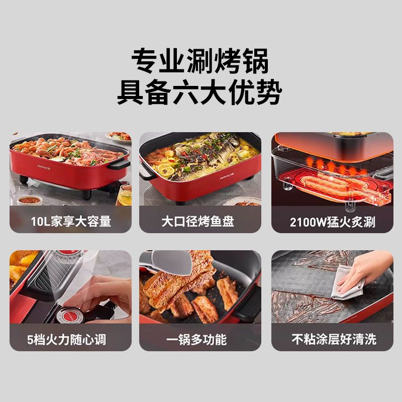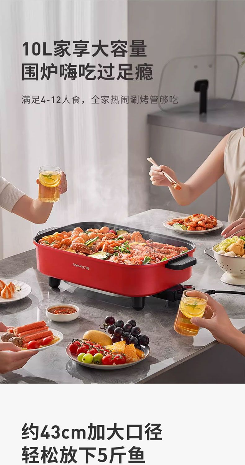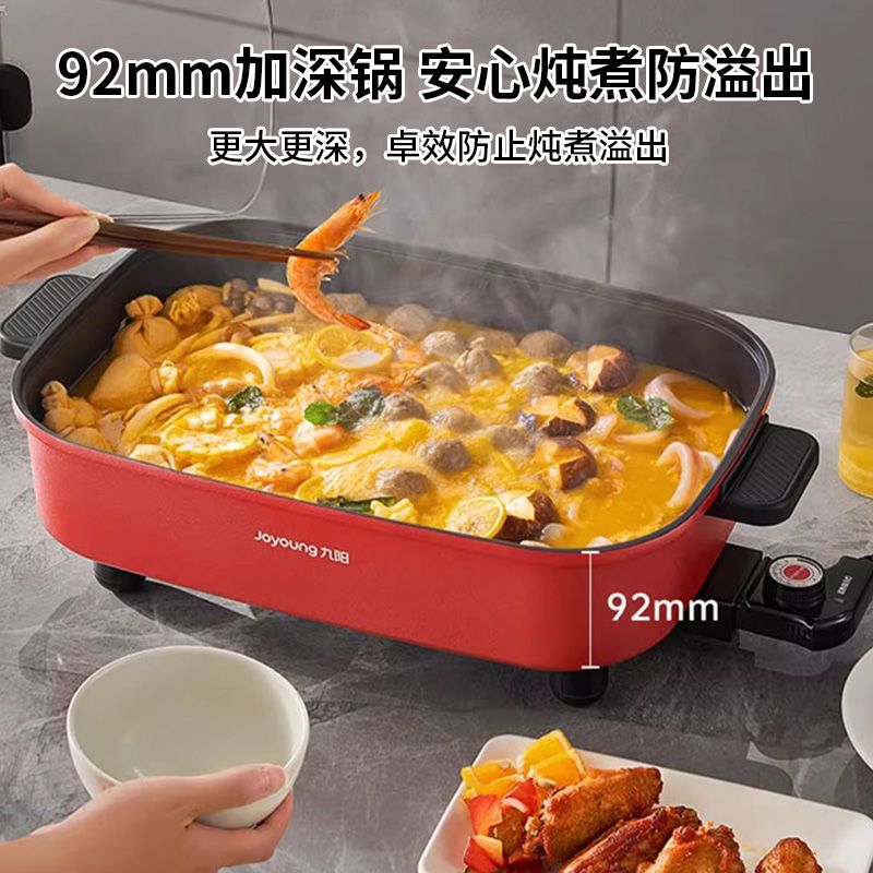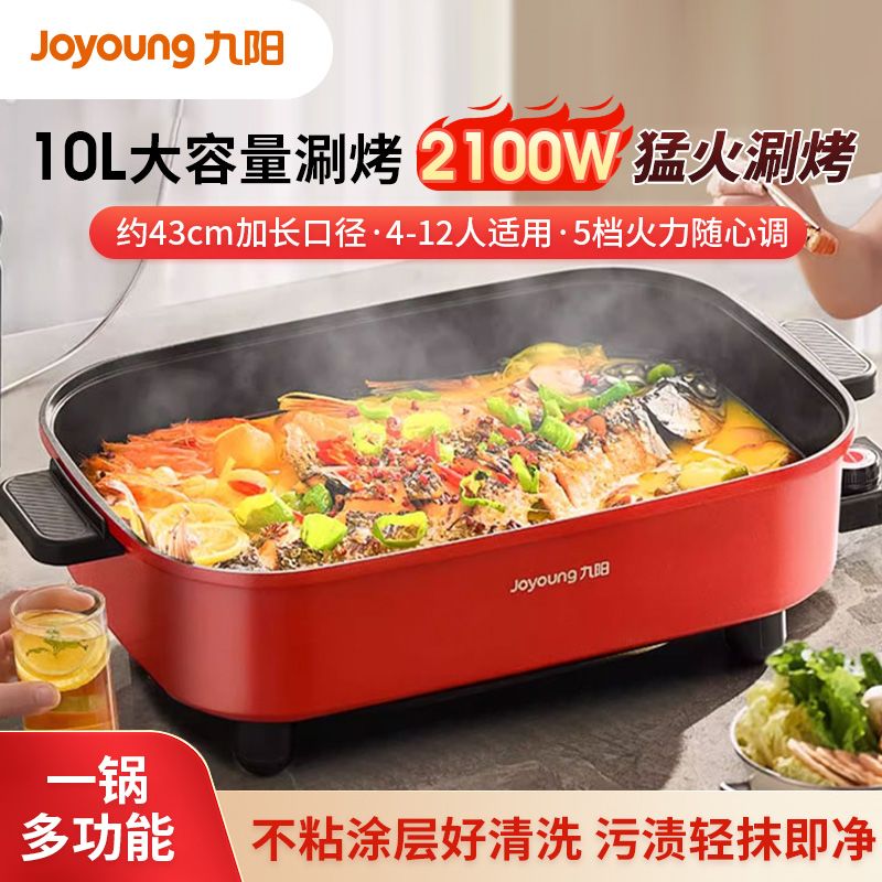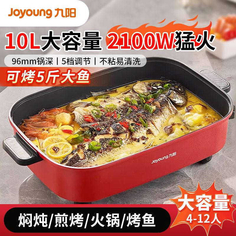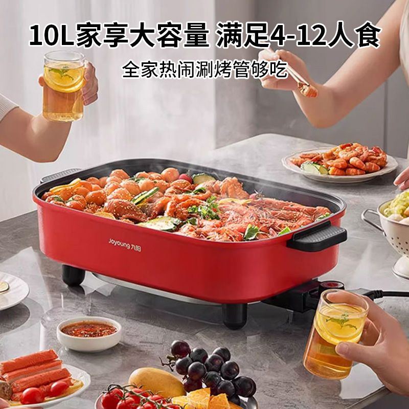 九阳电火锅家用10L超大容量多功能一体电热锅电炒锅电煮锅不粘锅