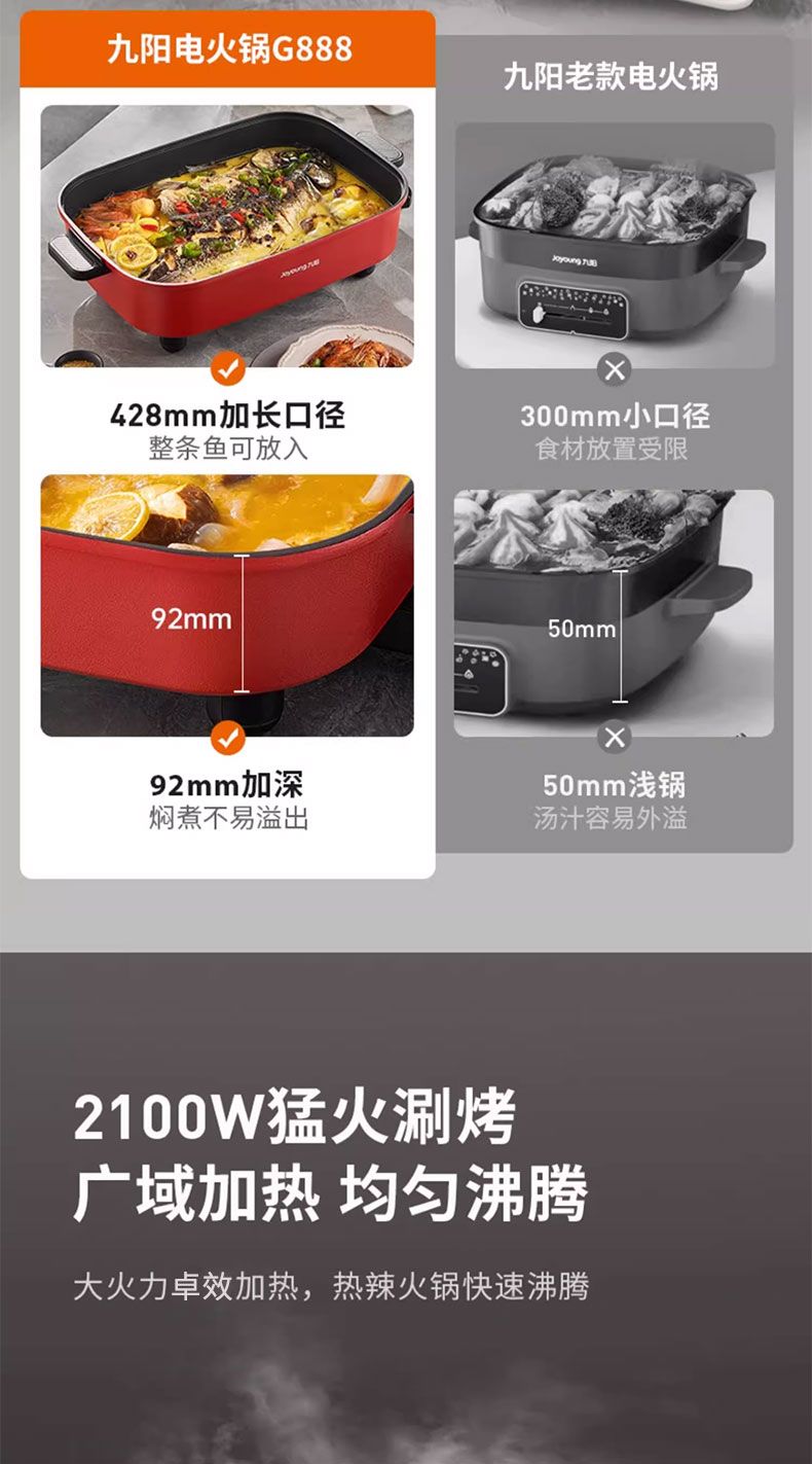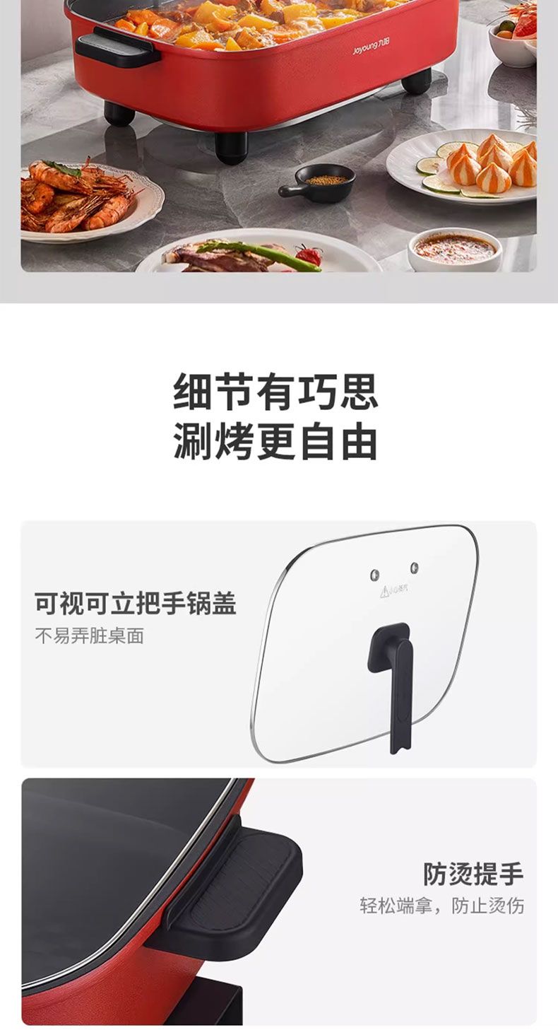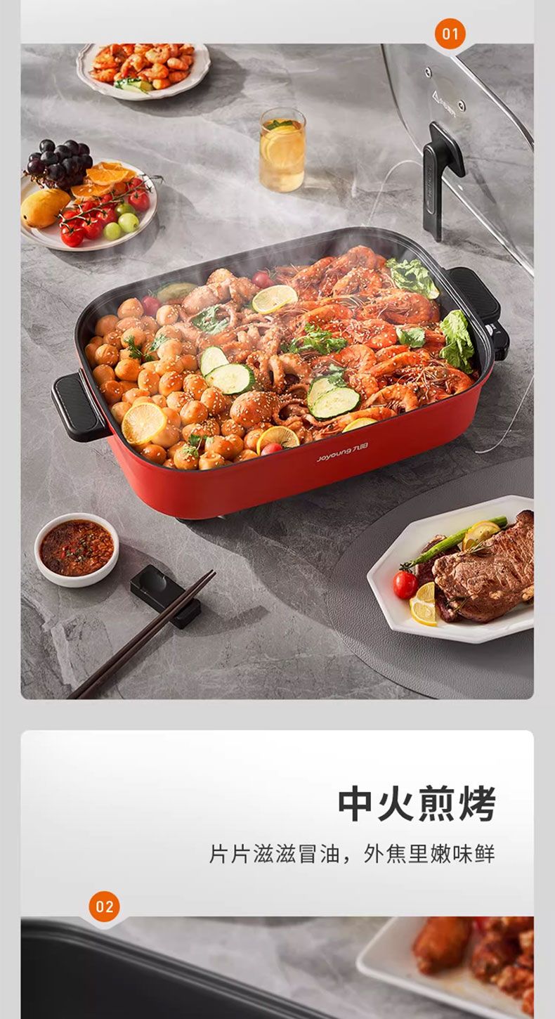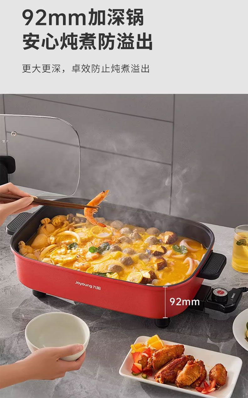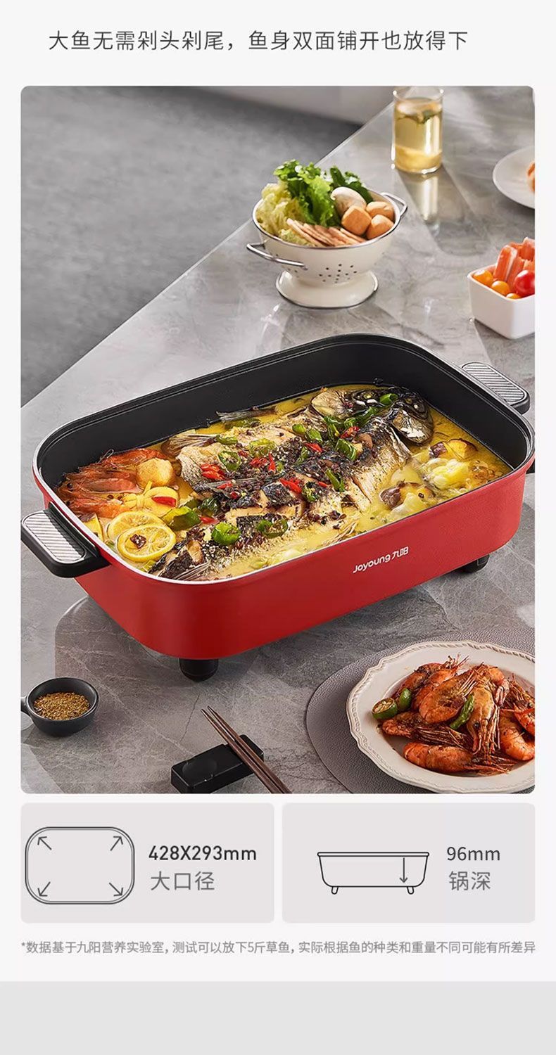 九阳电火锅家用10L超大容量多功能一体电热锅电炒锅电煮锅不粘锅