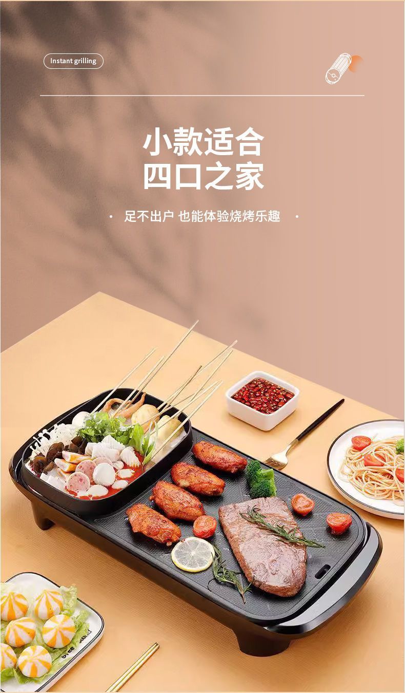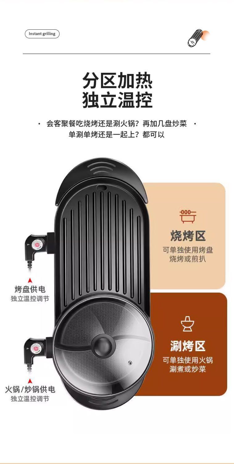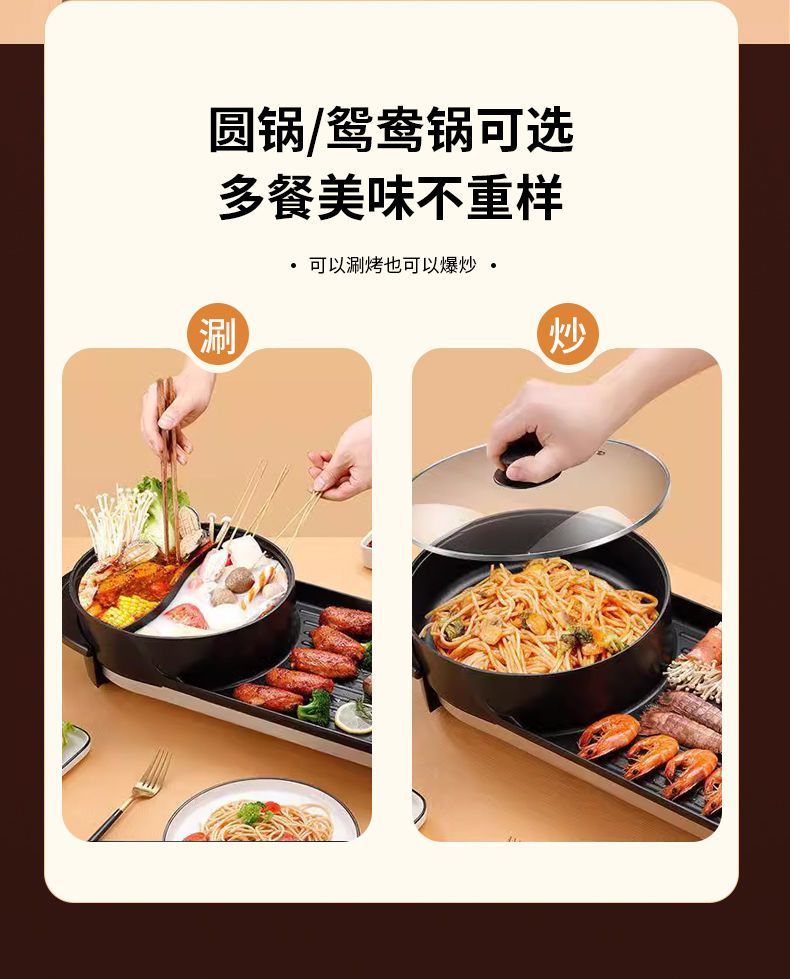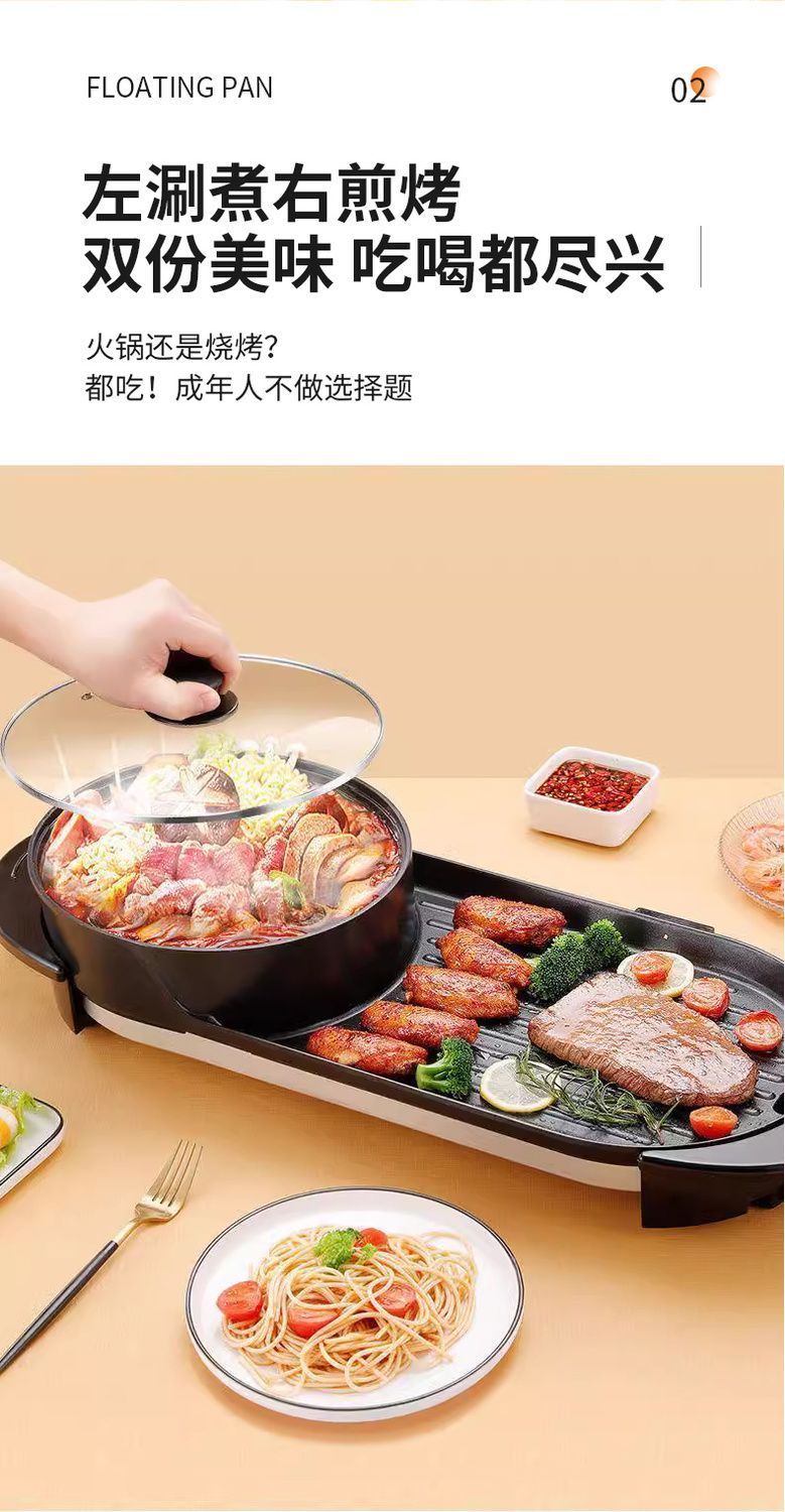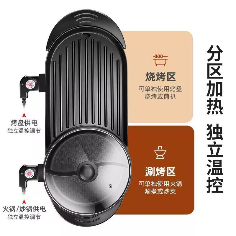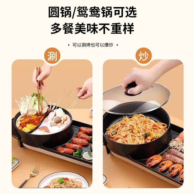电热火锅家用无烟烤肉多功能料理锅室内鸳鸯火锅一体锅烤鱼烤肉机