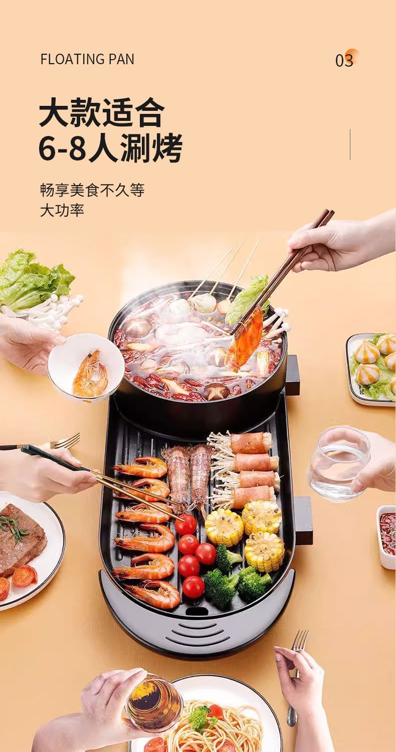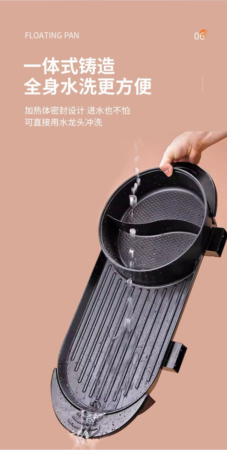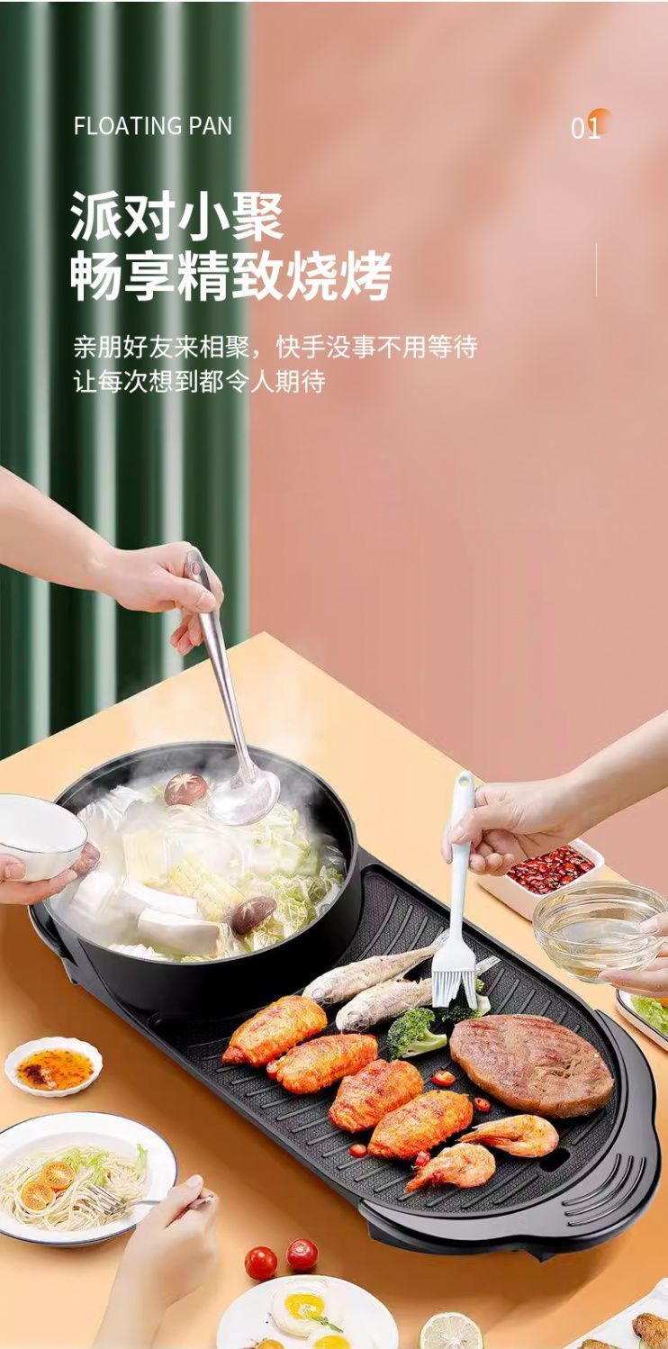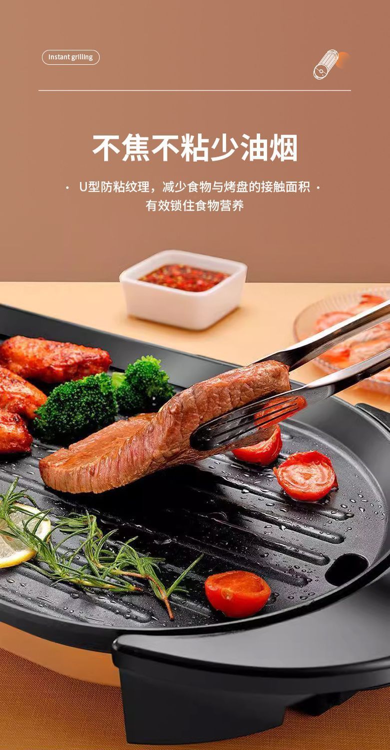 电热火锅家用无烟烤肉多功能料理锅室内鸳鸯火锅一体锅烤鱼烤肉机