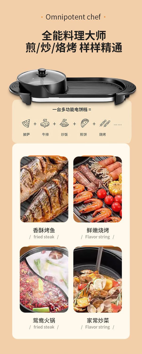 | luxury model [large double control + washing and baking] send five-piece gift bag(豪华款【大号双控+涮烤一体】送五件套礼包) | USD $43.18 | 999999 piece available |