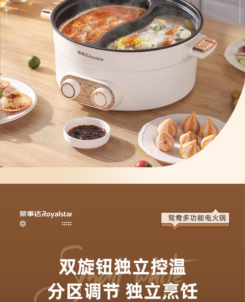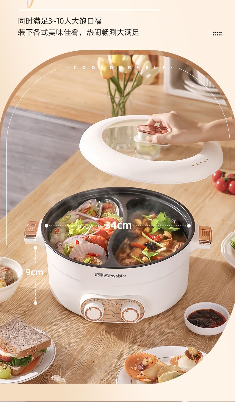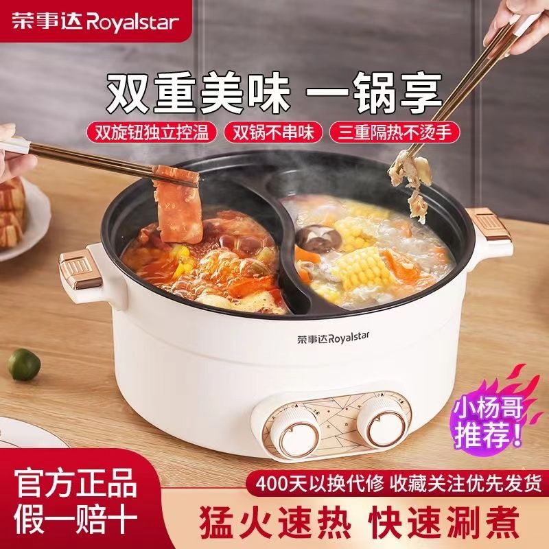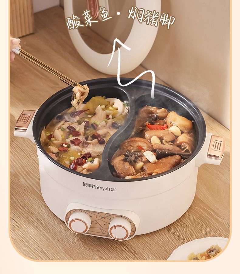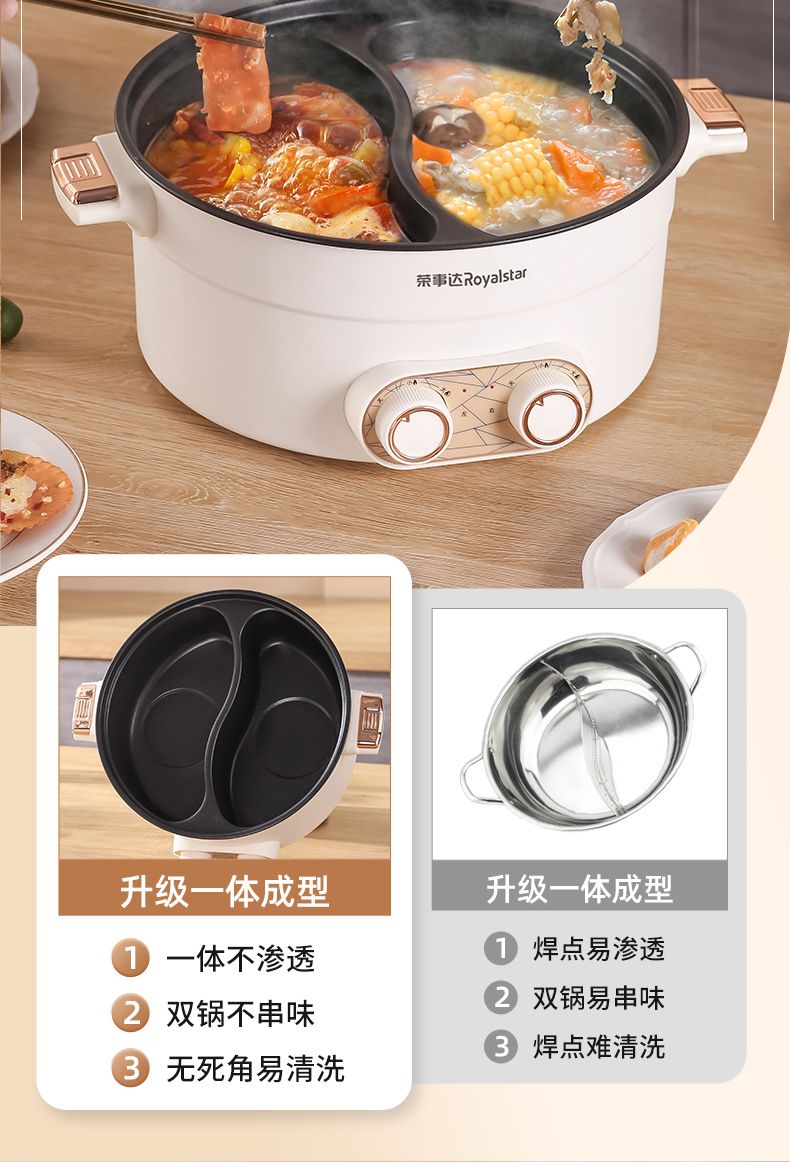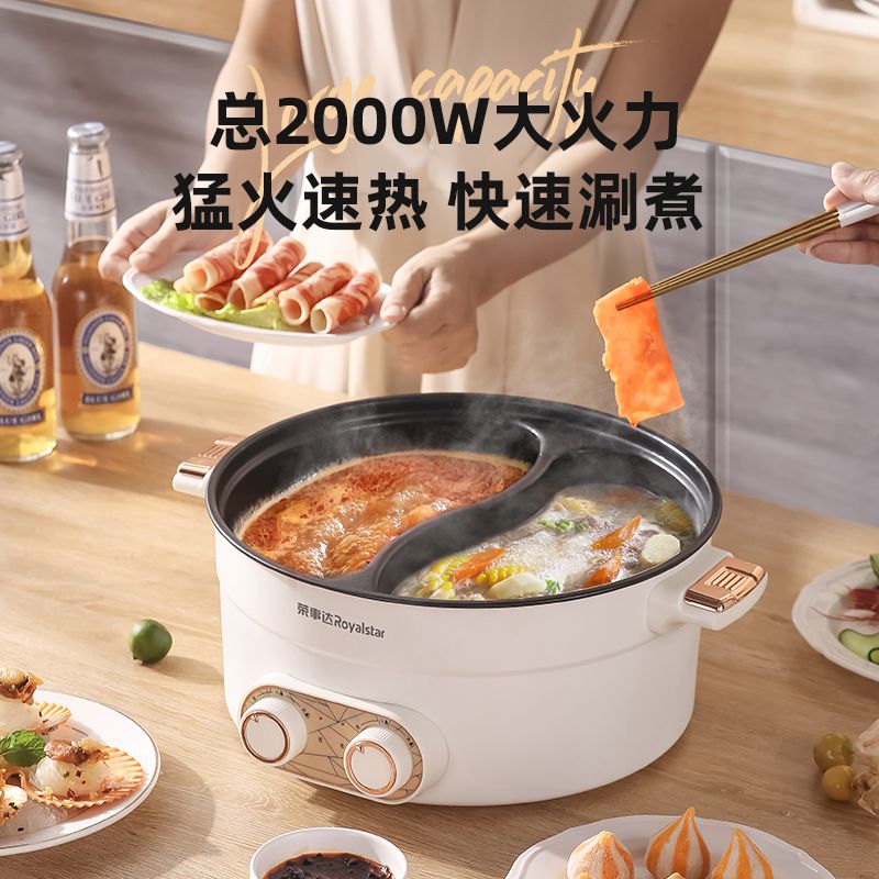 荣事达鸳鸯锅大容量电火锅多功能电煮锅家用电煮锅宿舍专用锅火锅