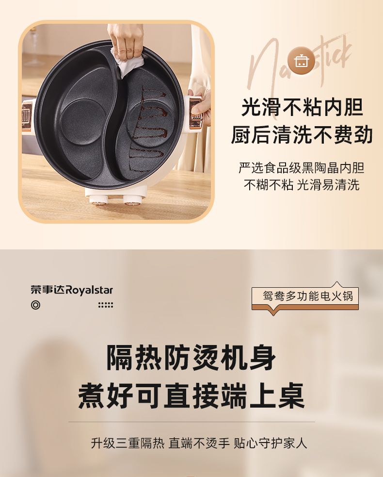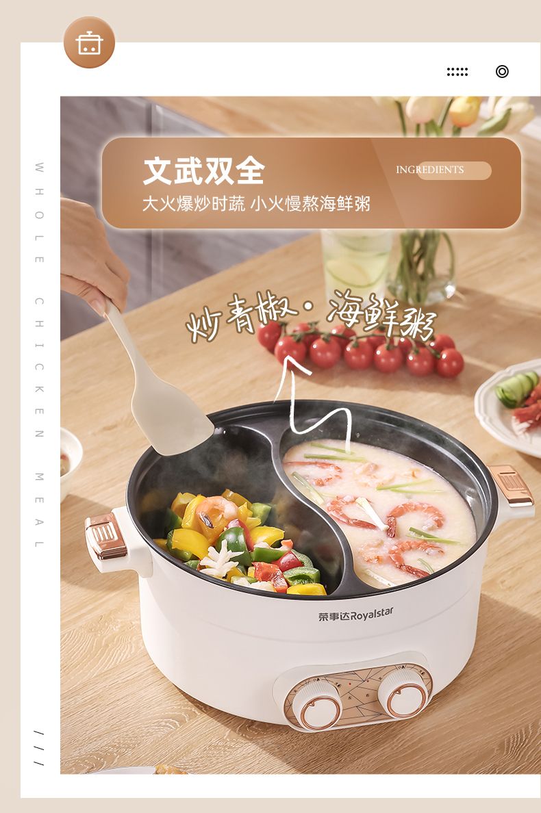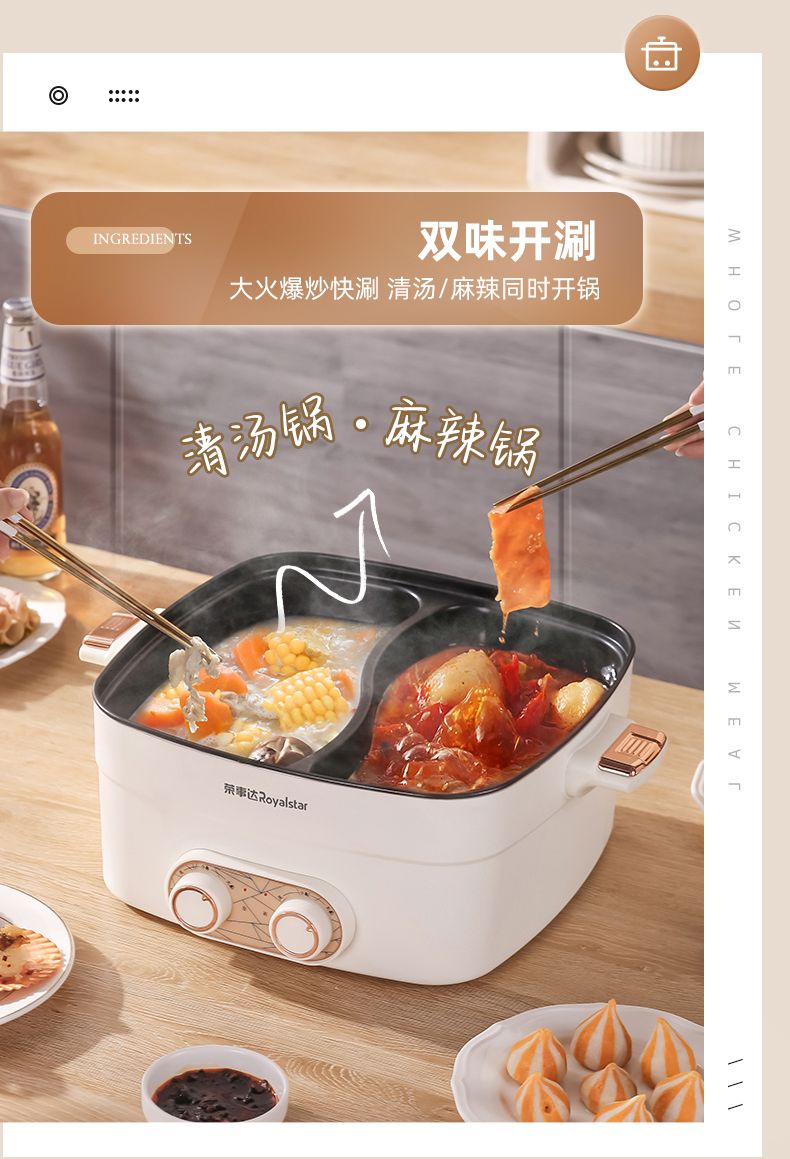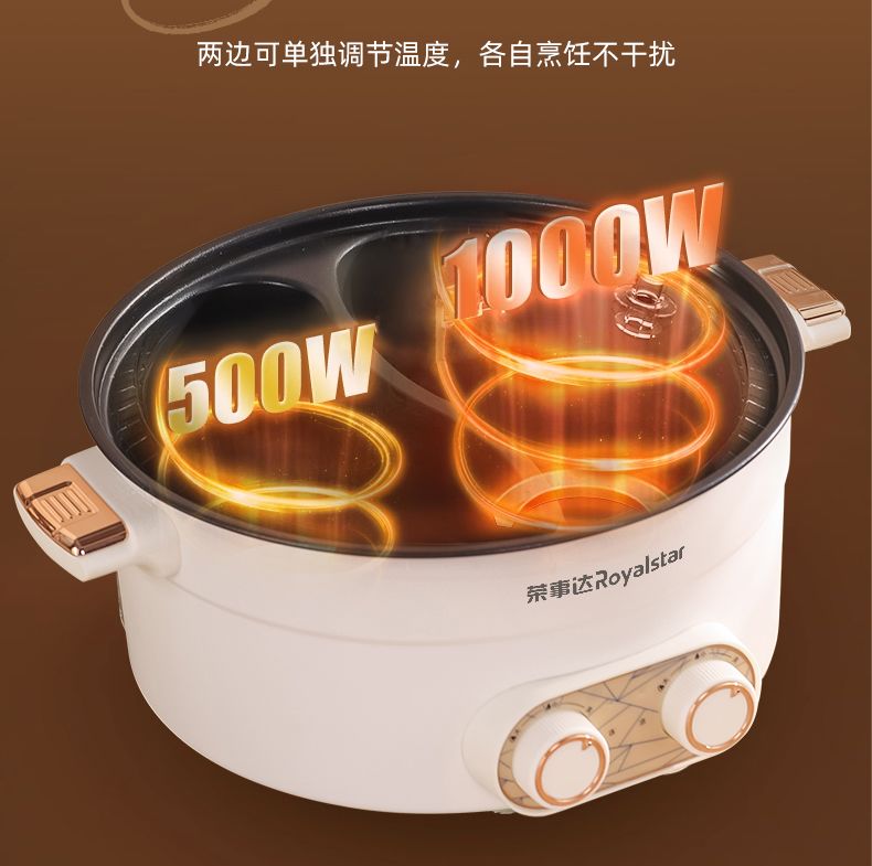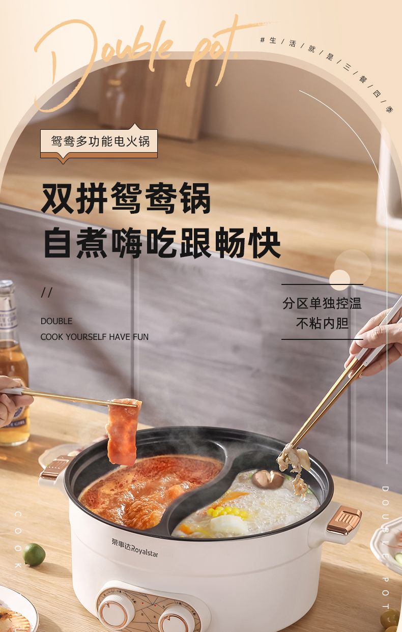 荣事达鸳鸯锅大容量电火锅多功能电煮锅家用电煮锅宿舍专用锅火锅