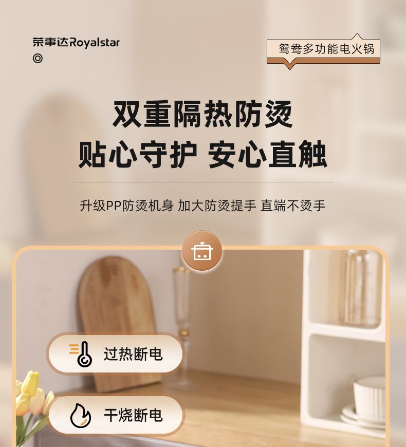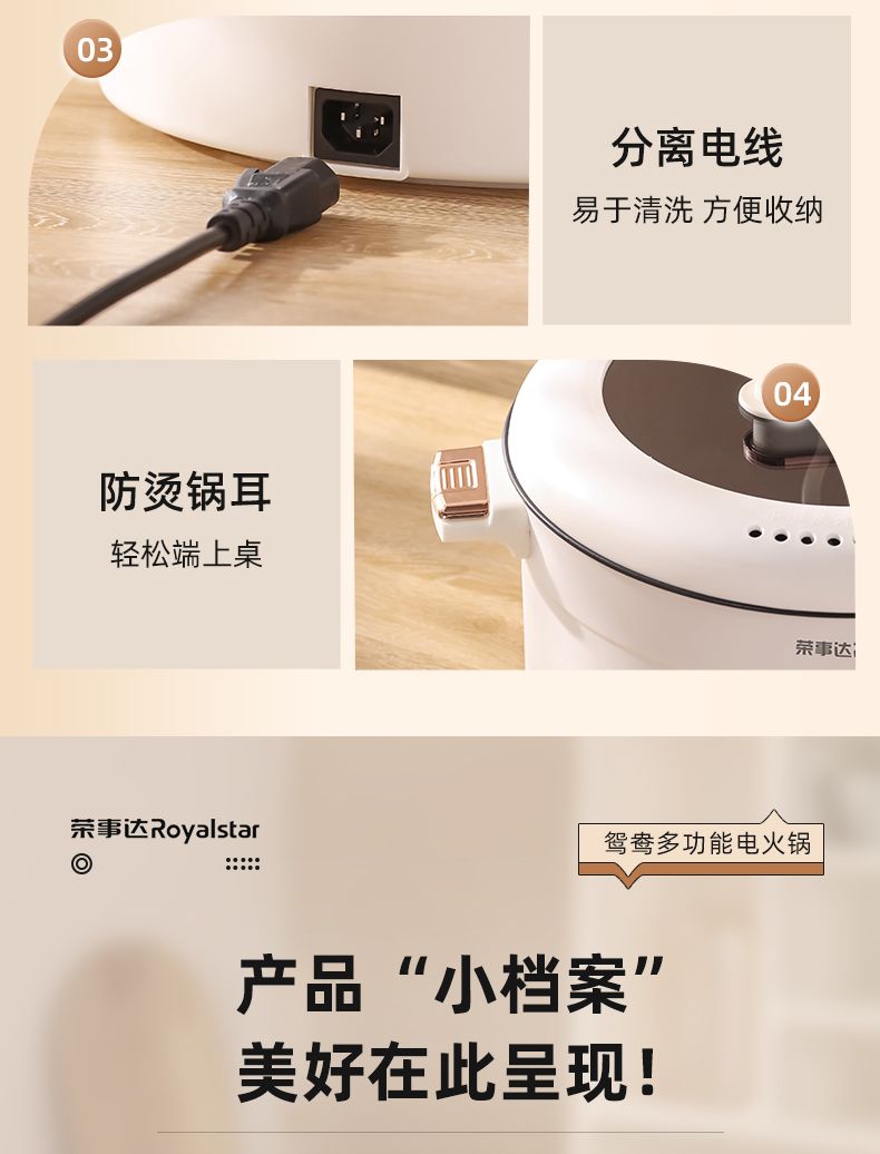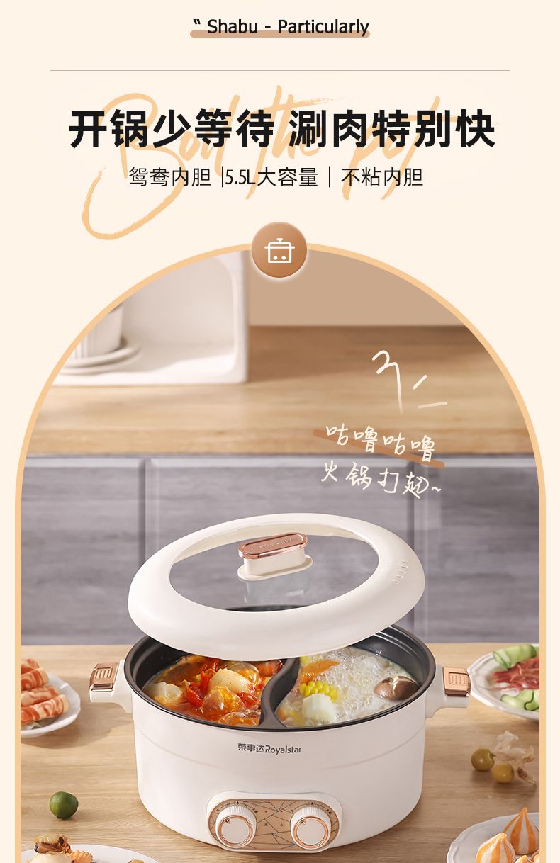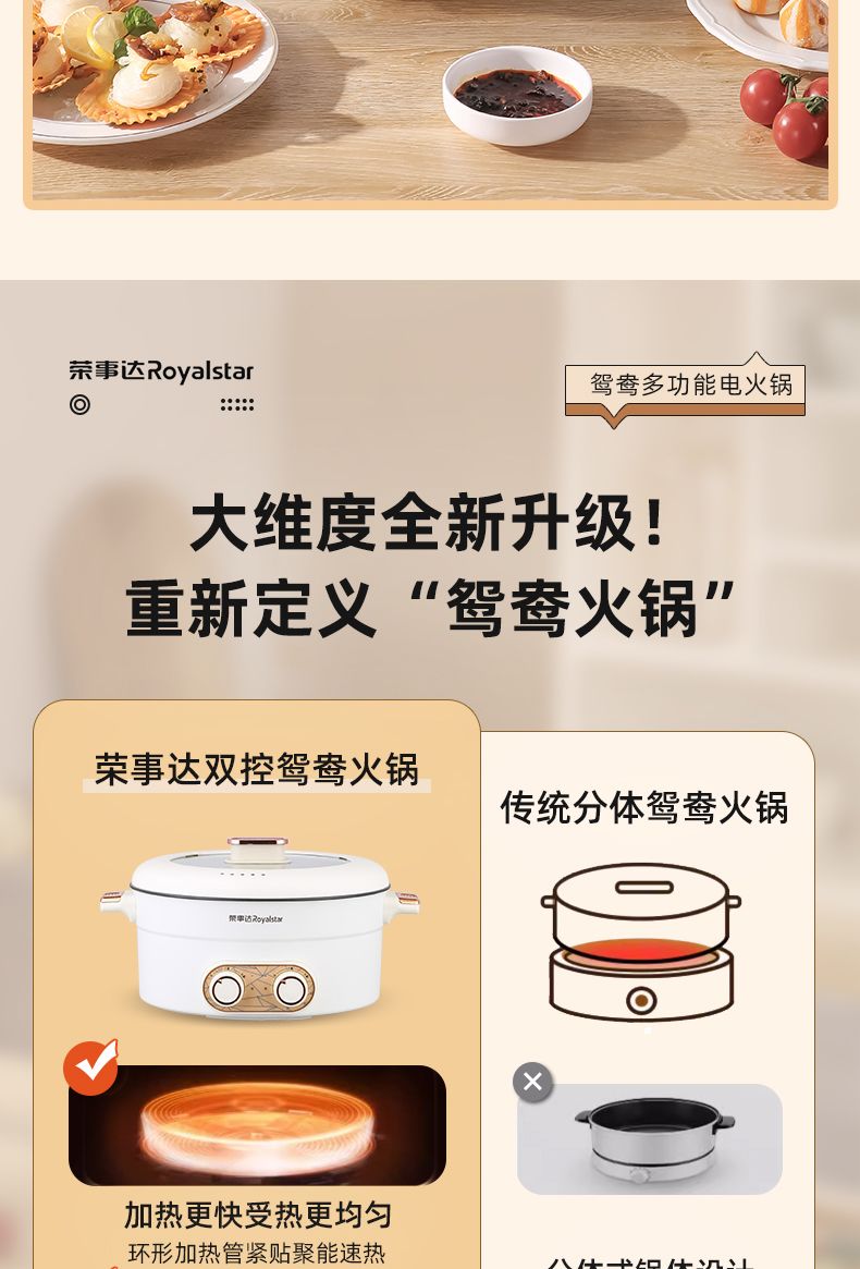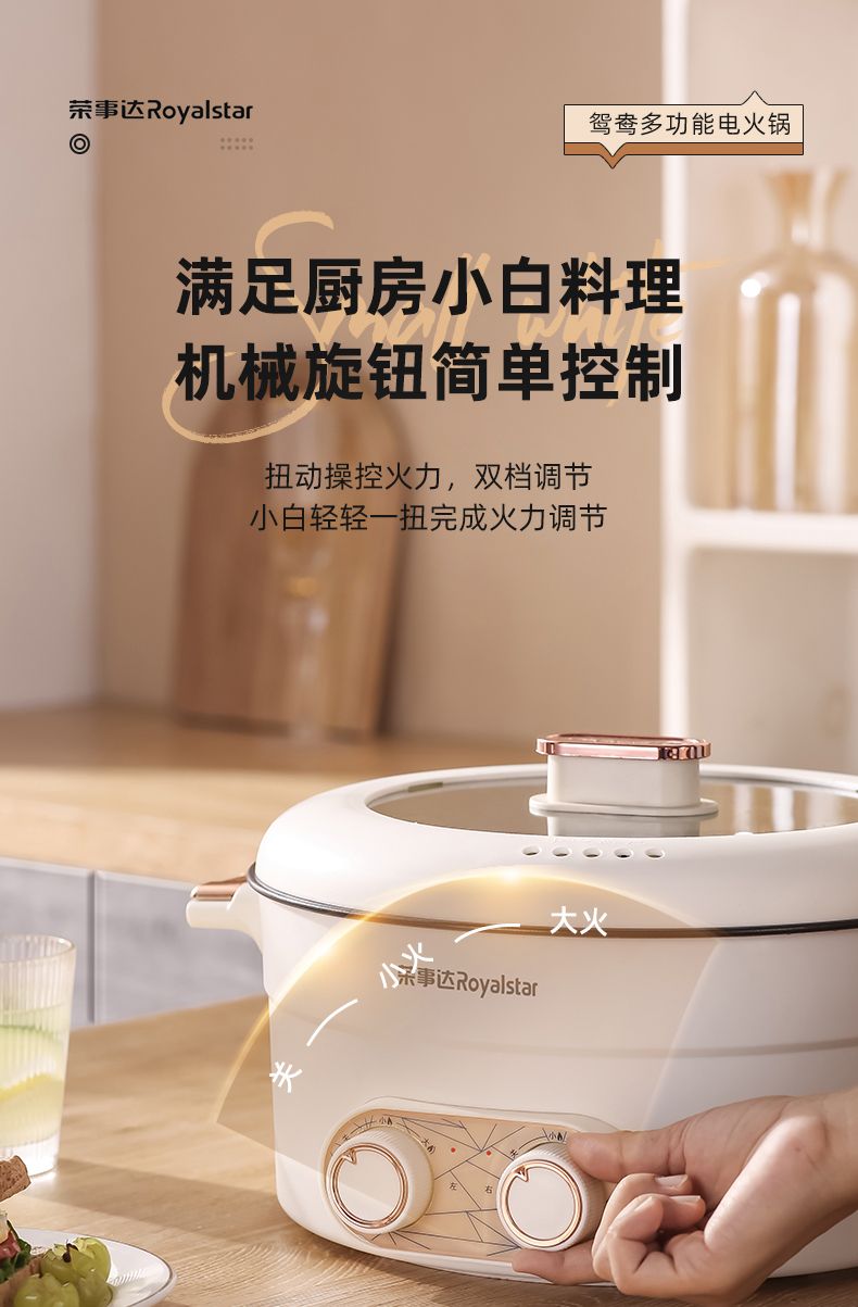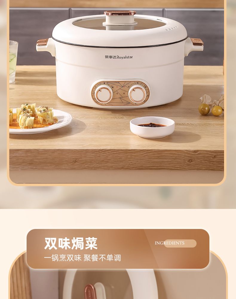 荣事达鸳鸯锅大容量电火锅多功能电煮锅家用电煮锅宿舍专用锅火锅