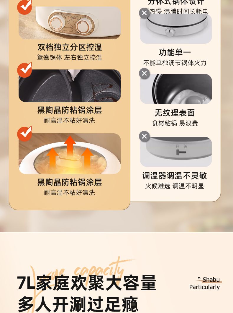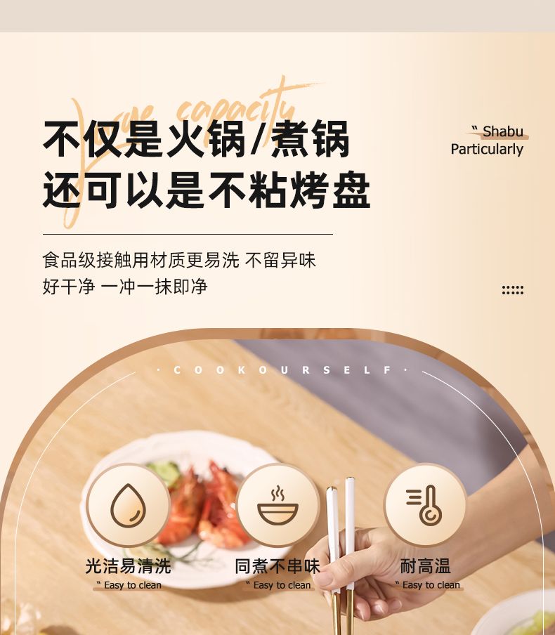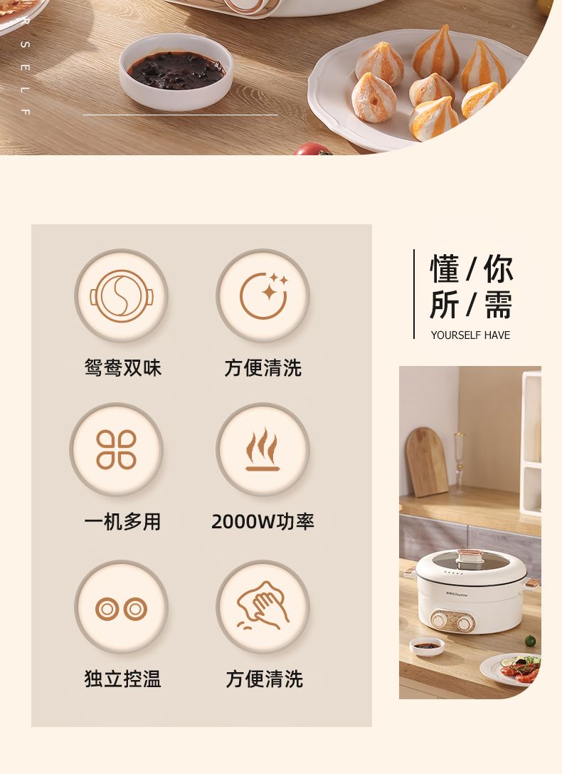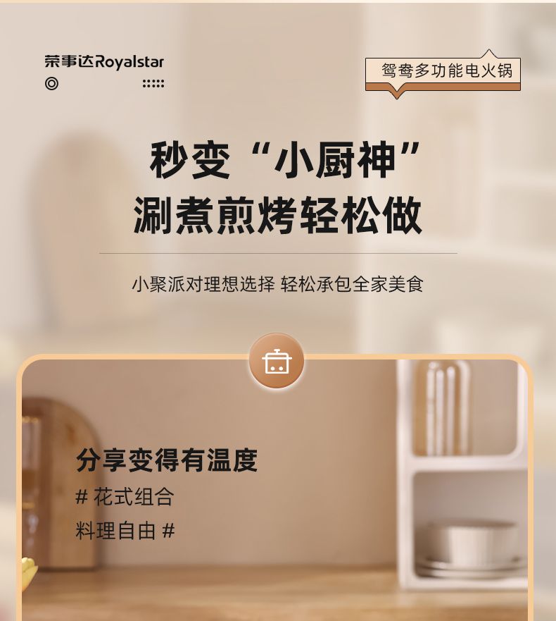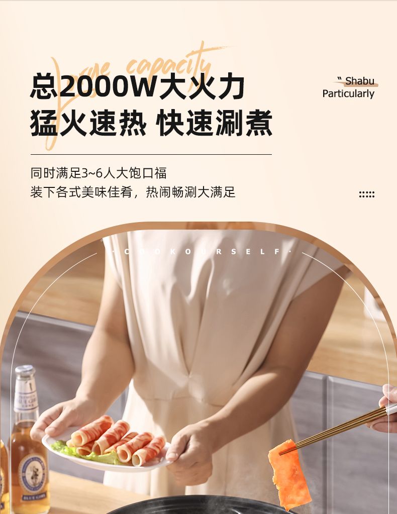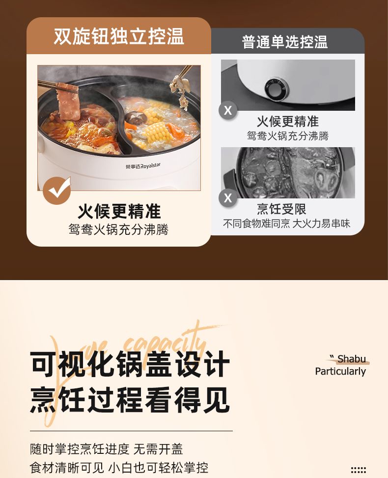 荣事达鸳鸯锅大容量电火锅多功能电煮锅家用电煮锅宿舍专用锅火锅