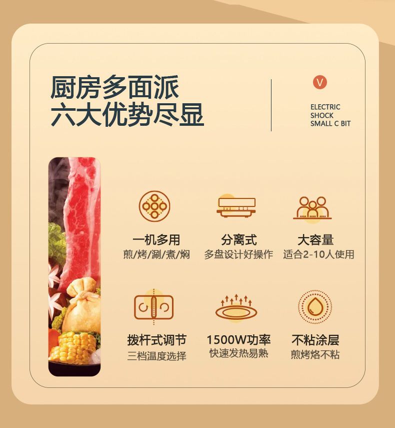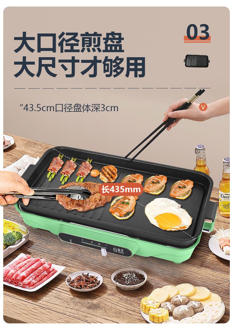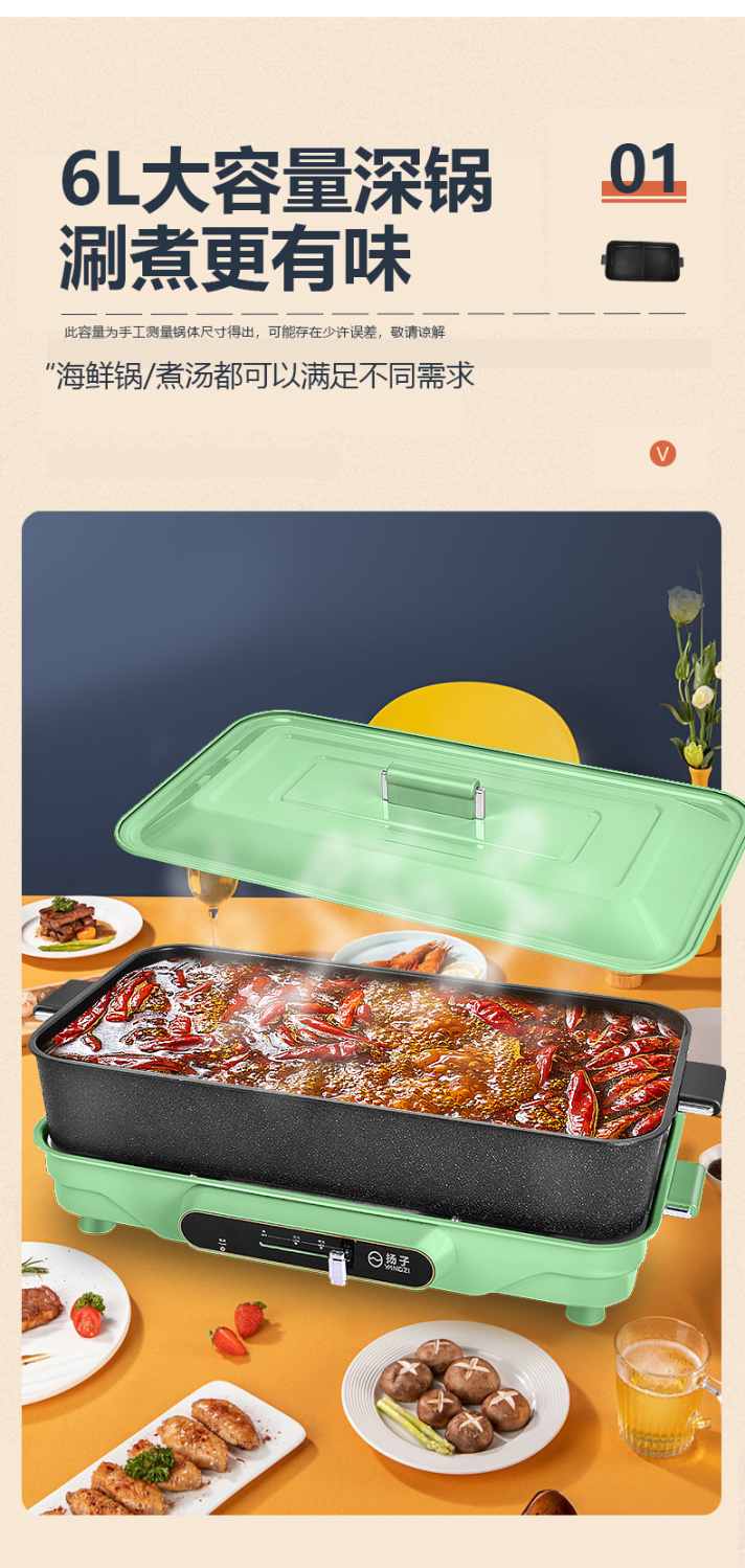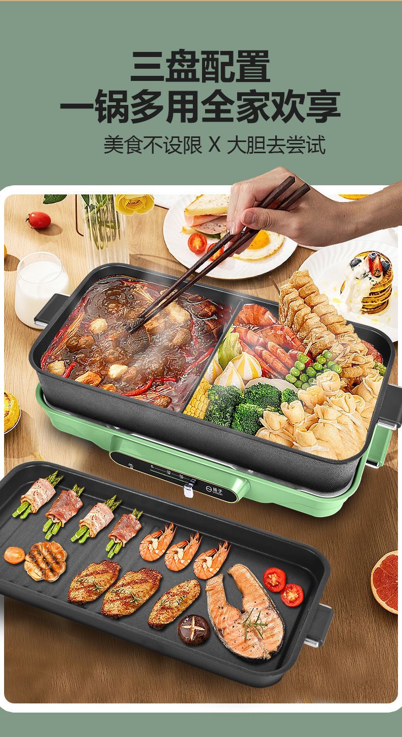 扬子电烤盘烤肉锅家用多功能电火锅烤涮一体锅不沾电烧烤炉烧烤盘