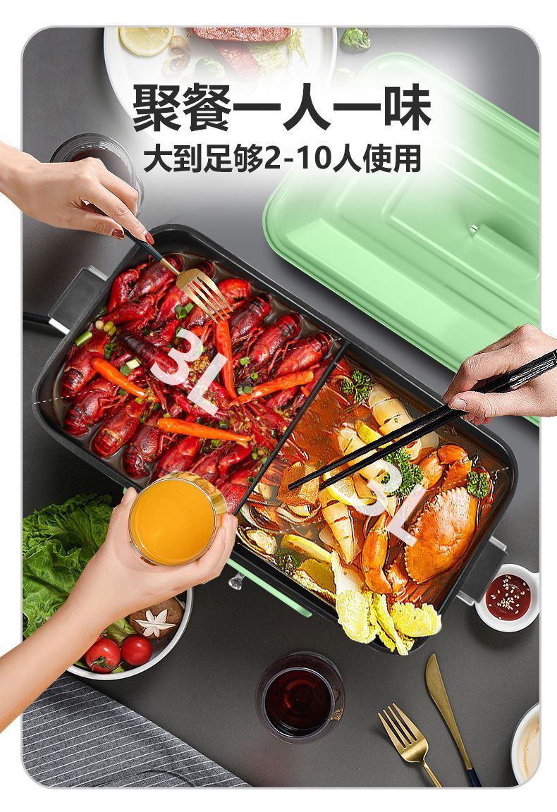 | base + fry pan + two-flavor hot pot(底座+煎盘+鸳鸯锅) | USD $37.18 | 999999 piece available |