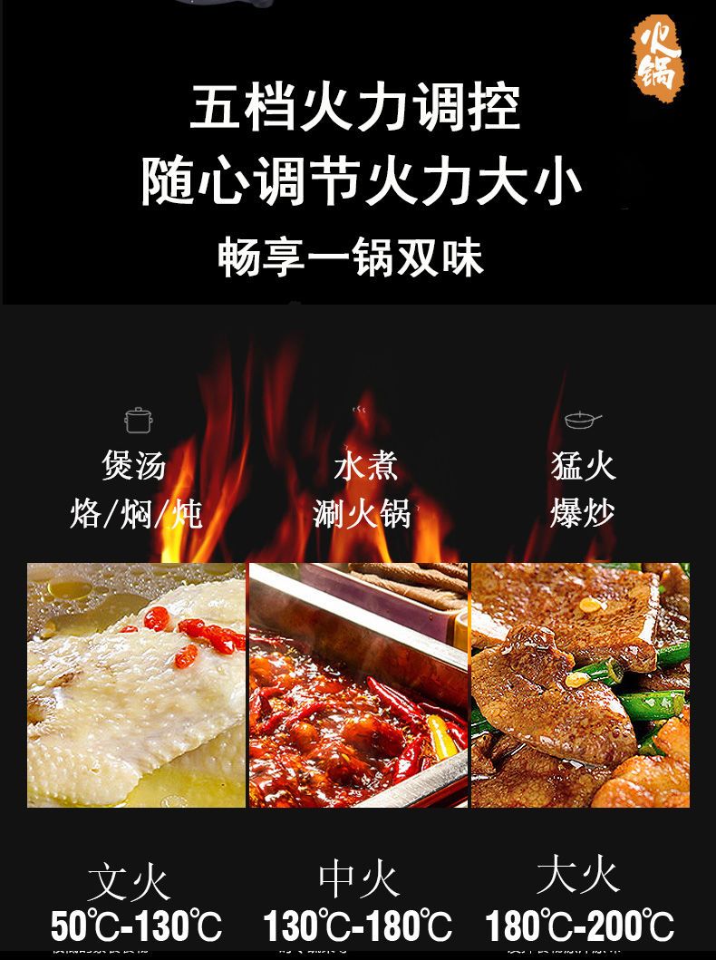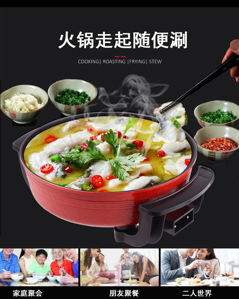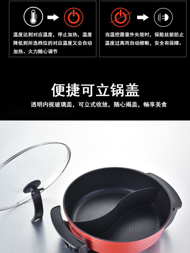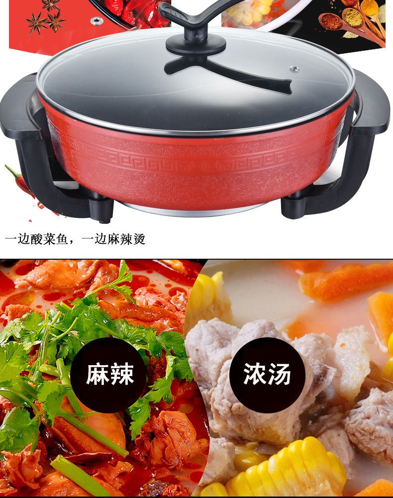 家庭蒸煮鸳鸯电火锅宿舍多功能电热锅家用不沾一体锅炒菜锅电锅