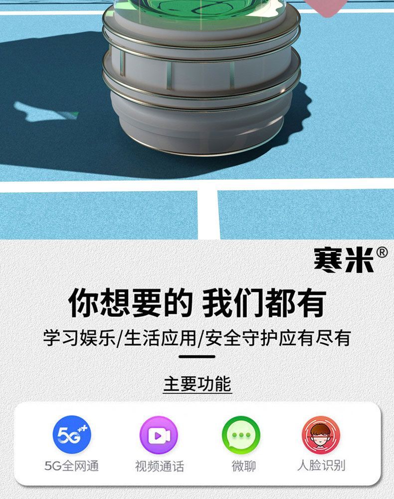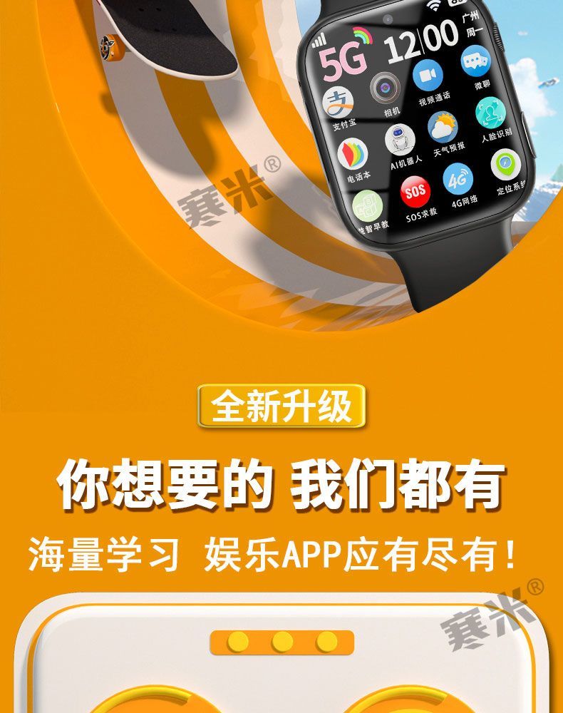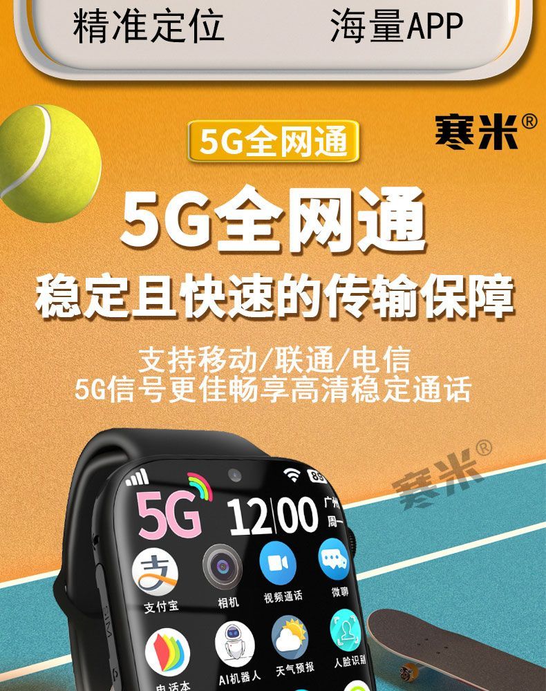 寒米5G全网通智能儿童电话手表男女可插卡学习多功能电话手表