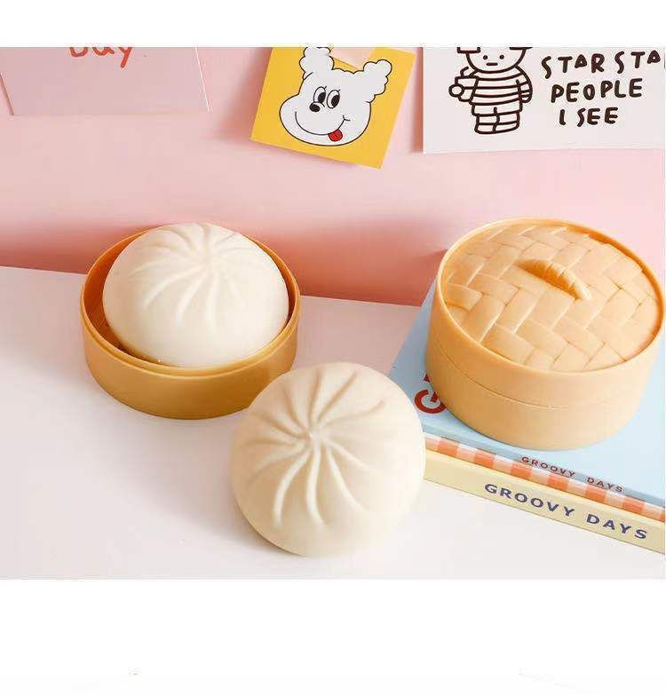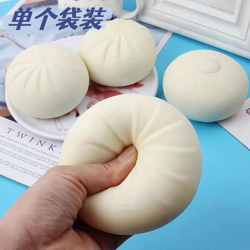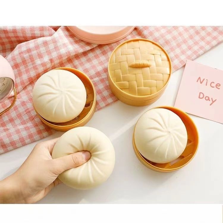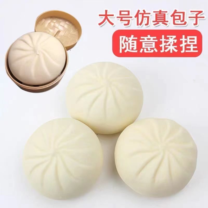 抖音仿真大包子儿童玩具解压发泄整蛊大号肉包捏捏带蒸笼地摊批发
