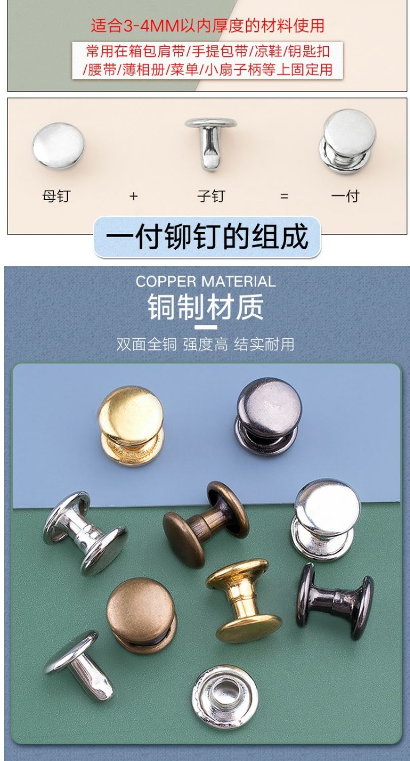 DIY金属铜双面铆钉子母钉冒钉撞钉柳丁装饰皮革箱包鞋帽配件纽扣
