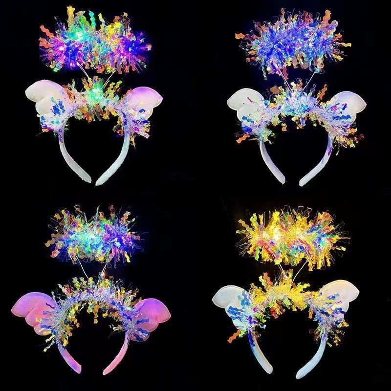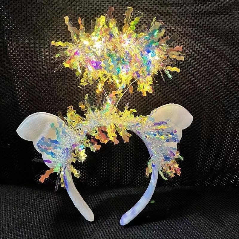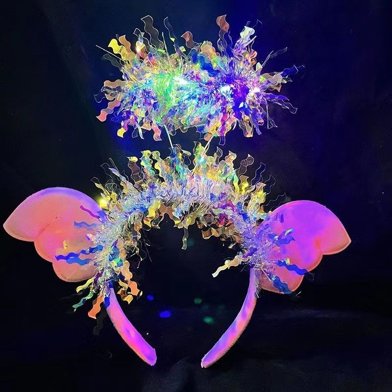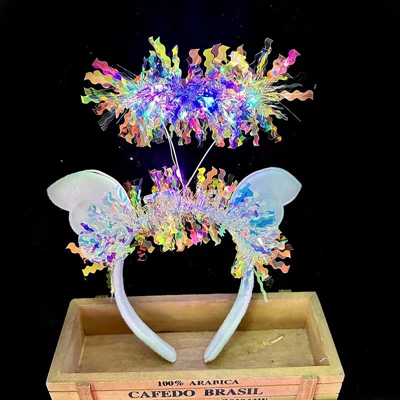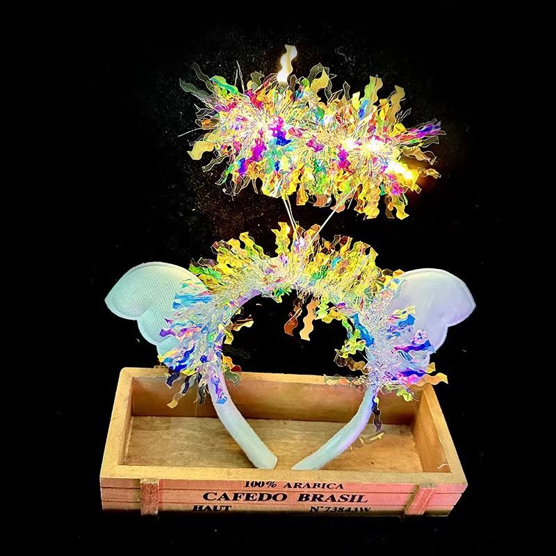 新款发箍羽毛天使头箍金丝头饰拍照发光翅膀儿童玩具夜市仙女摆摊