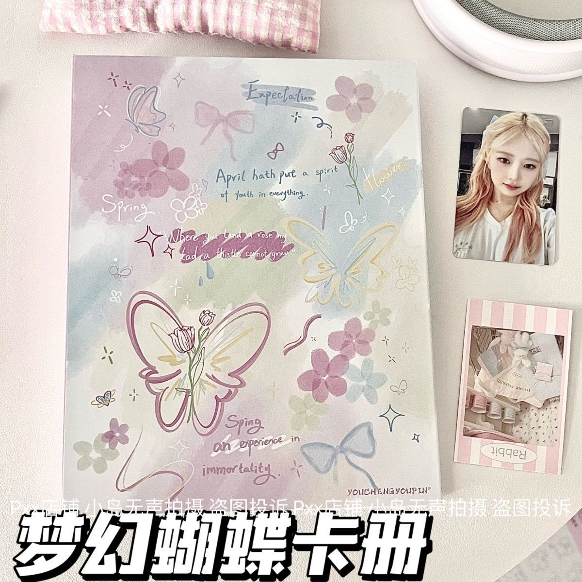 原创梦幻蝴蝶a5追星四宫格硬壳收纳正版卡册高级ins风可爱手绘简