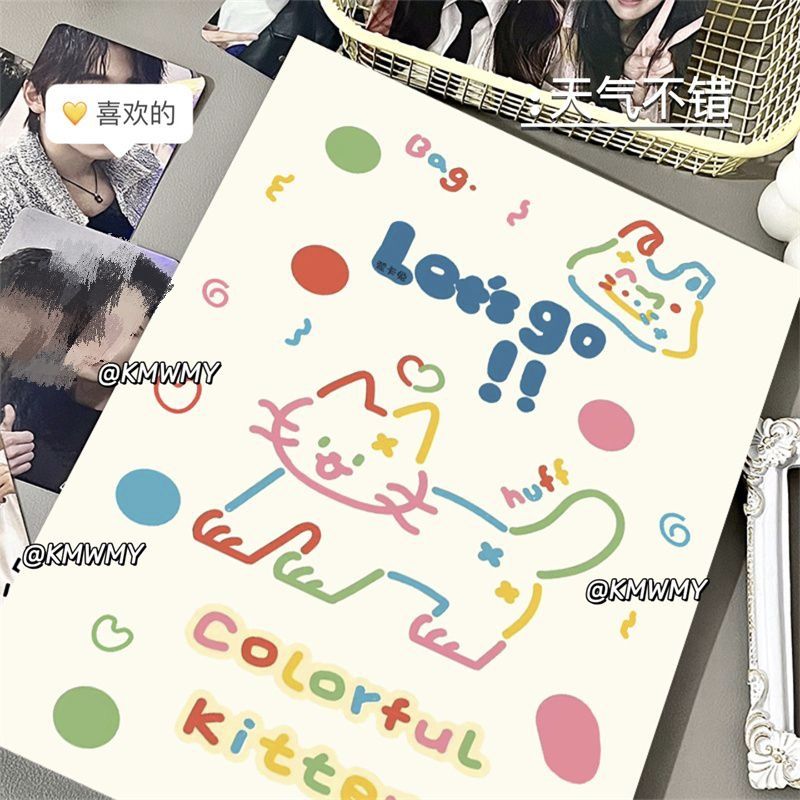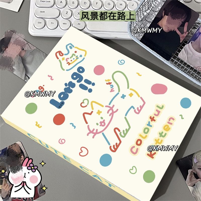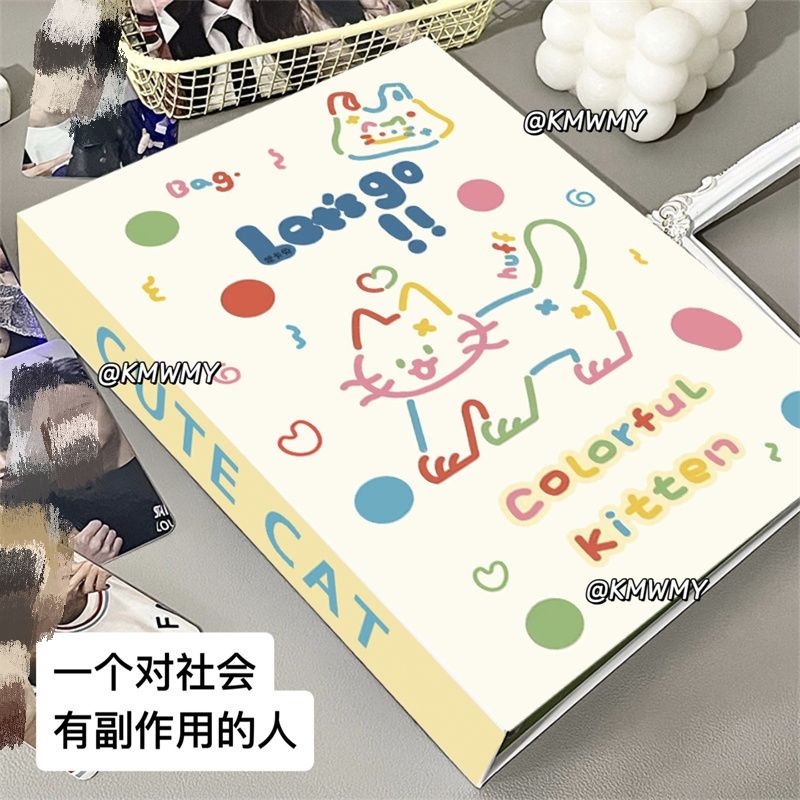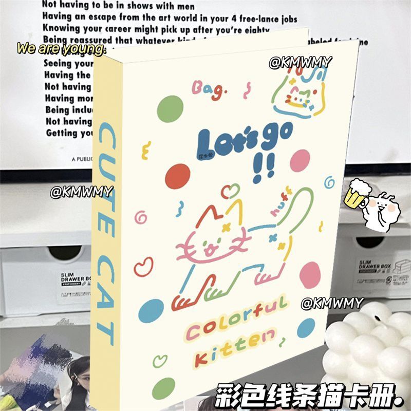 新款彩色线条猫卡册ins拍立得小卡收纳相册A5硬壳四宫格追星送礼