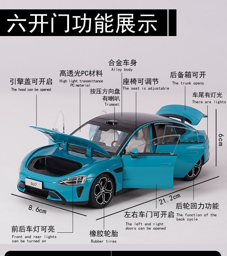su7合金车模1:24优质版海湾蓝霞光紫仿真汽车模型礼物收藏摆件