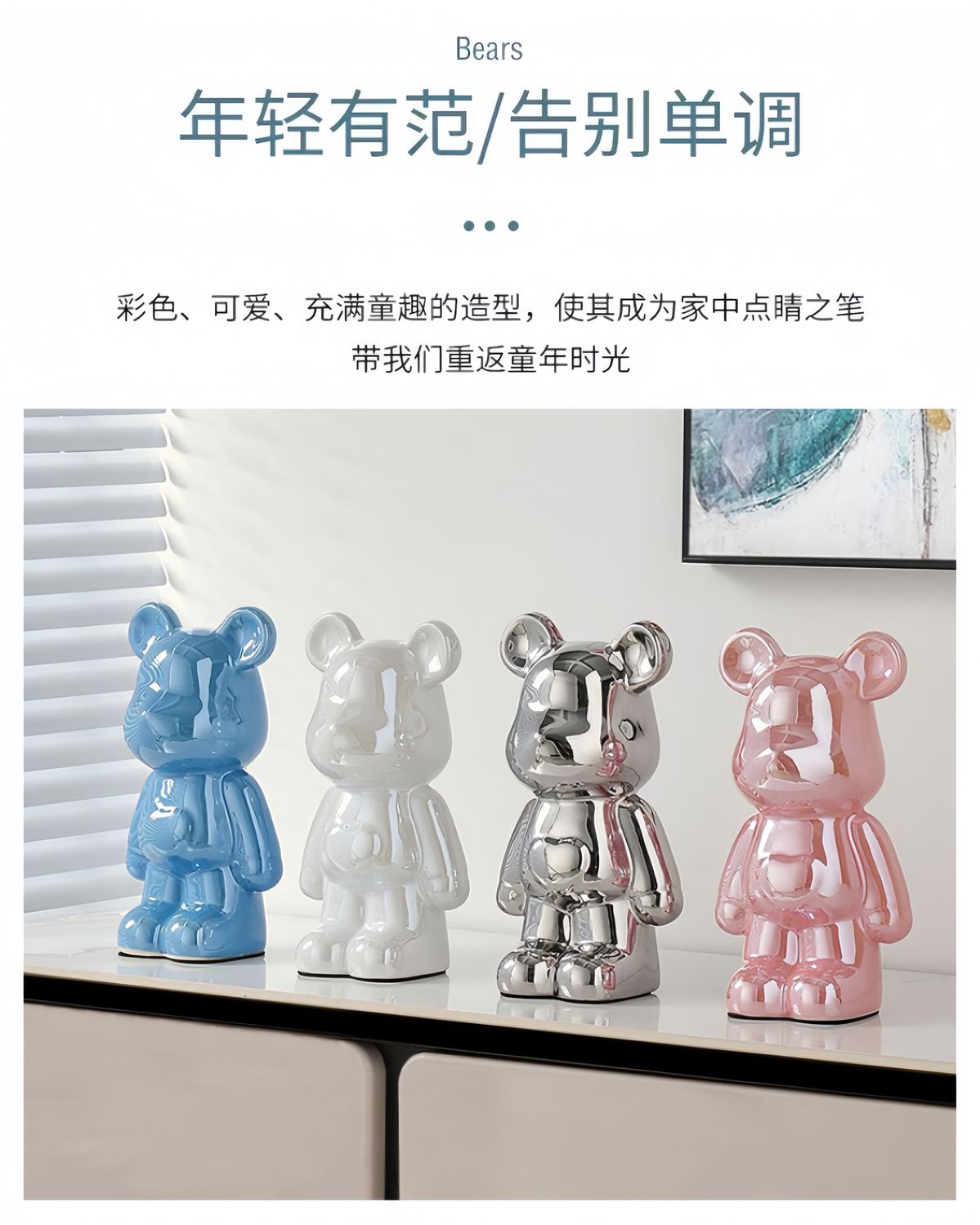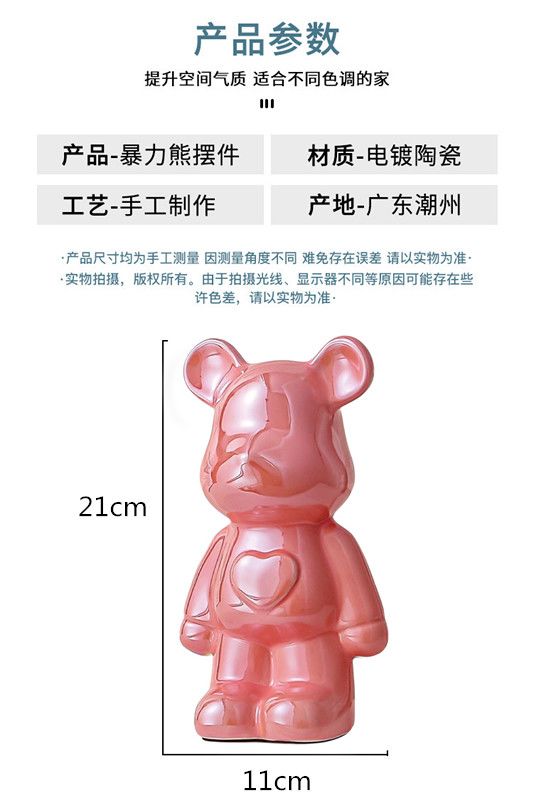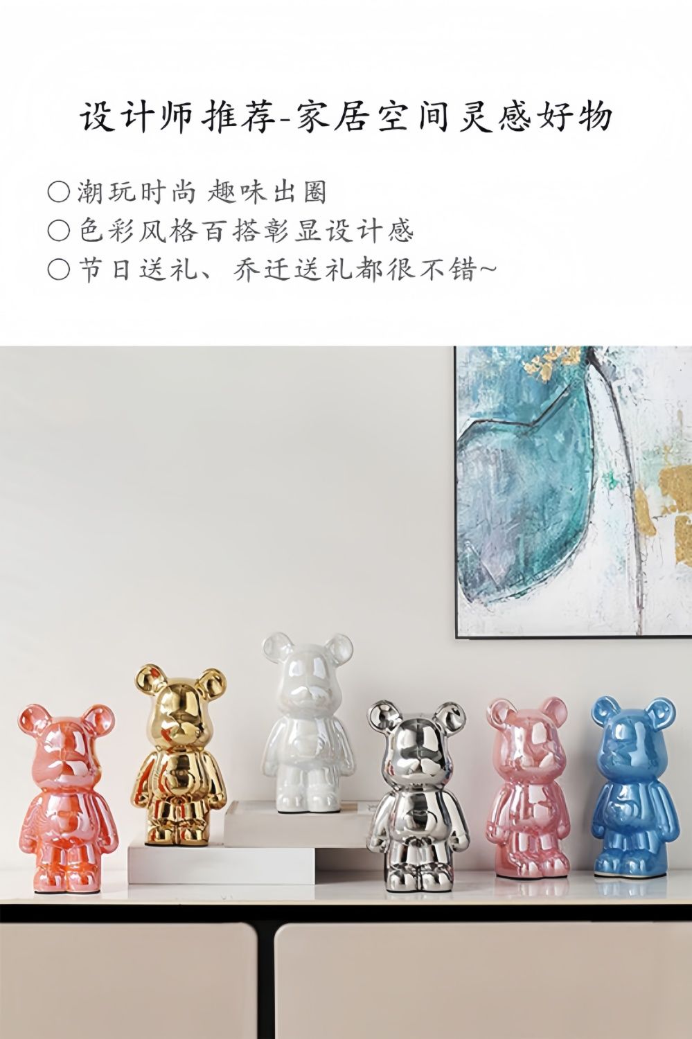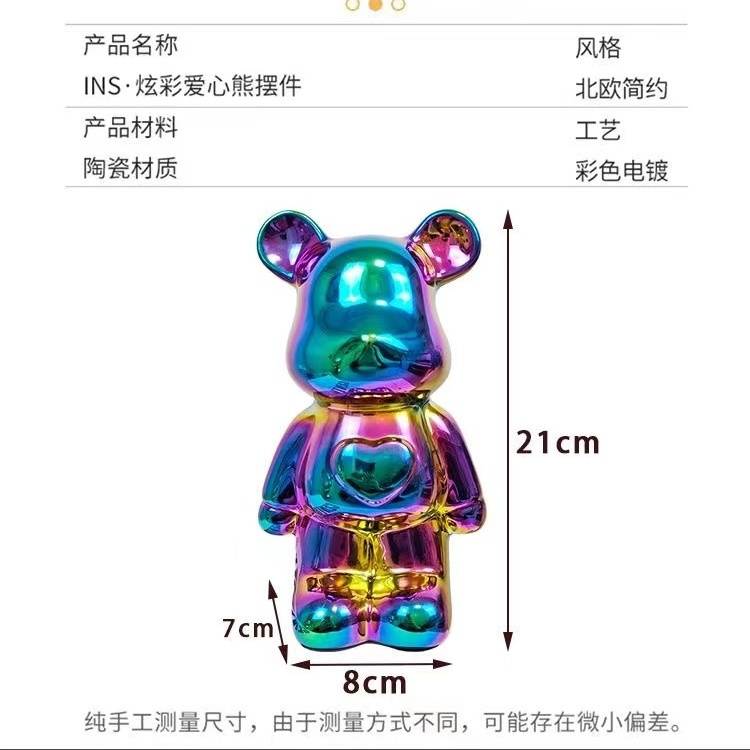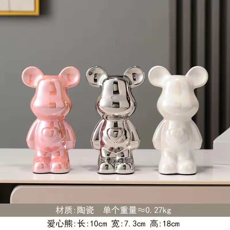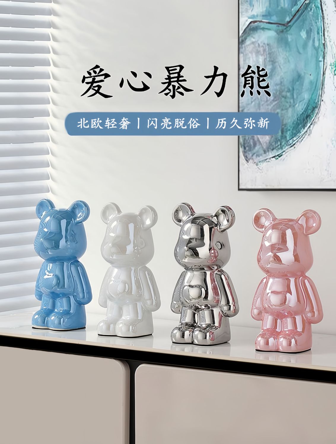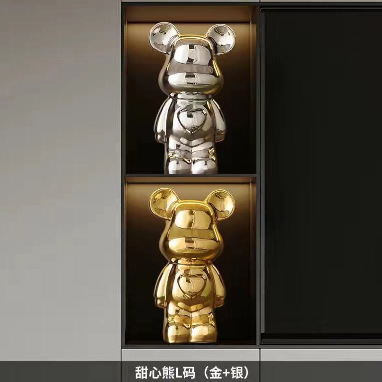 网红电镀爱心暴力熊客厅摆件北欧高档潮玩电视柜酒柜一整套装饰物