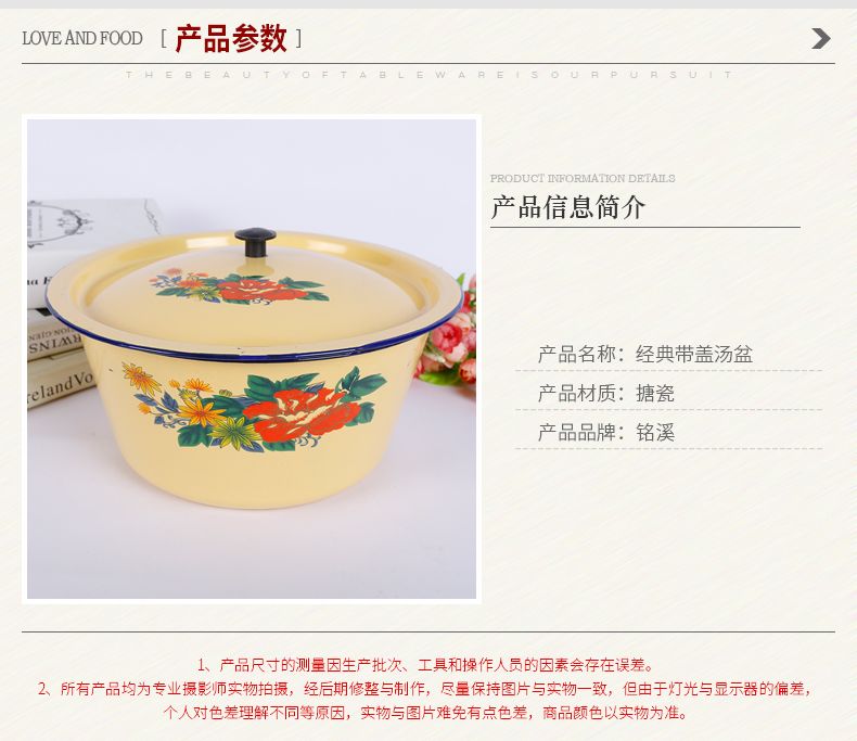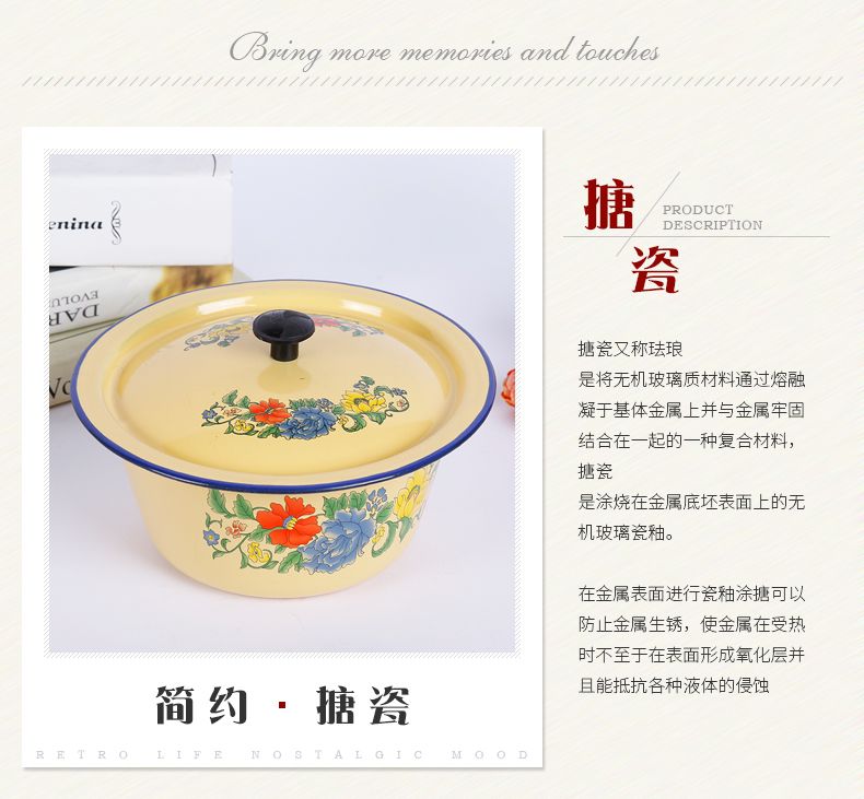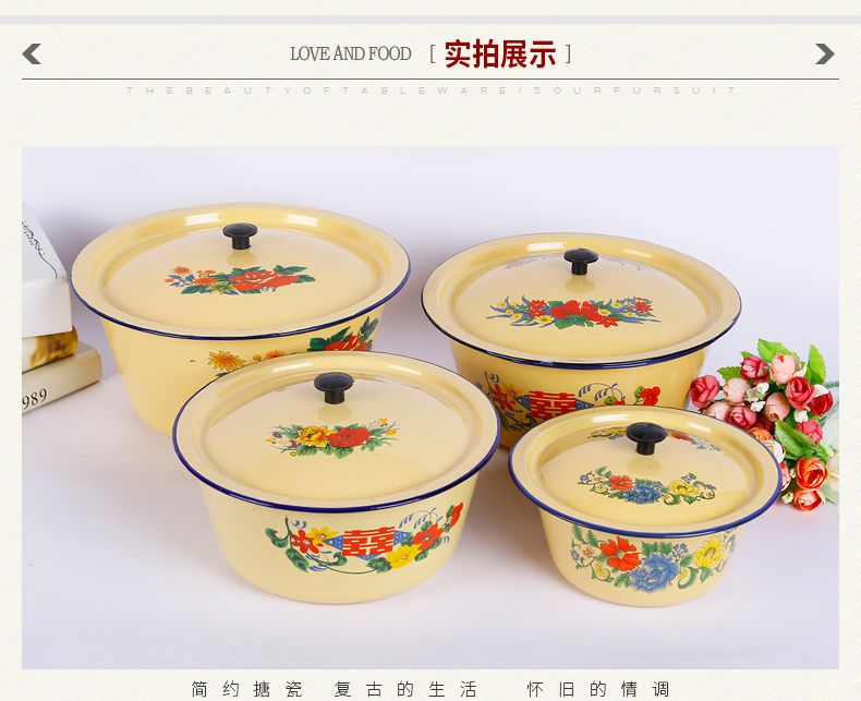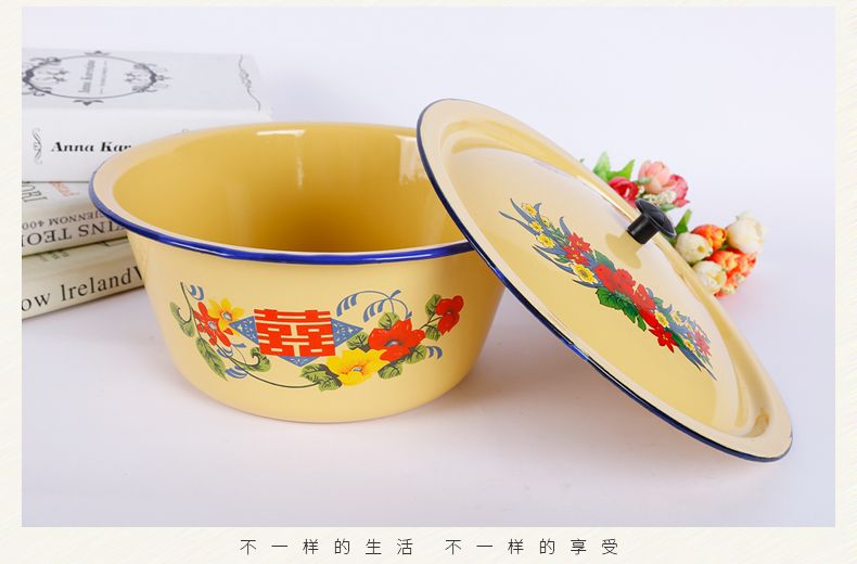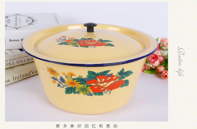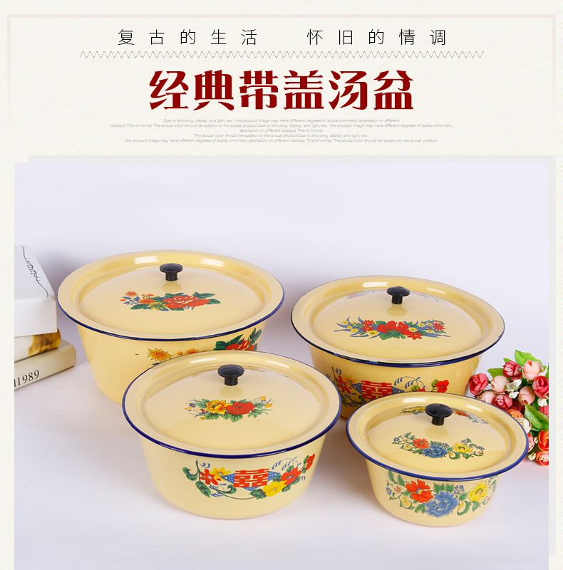 老式搪瓷盆带盖汤锅搪瓷饺子馅料盆调料碗熬药猪油罐带盖厨房