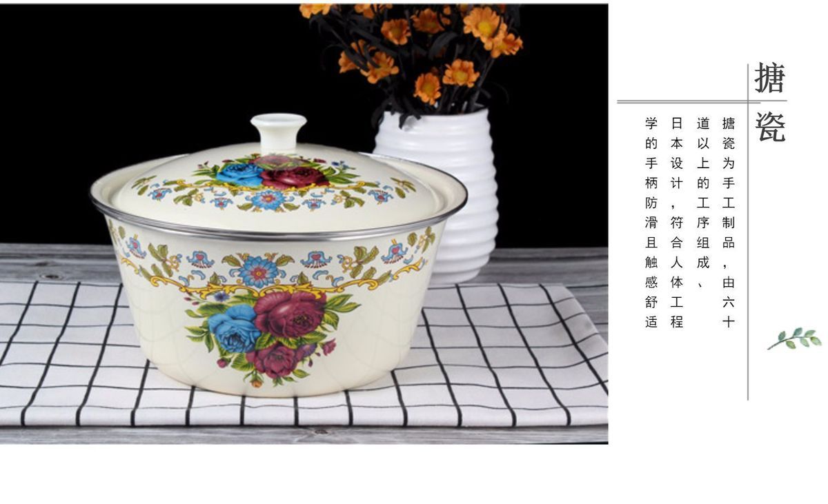 | enamel basin [rose about] + enamel cover(搪瓷盆【玫瑰之约】+搪瓷盖) | USD $5.27 | 999999 piece available |