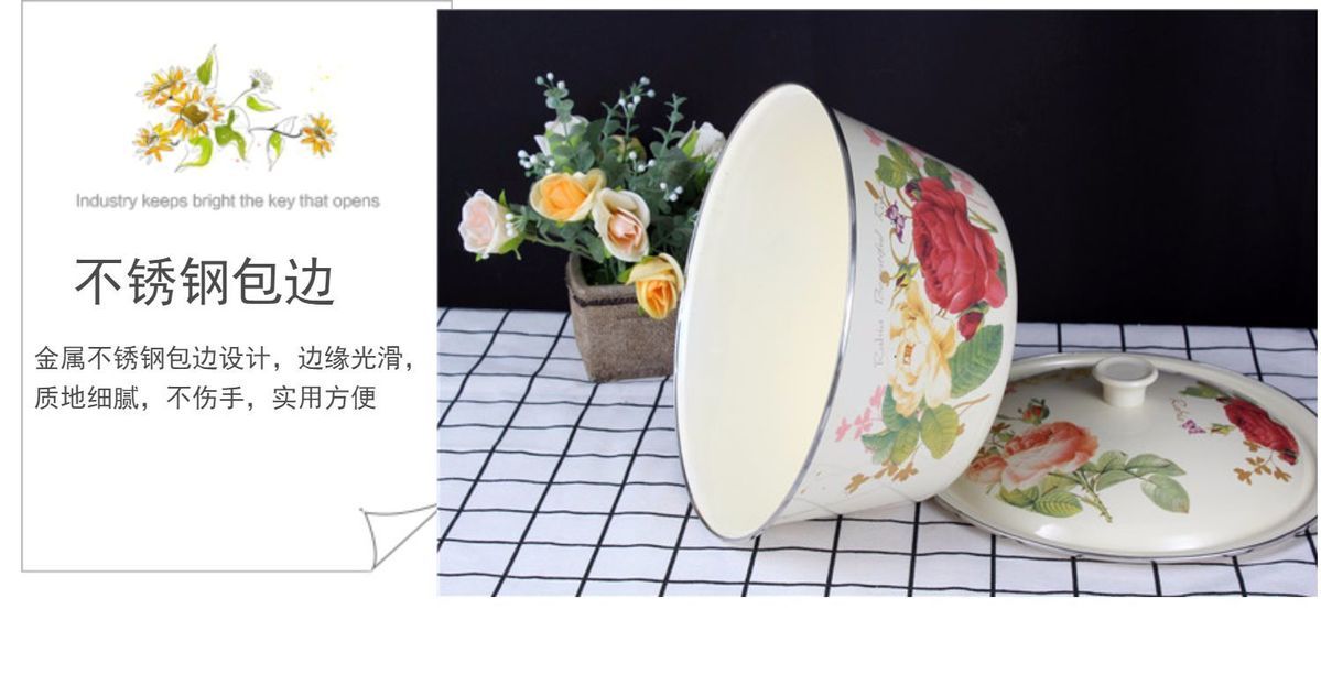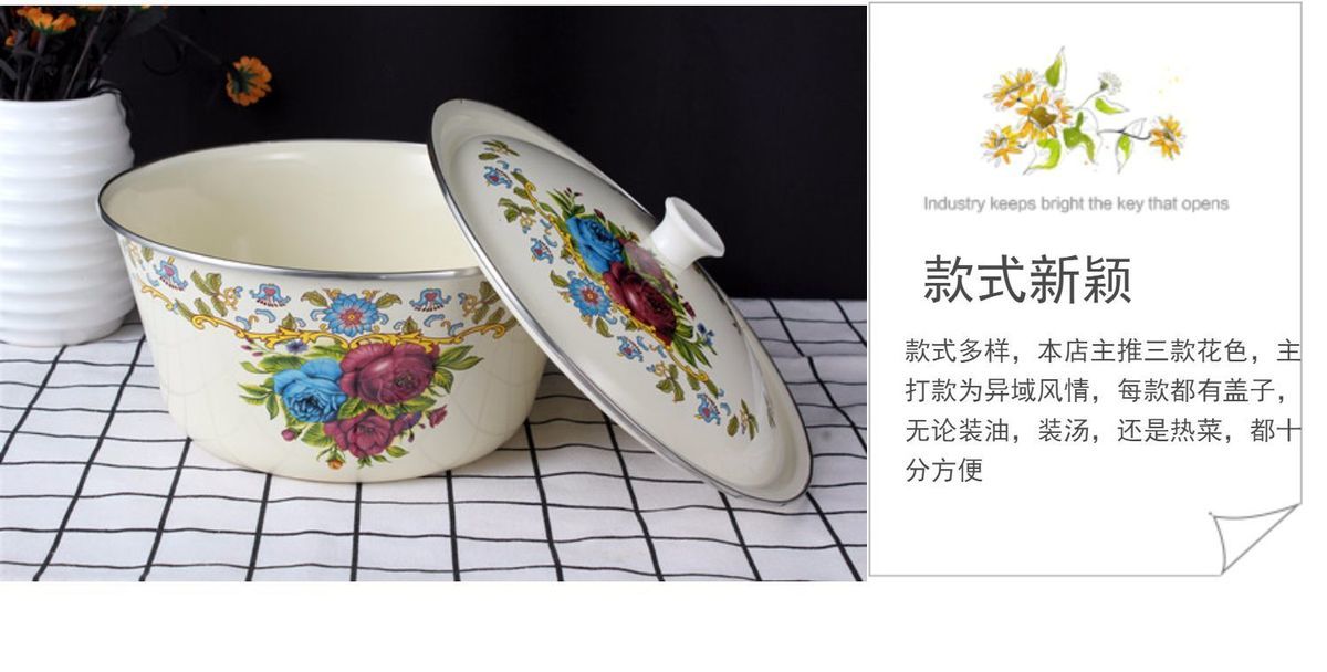 | enamel basin [rose about] + enamel cover(搪瓷盆【玫瑰之约】+搪瓷盖) | USD $5.77 | 999999 piece available |