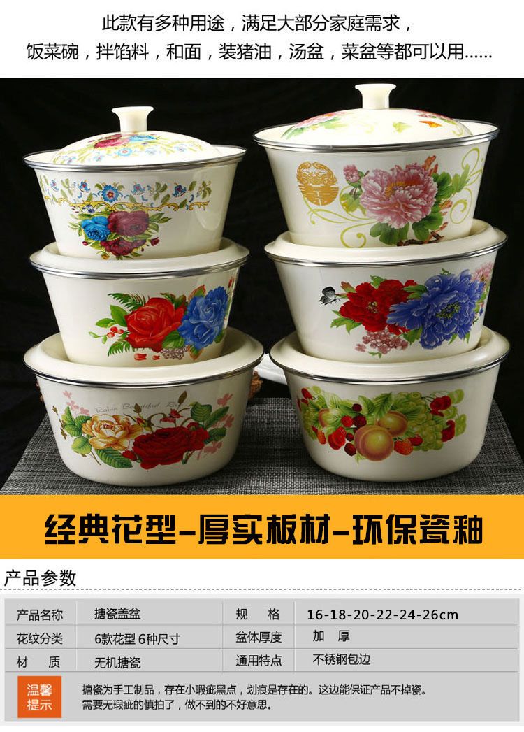 | enamel basin [rose about] + enamel cover(搪瓷盆【玫瑰之约】+搪瓷盖) | USD $6.39 | 999999 piece available |