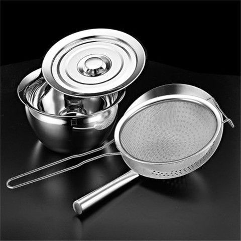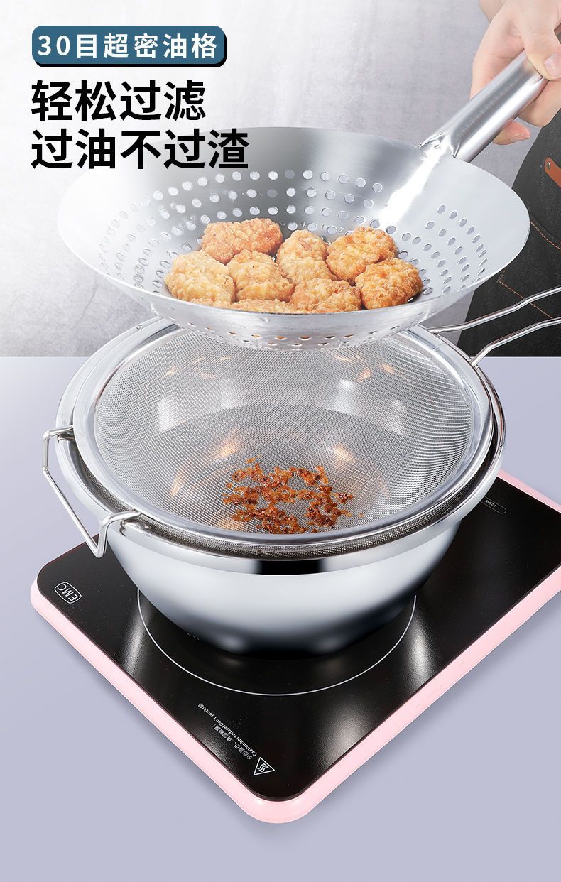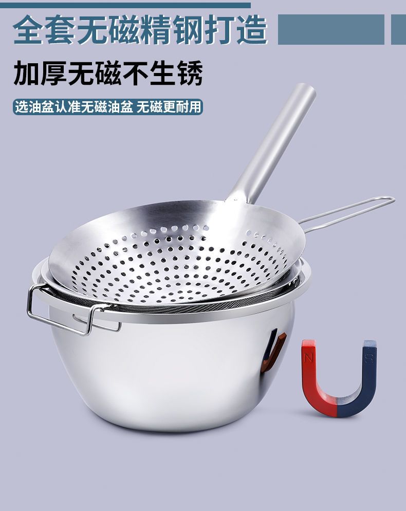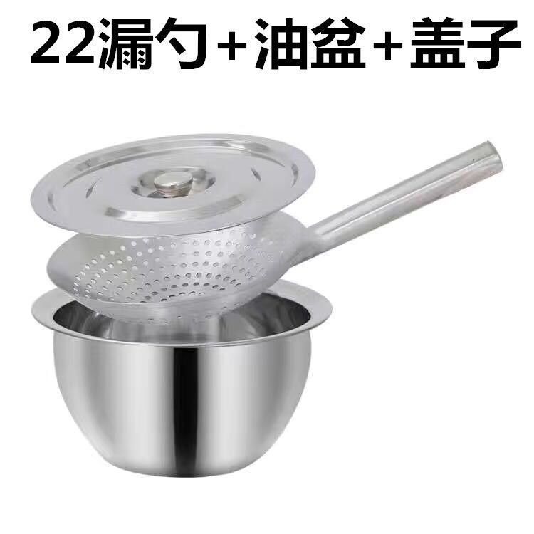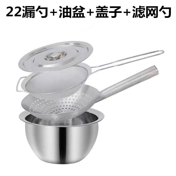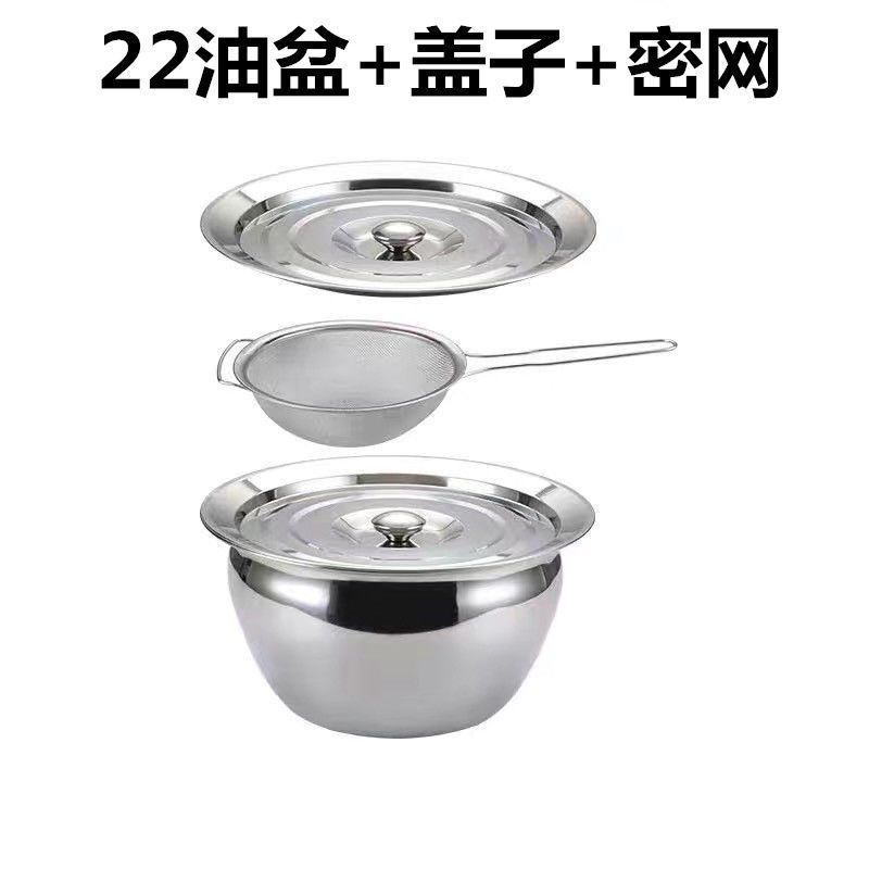 不锈钢装油盆带盖家用盆子厨房调料缸猪油罐油鼓漏勺套装大号商用