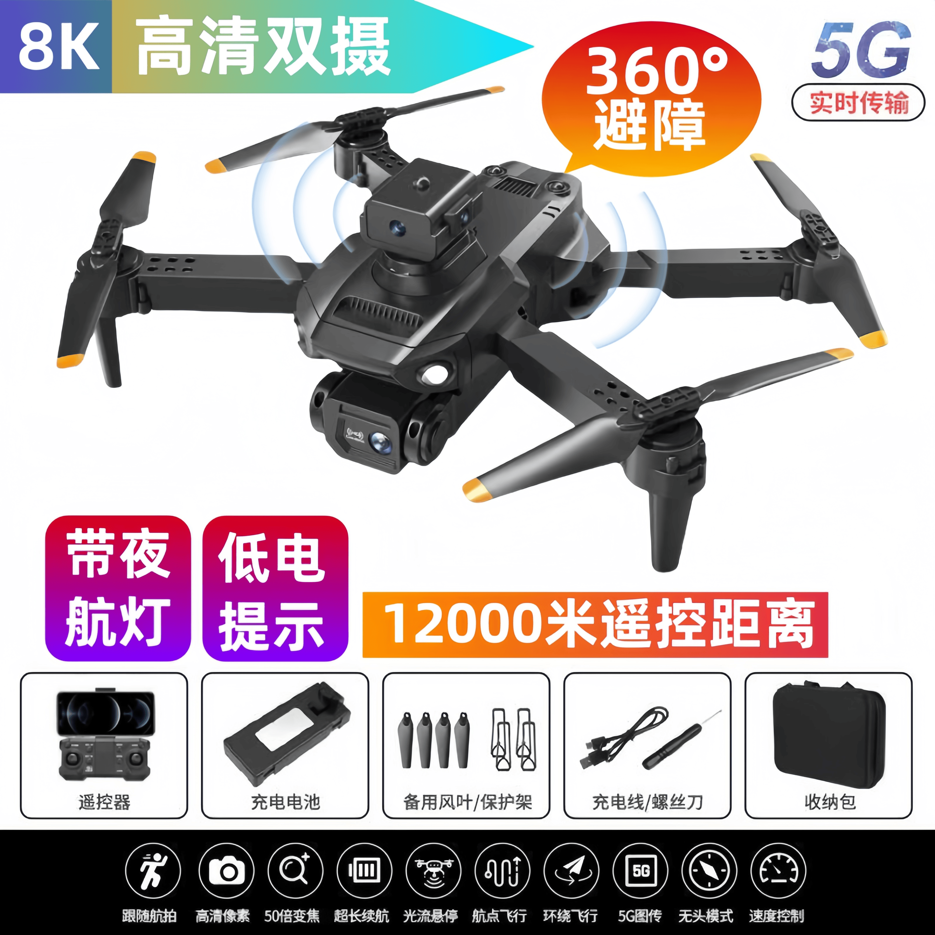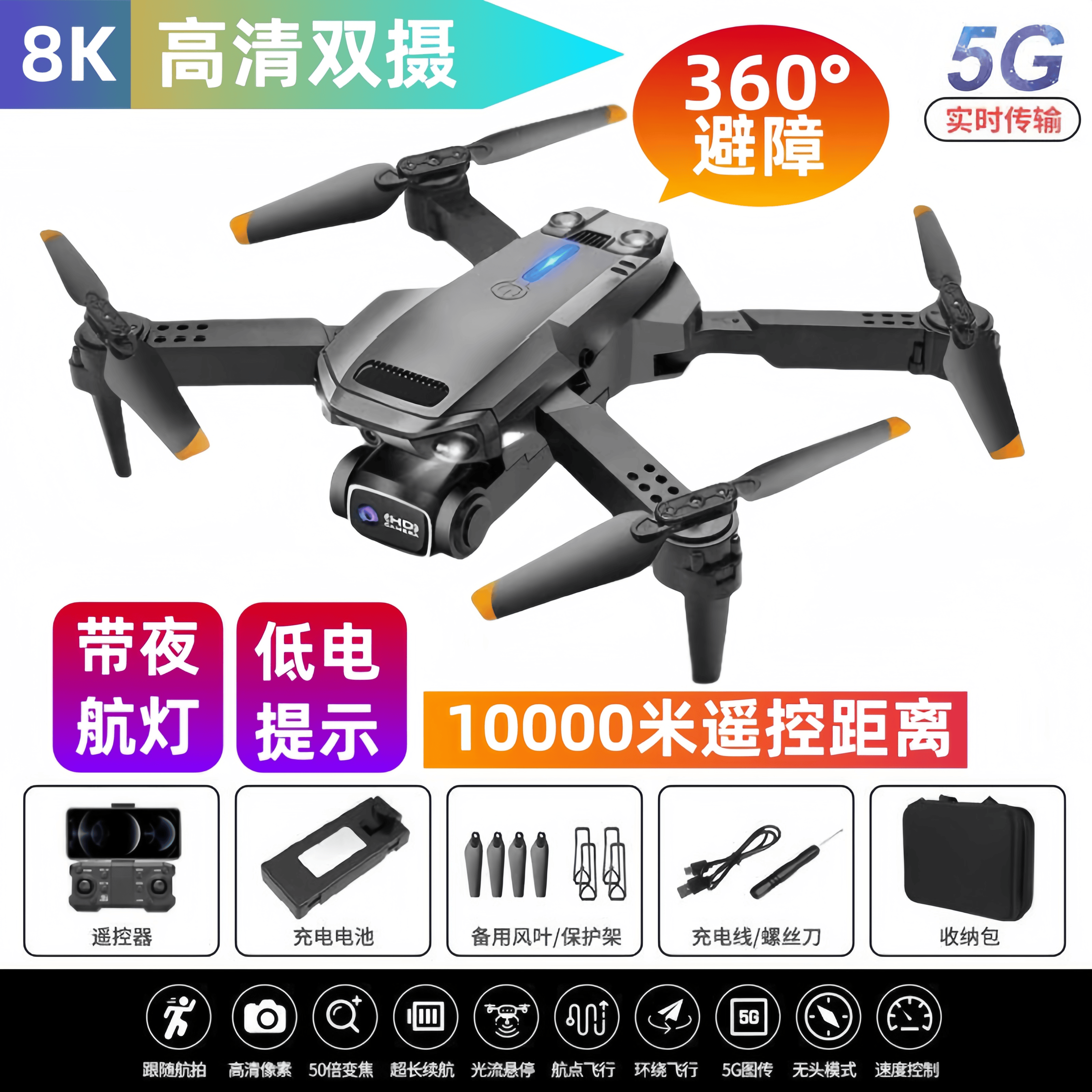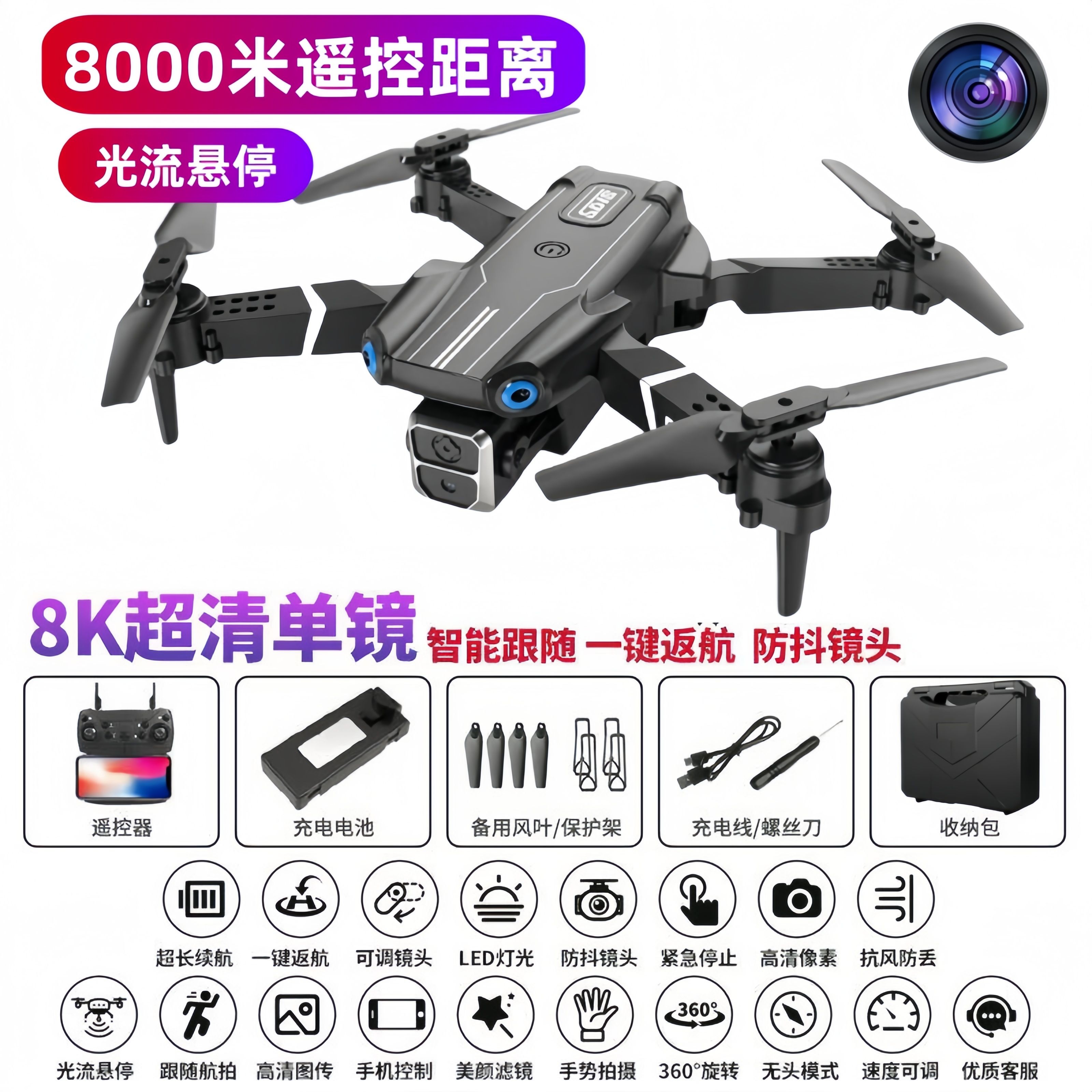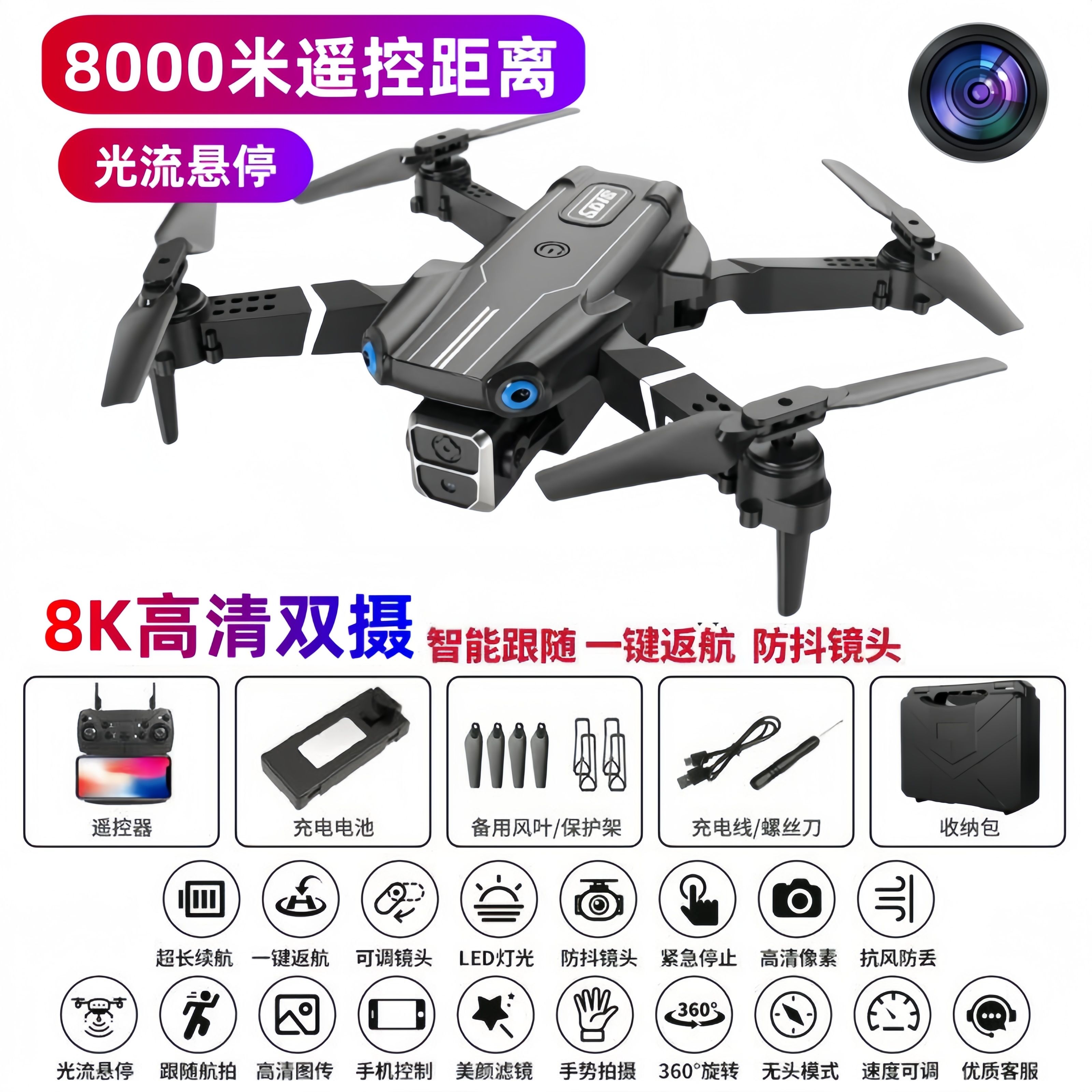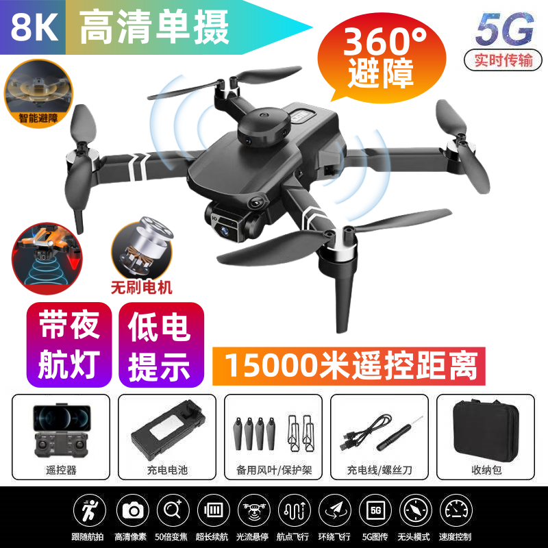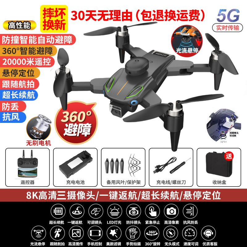 自动返航无人机航拍高清8K光流定位带摄像头避障自拍遥控飞机玩具