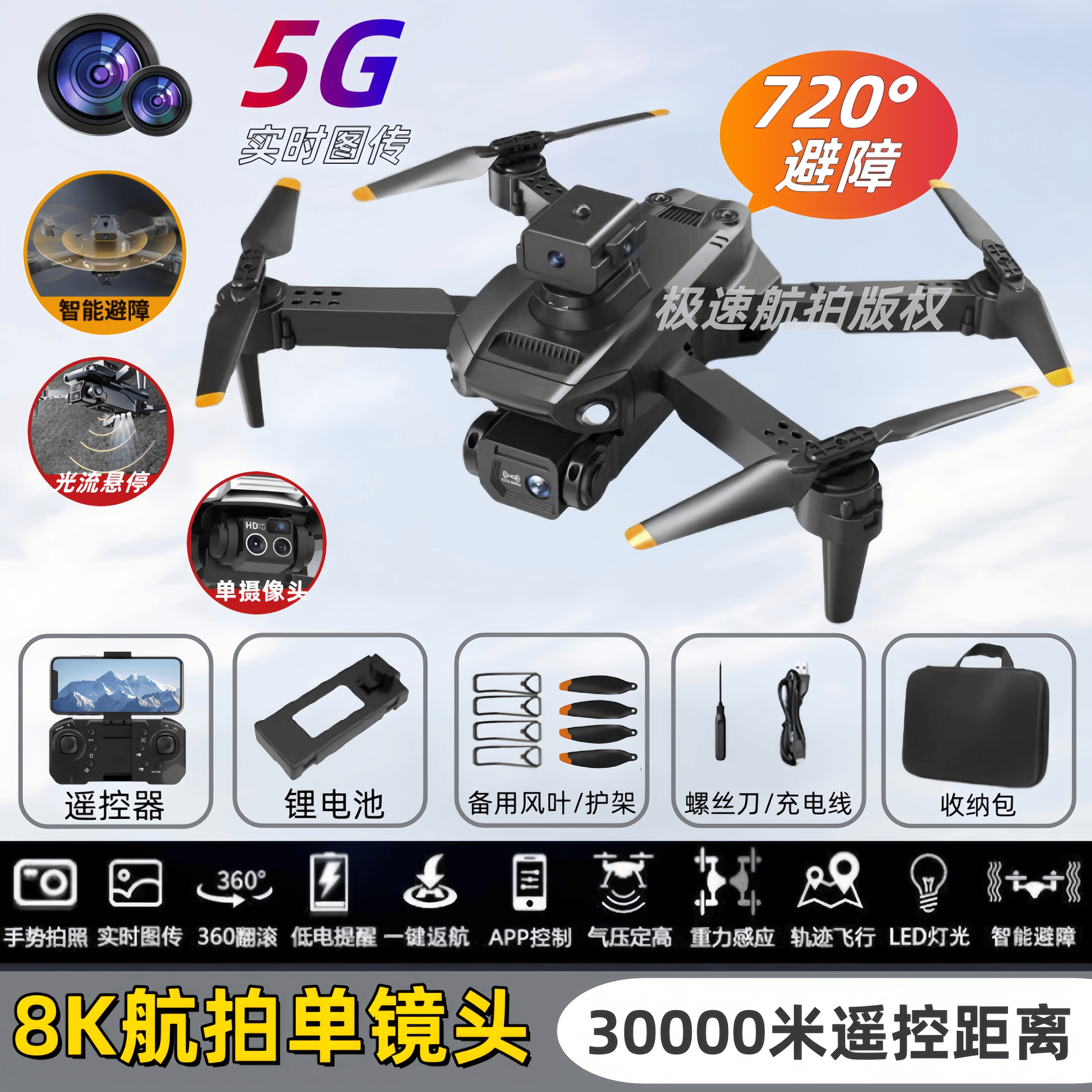 | one battery + accessory bag + remote control battery + storage bag + three-year warranty(一电池+配件包+遥控电池+收纳包+三年质保) | USD $10.3 | 999999 piece available |