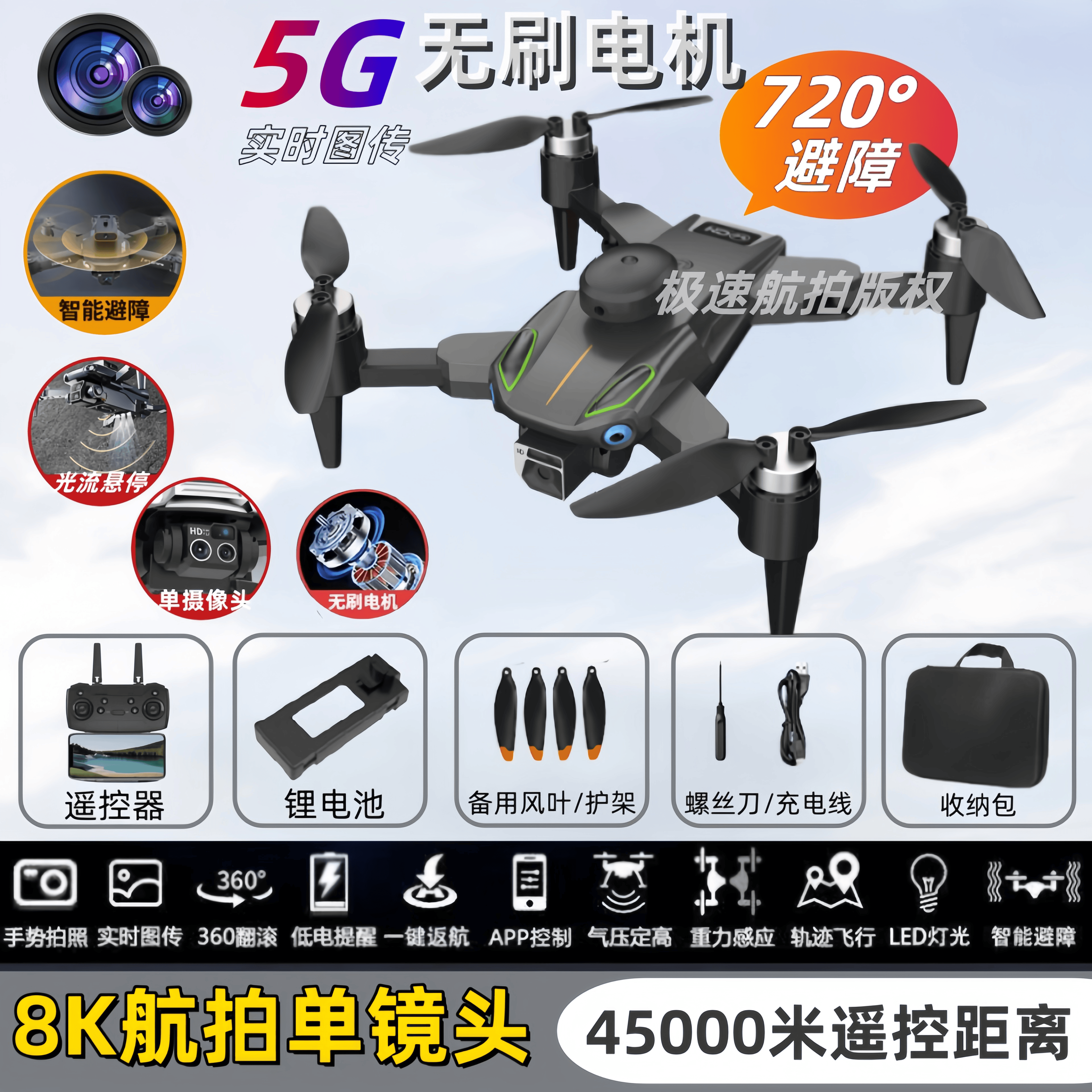 | one battery + accessory bag + remote control battery + storage bag + three-year warranty(一电池+配件包+遥控电池+收纳包+三年质保) | USD $26.73 | 999999 piece available |