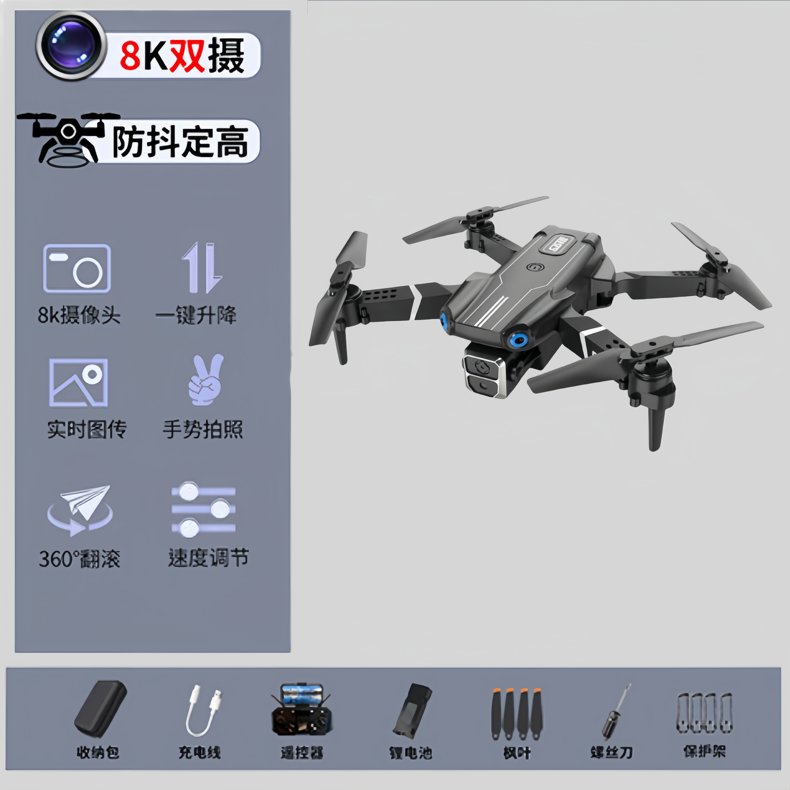 | three batteries + remote control battery + multi-charge + gift package + ten-year replacement(三电池+遥控电池+多充+大礼包+十年换新) | USD $26.73 | 999999 piece available |