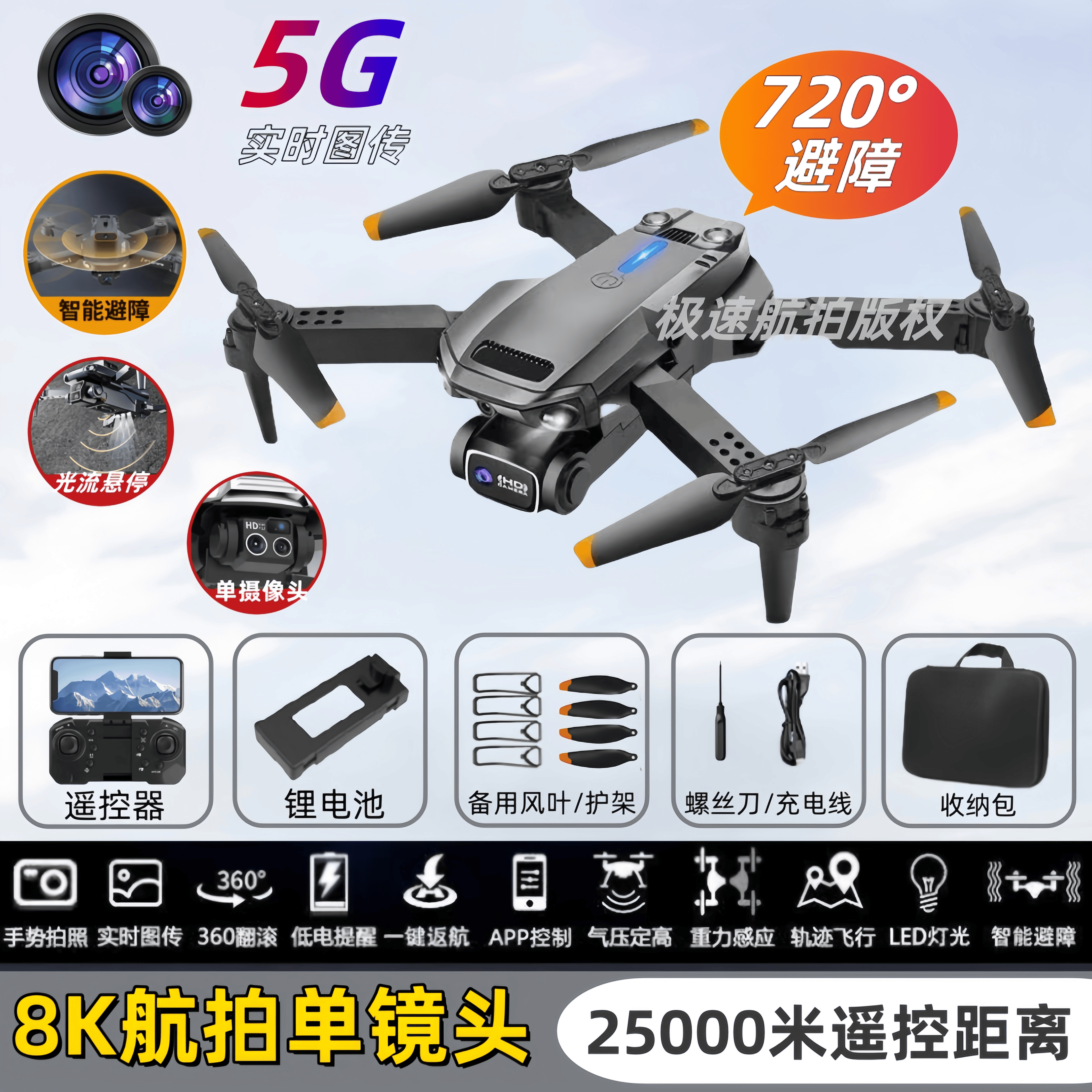 | one battery + accessory bag + remote control battery + storage bag + three-year warranty(一电池+配件包+遥控电池+收纳包+三年质保) | USD $24.93 | 999999 piece available |