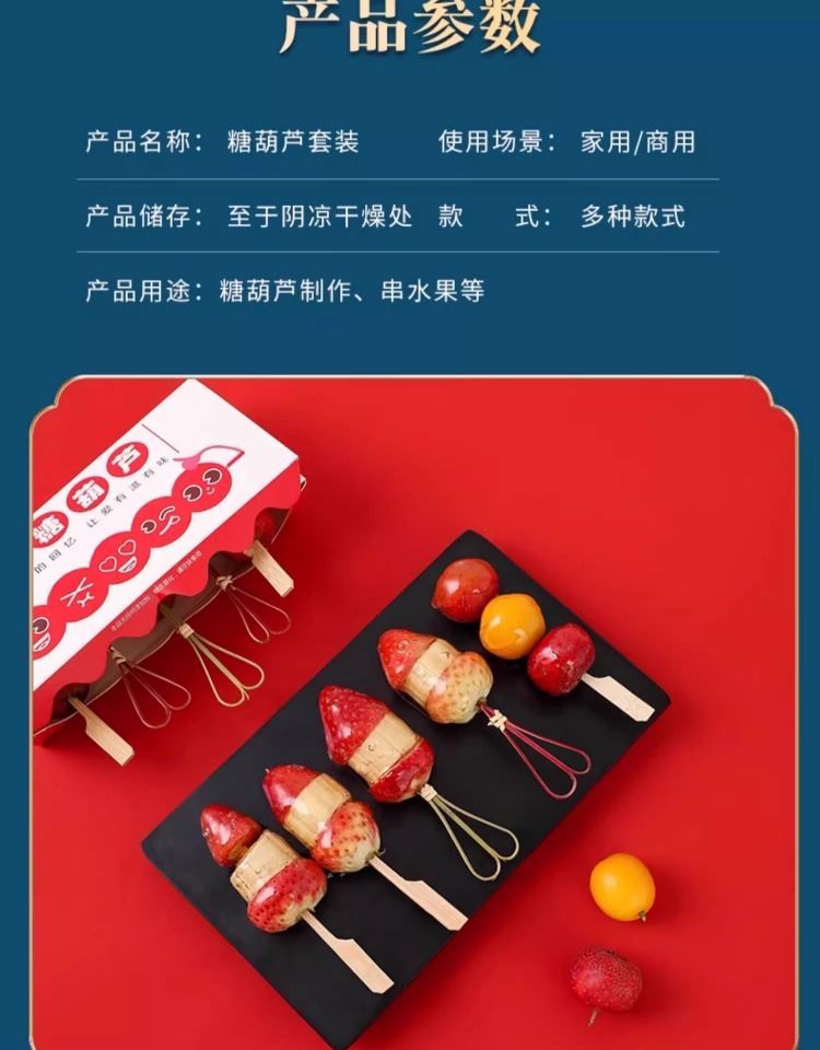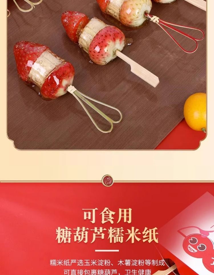 | 50 bamboo sticks [glutinous rice paper for sugar gourd] two-piece set(50只竹签【糖葫芦专用糯米纸】两件套装) | USD $1.34 | 999999 piece available |
