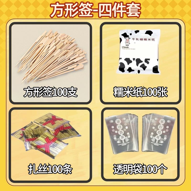 | 200 bamboo sticks [glutinous rice paper + packing bag + rolling belt] 4 pcs set(200只竹签【糯米纸+包装袋+轧带】四件套装) | USD $1.45 | 999999 piece available |