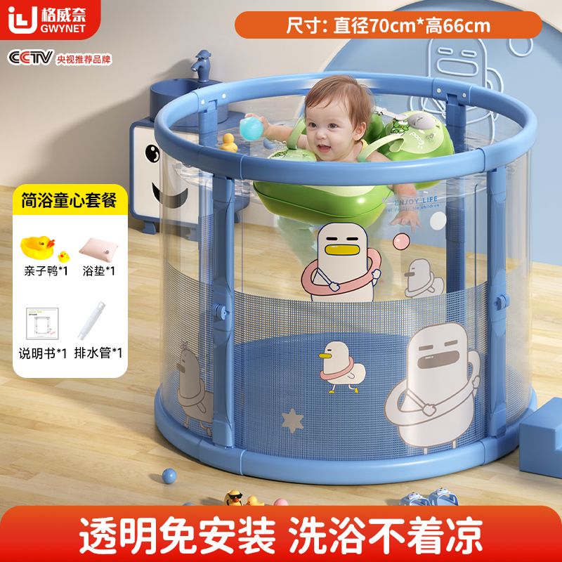 婴儿游泳桶家用宝宝游泳池新生儿童小孩室内加厚可折叠透明洗澡桶