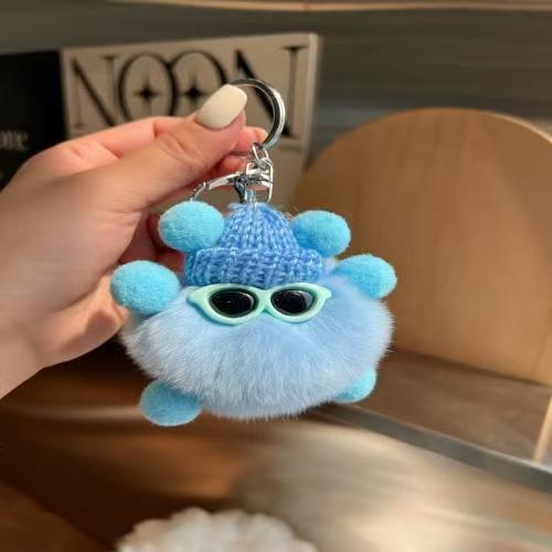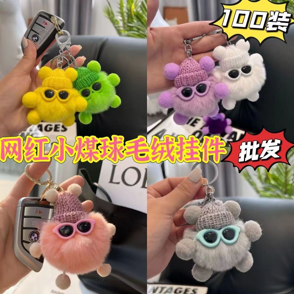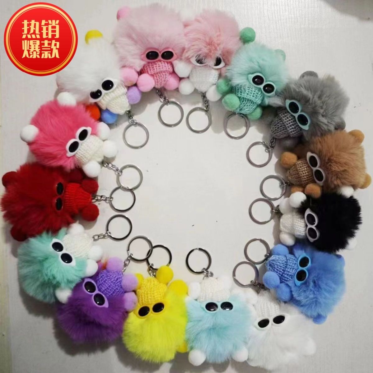 仿獭兔毛小煤球汽车钥匙扣挂件韩国ins网红毛绒书包挂饰挂件公仔