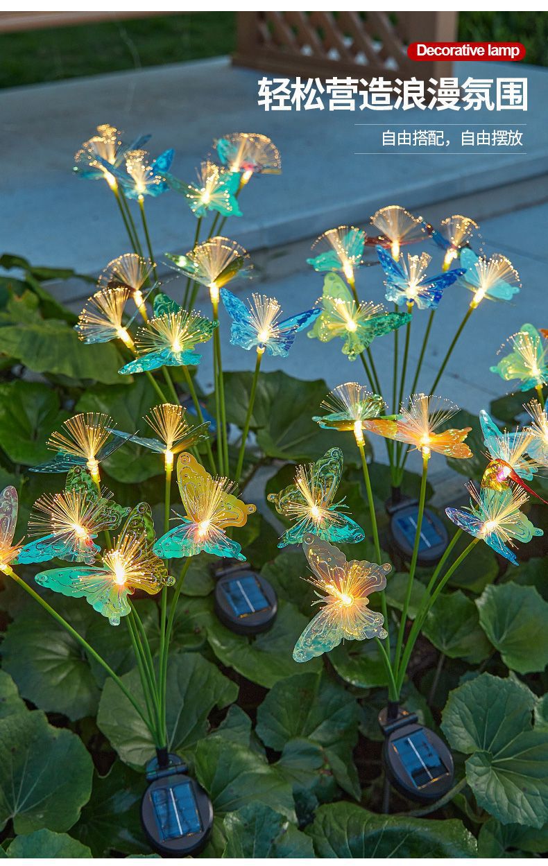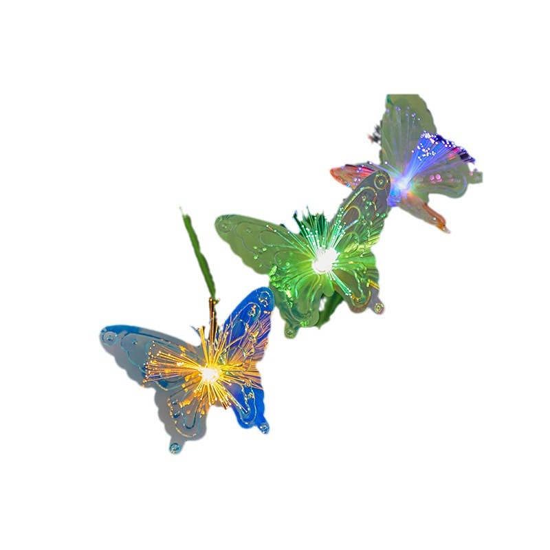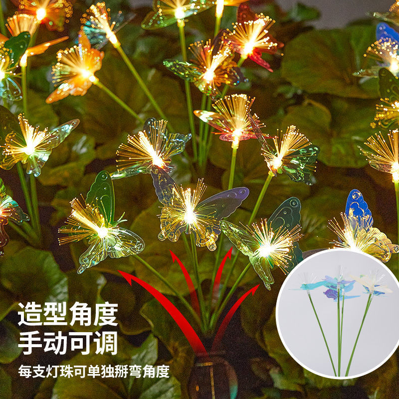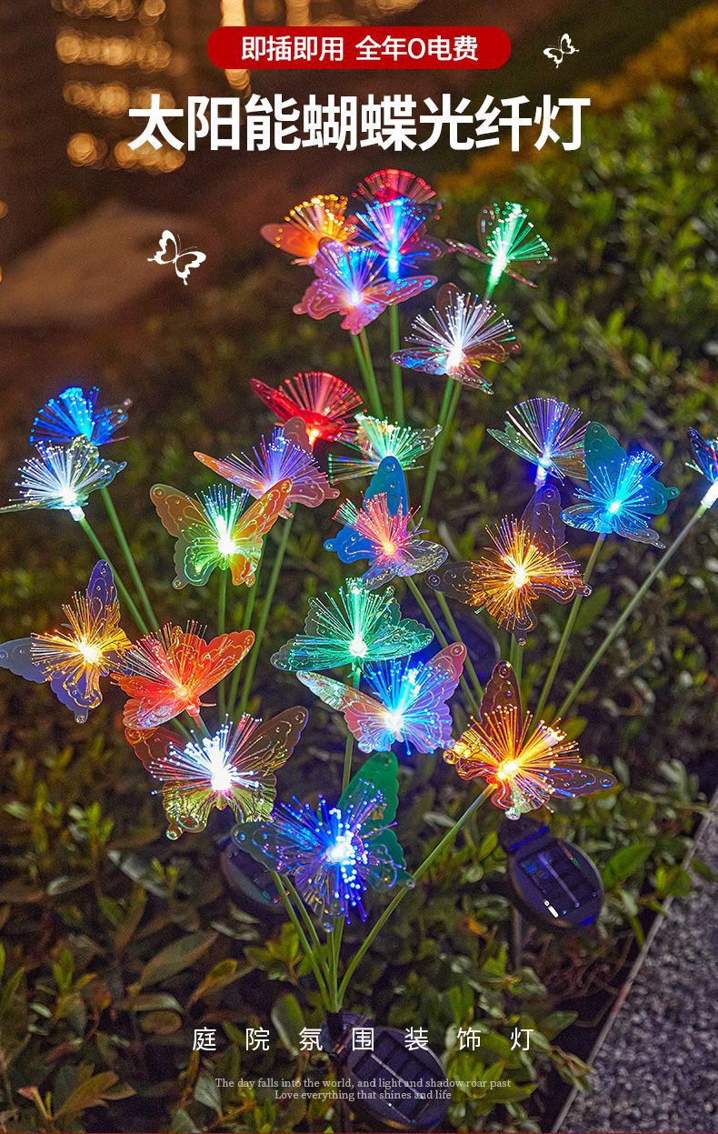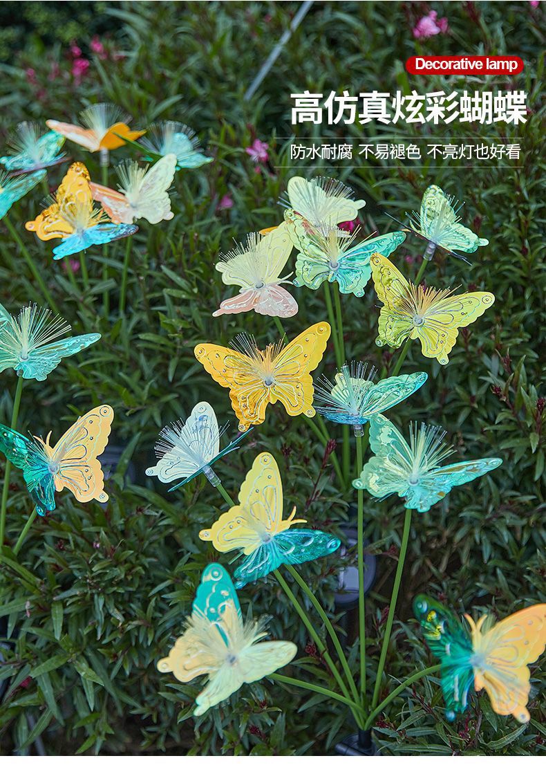 外贸专供太阳能光纤蝴蝶地插灯户外装饰草坪灯户外防水花园彩灯