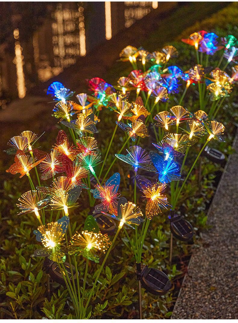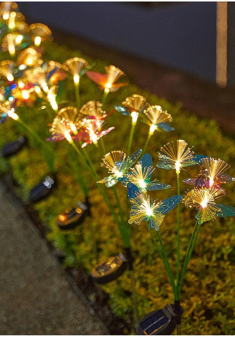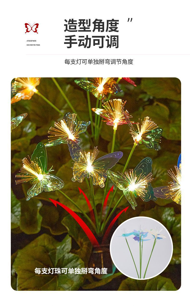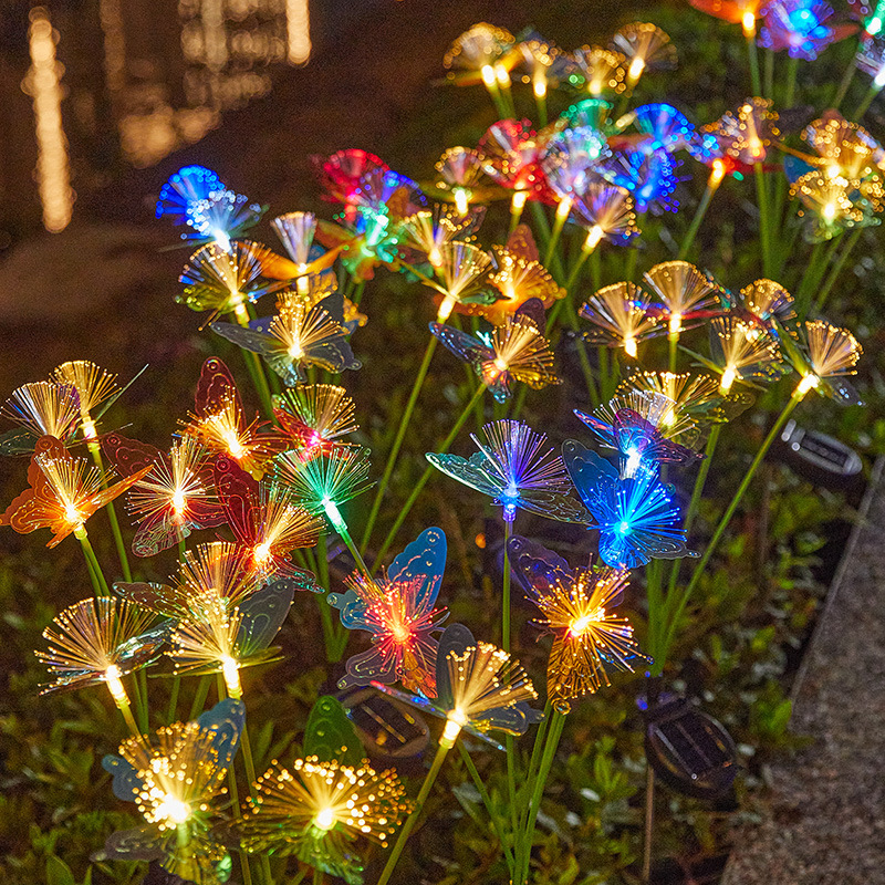 外贸专供太阳能光纤蝴蝶地插灯户外装饰草坪灯户外防水花园彩灯