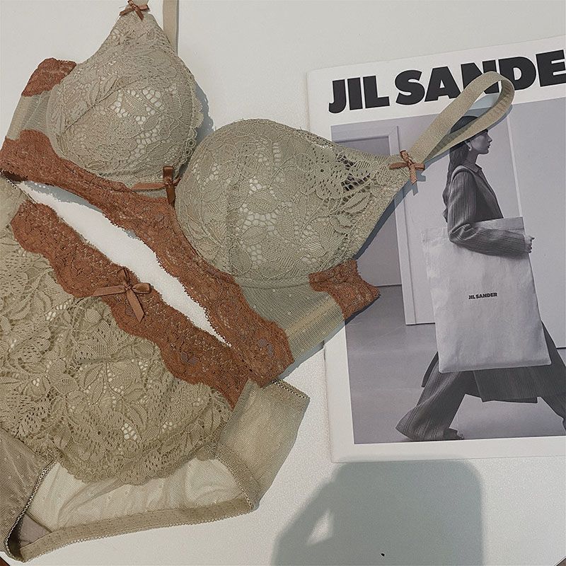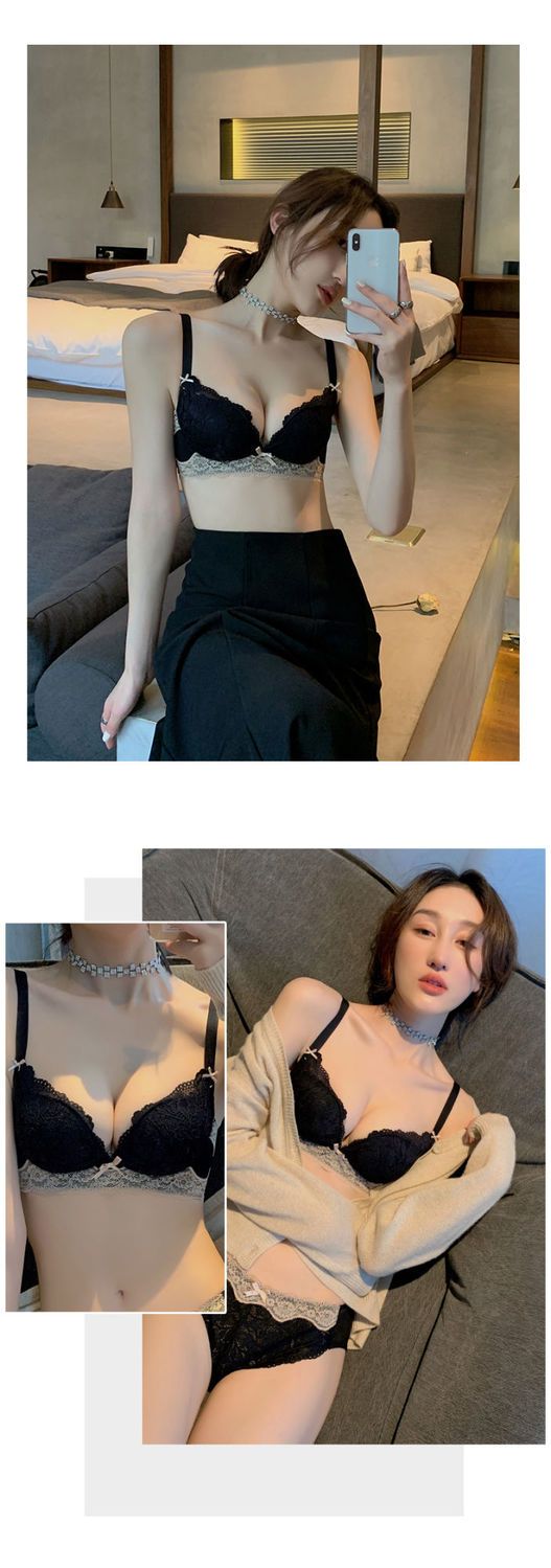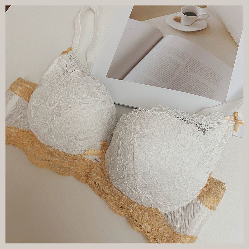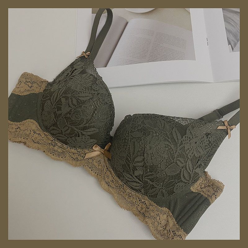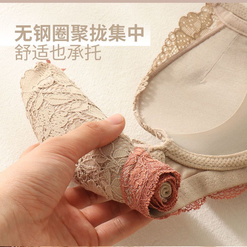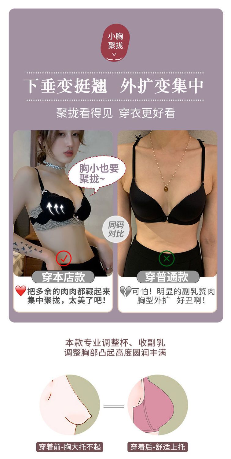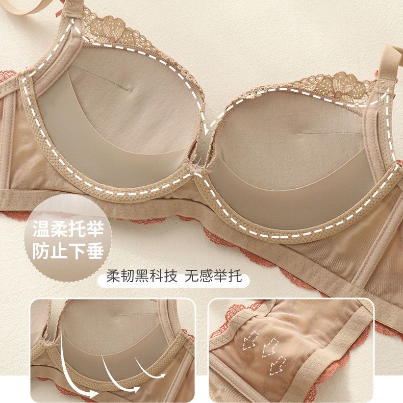 日系内衣女小胸聚拢加厚调整型收副乳上托无钢圈性感蕾丝文胸套装