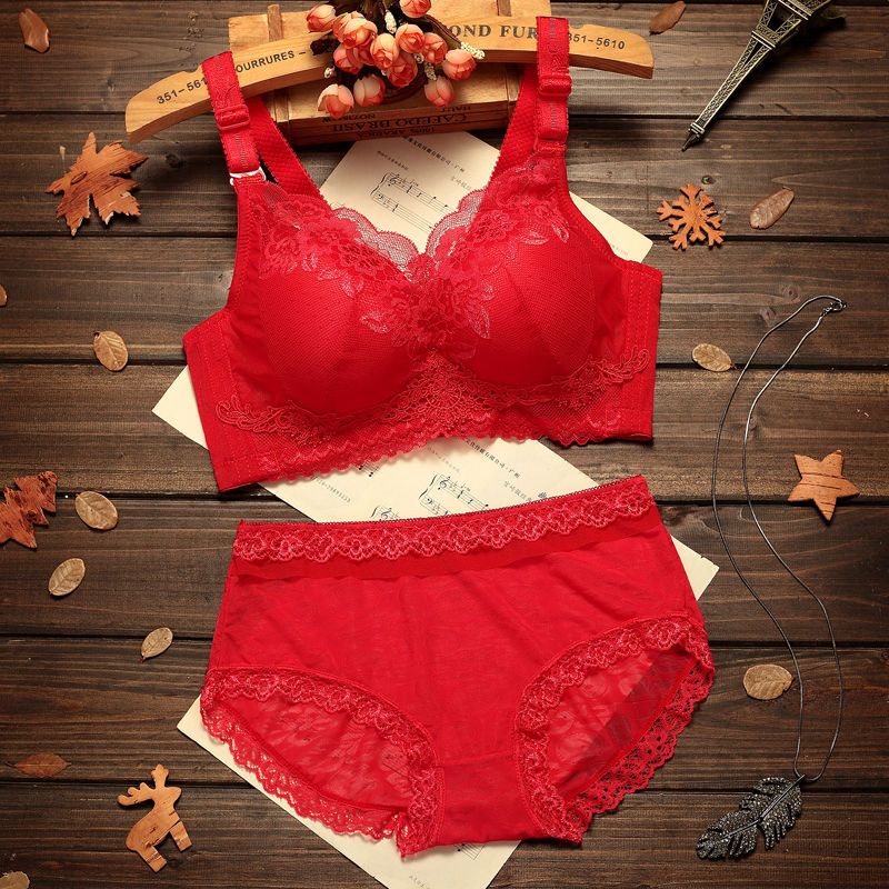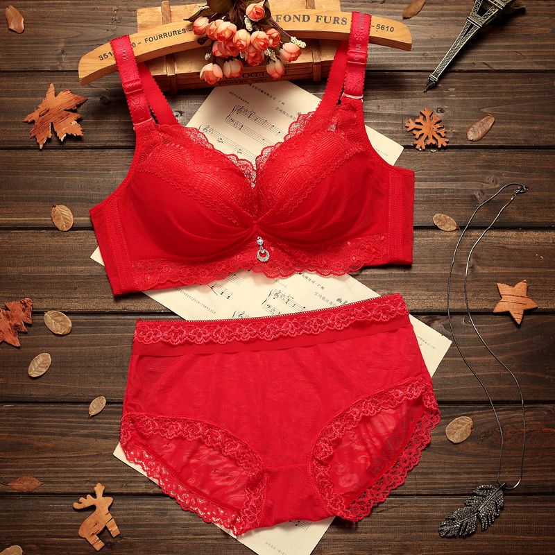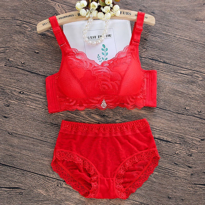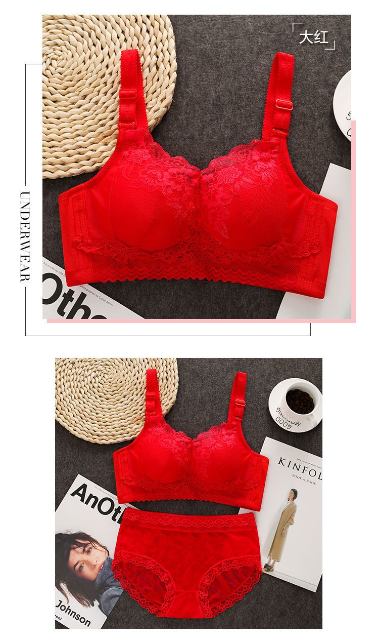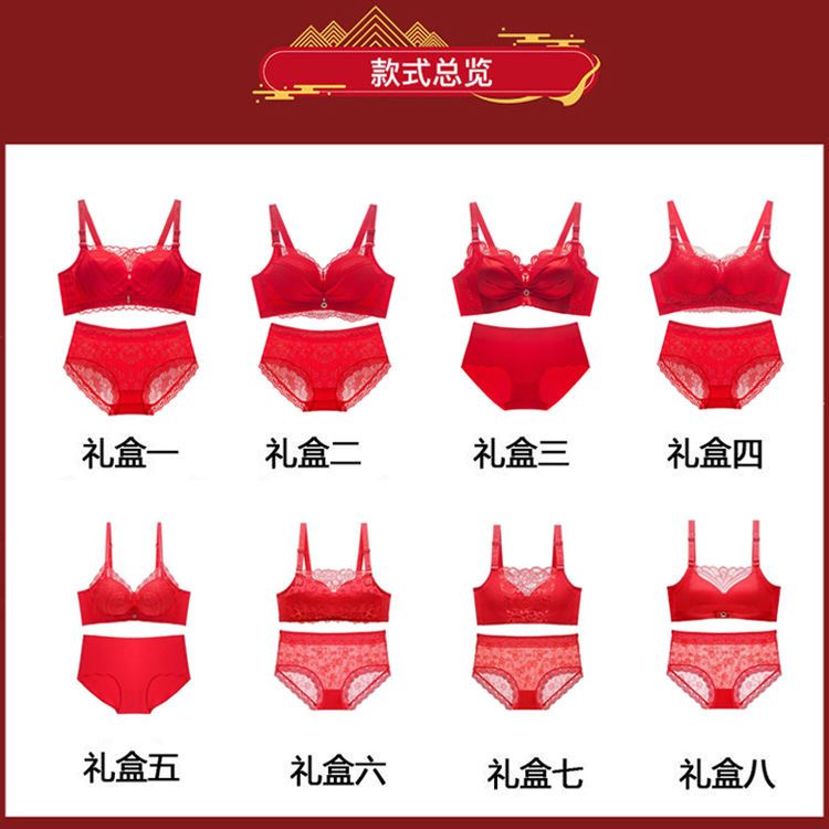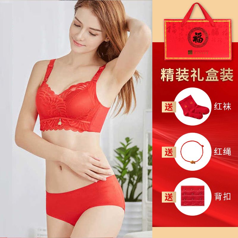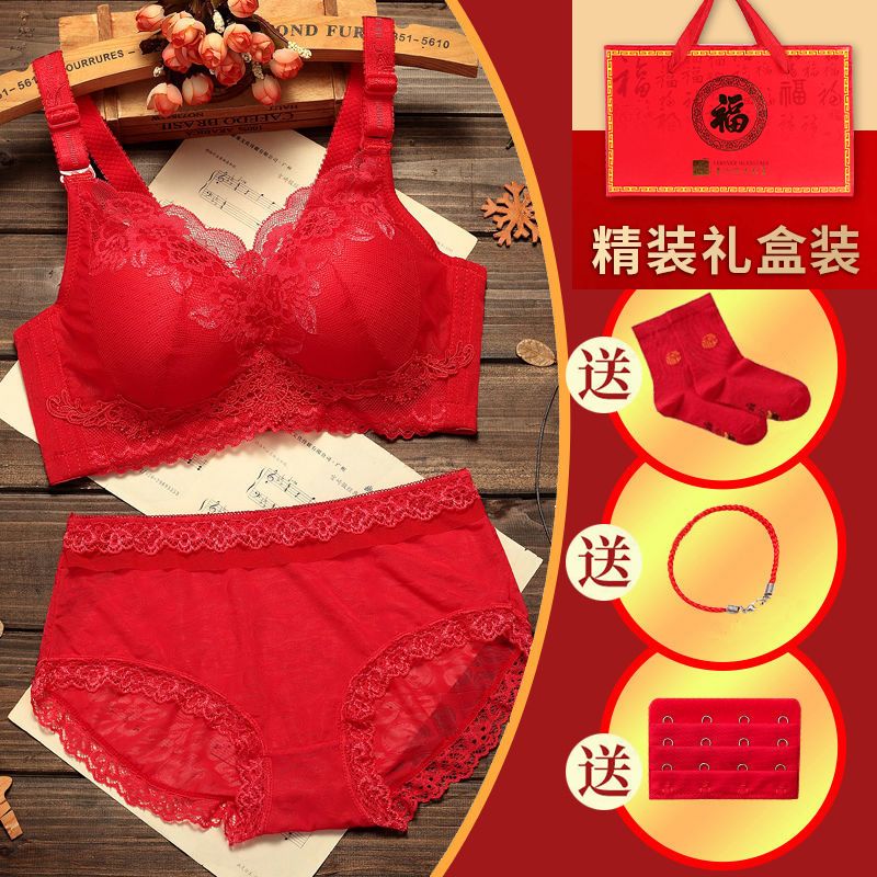 【薄款/厚款可选】本命年红色文胸套装结婚新娘内衣小胸聚拢胸罩
