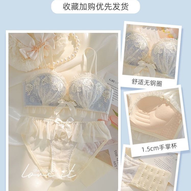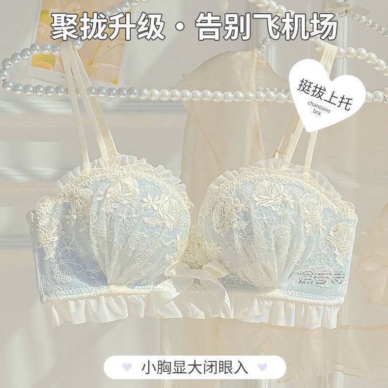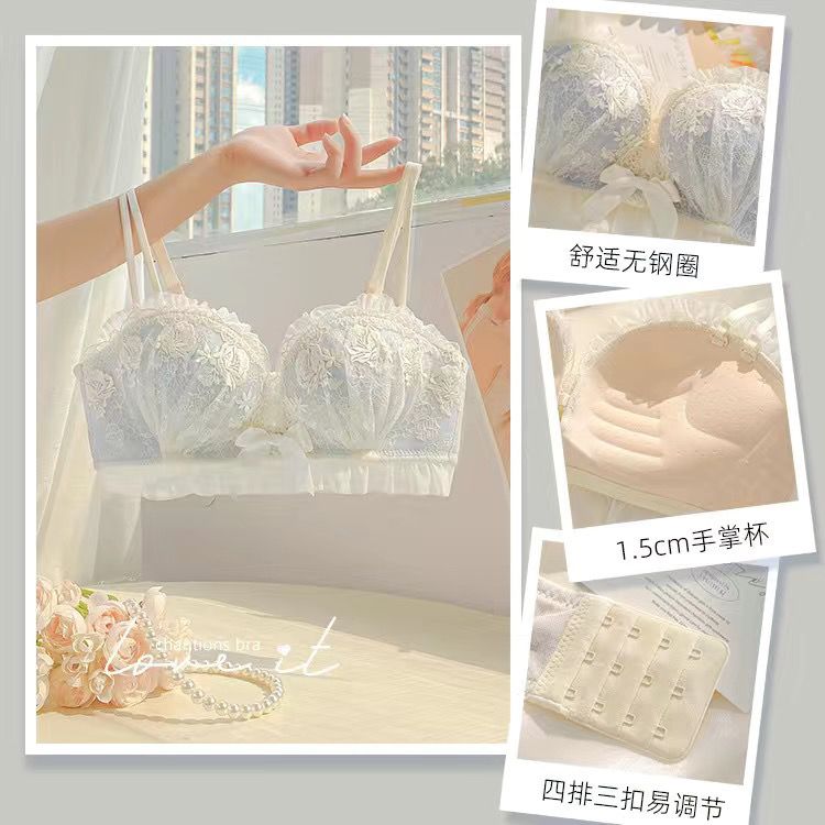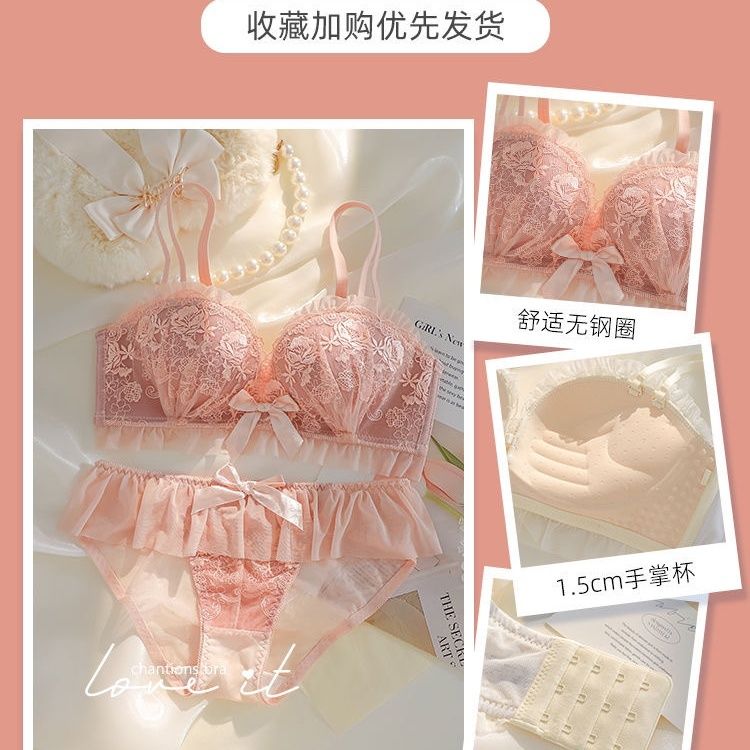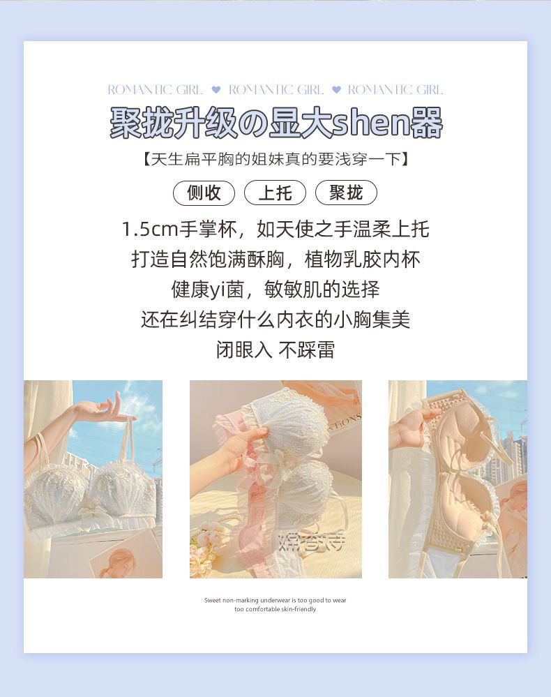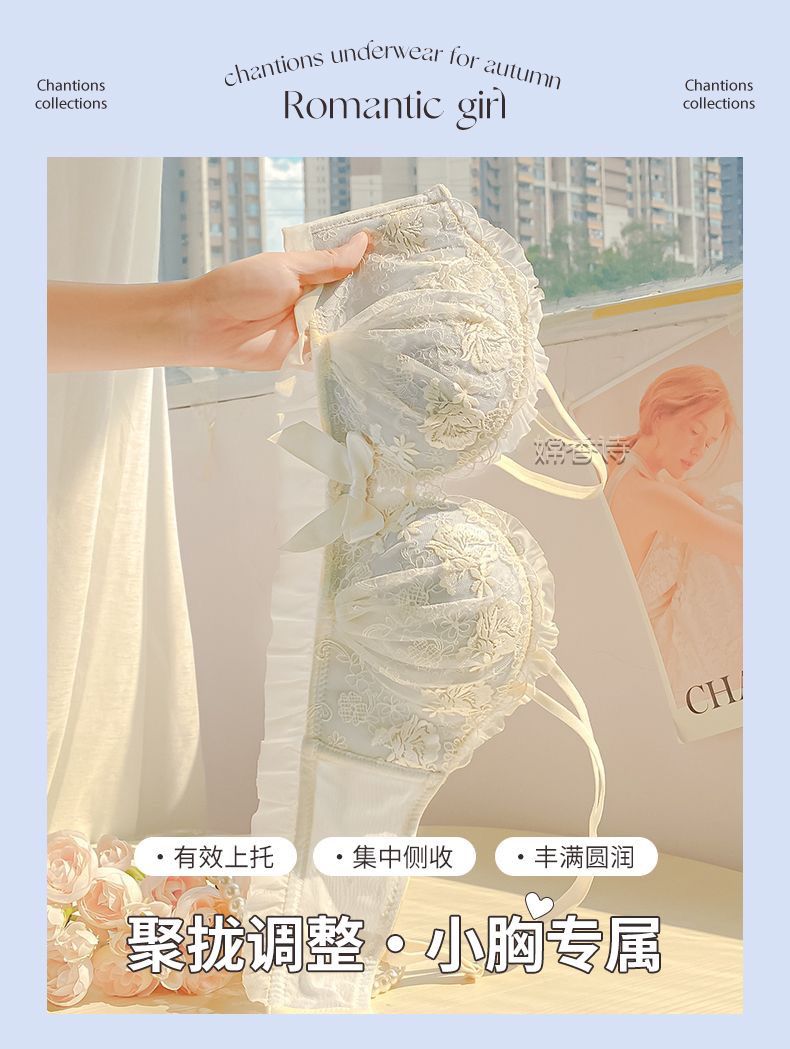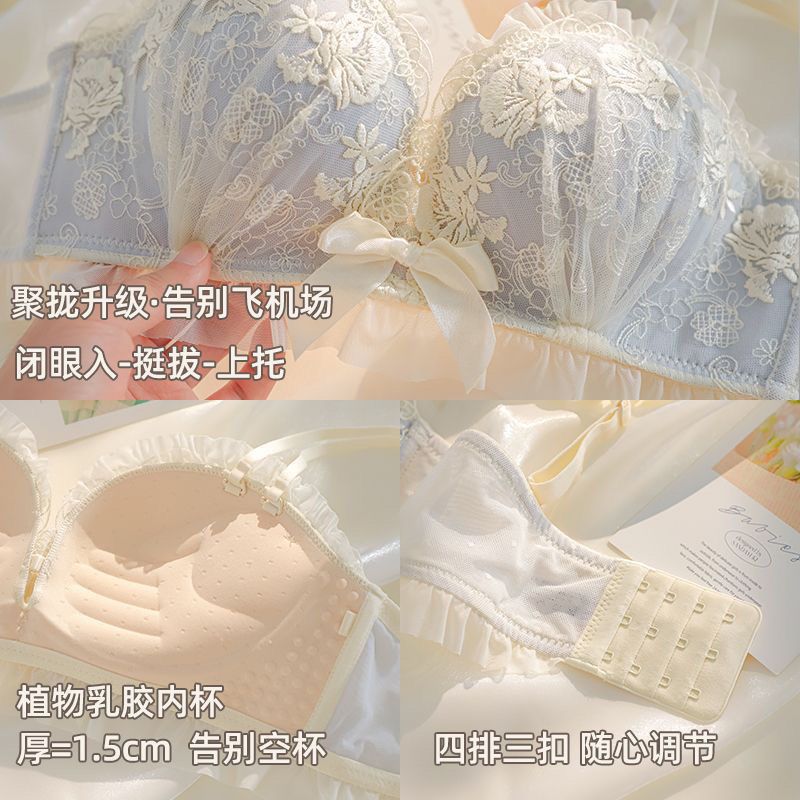 在逃公主聚拢纯欲蕾丝胸罩收副乳防下垂无钢圈性感甜美内衣套装
