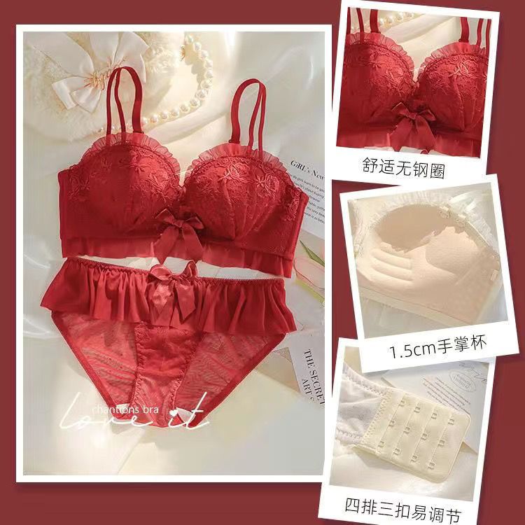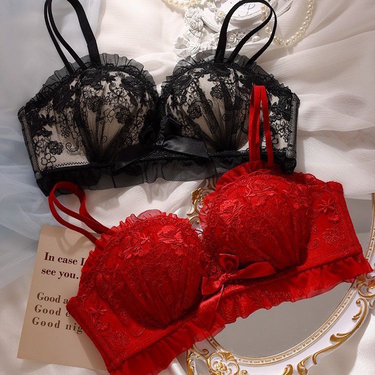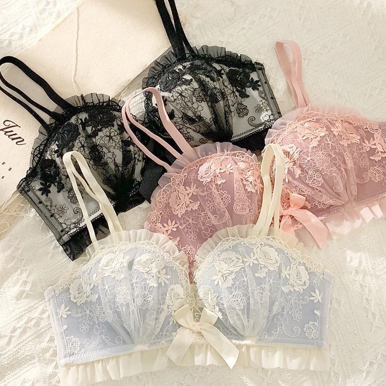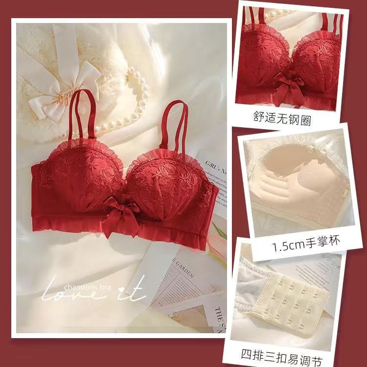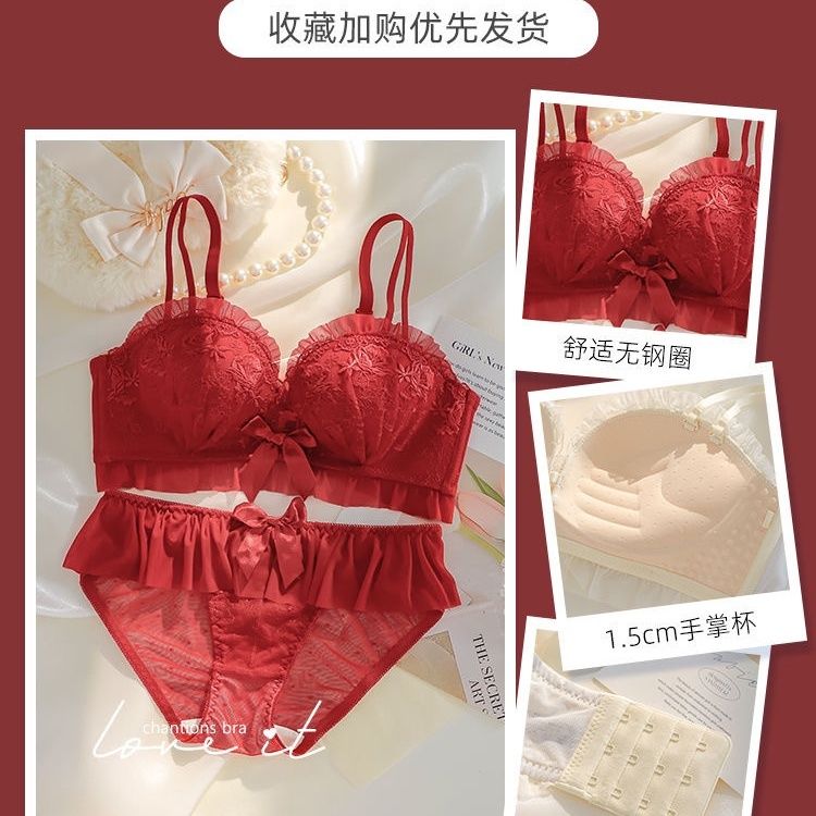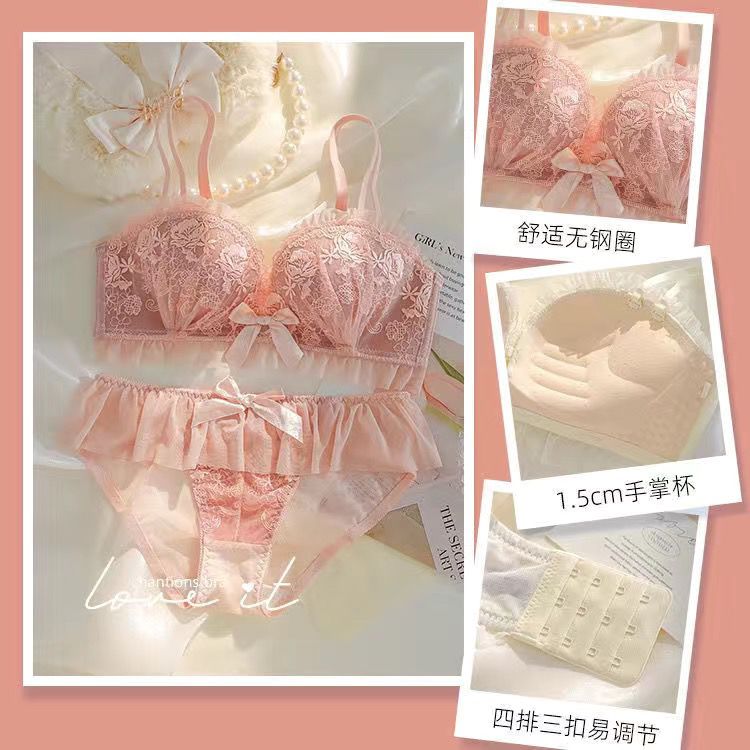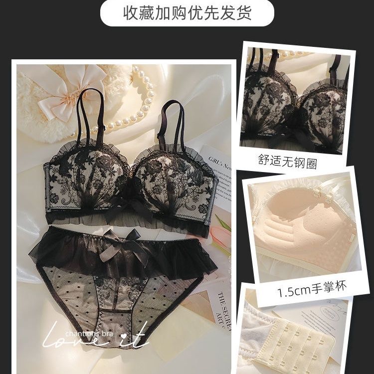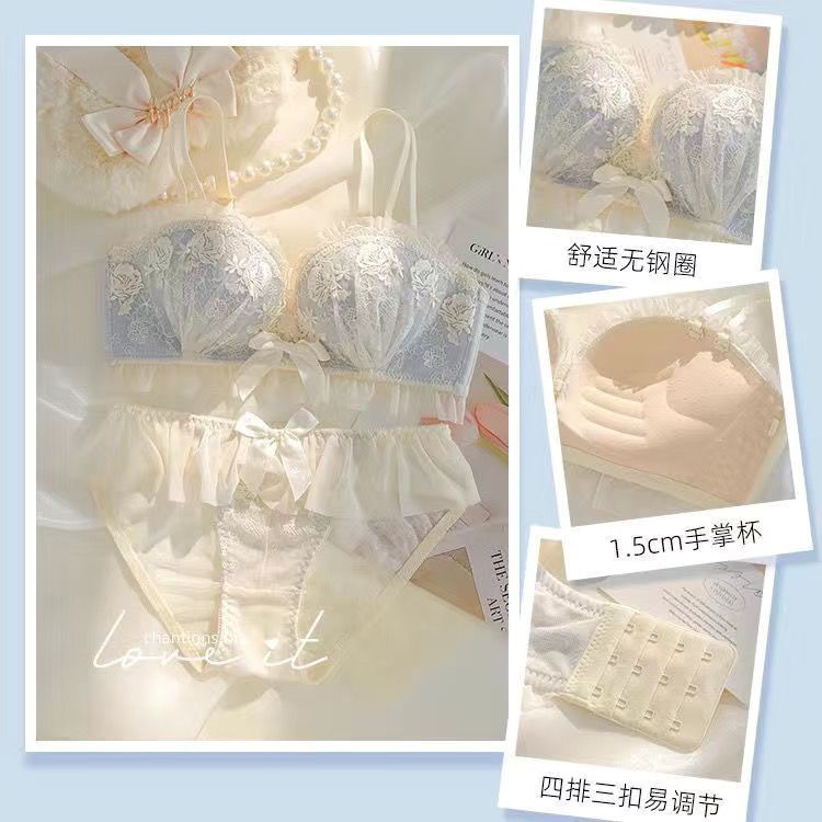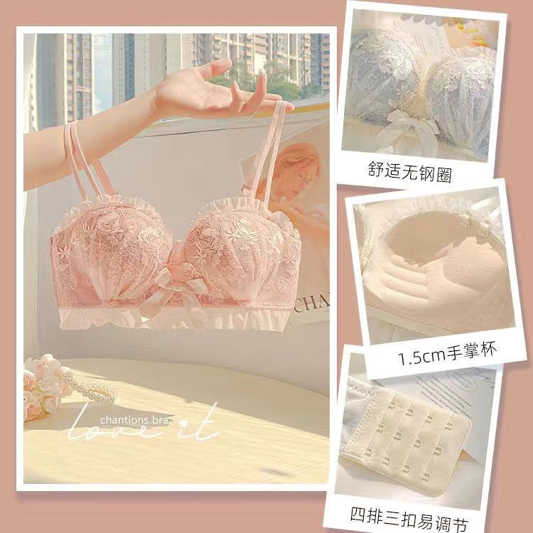 在逃公主聚拢纯欲蕾丝胸罩收副乳防下垂无钢圈性感甜美内衣套装