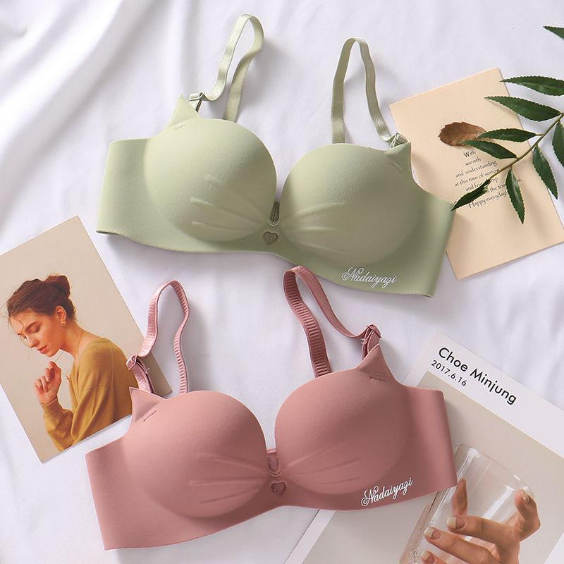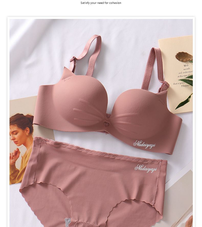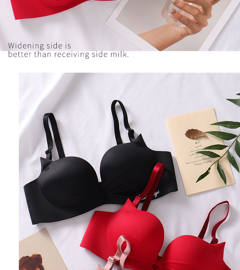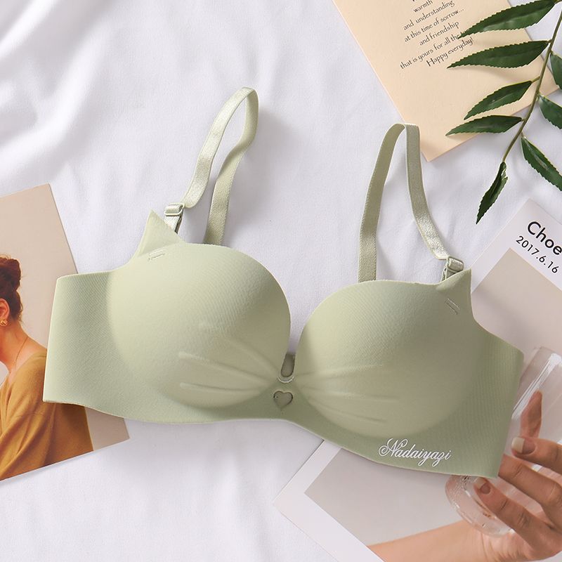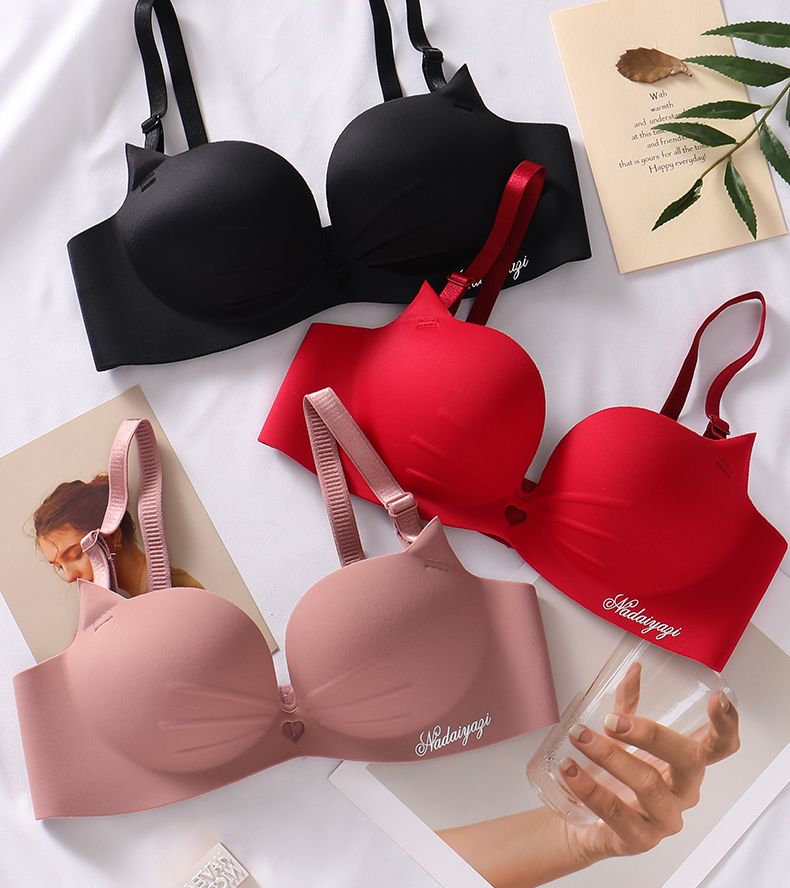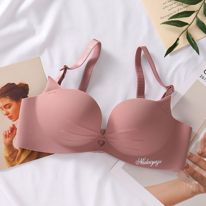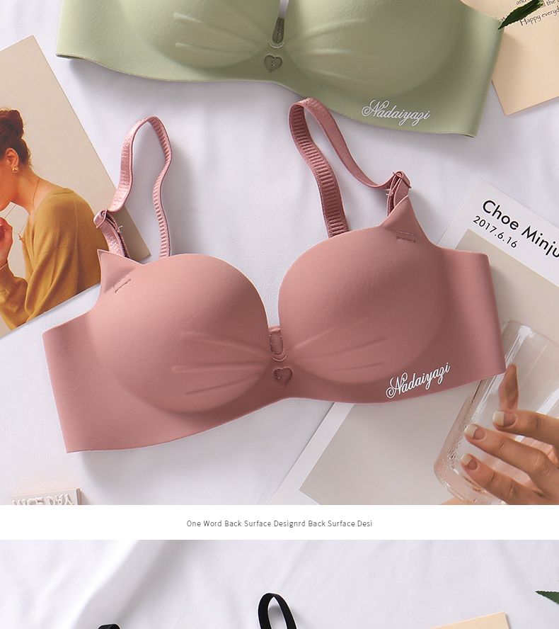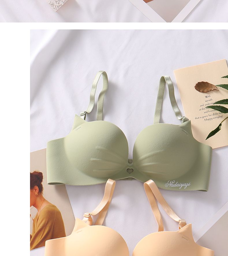 一片式无痕内衣套装性感少女小胸聚拢文胸舒适无钢圈文胸猫头款女