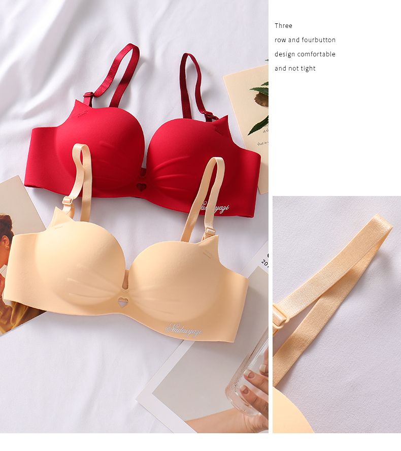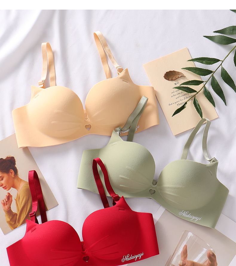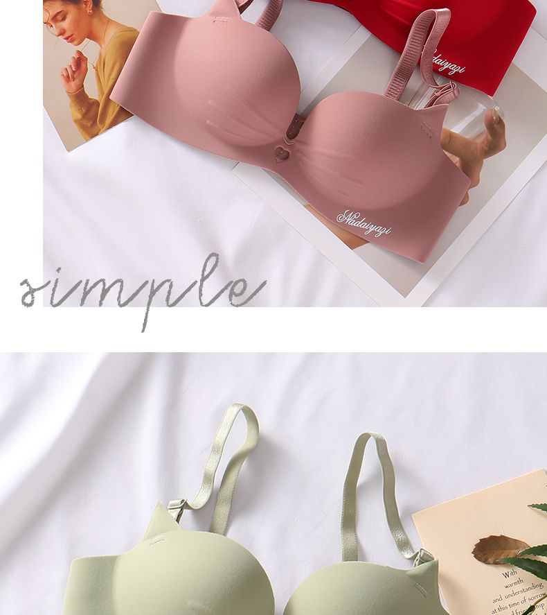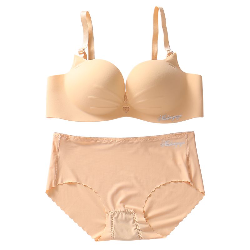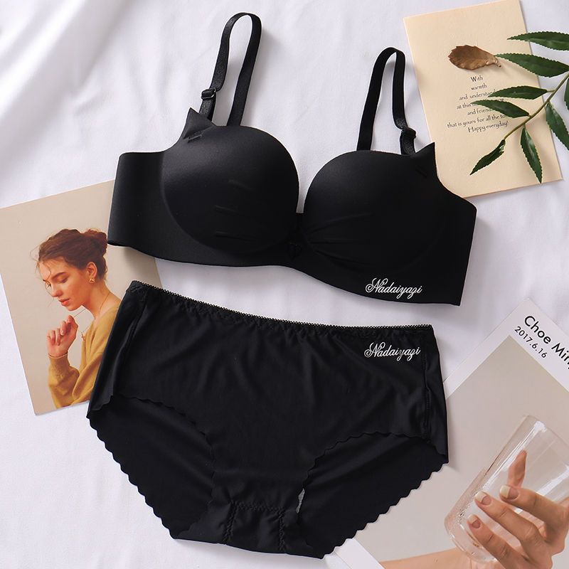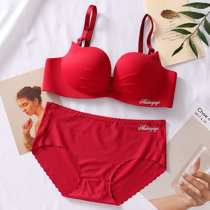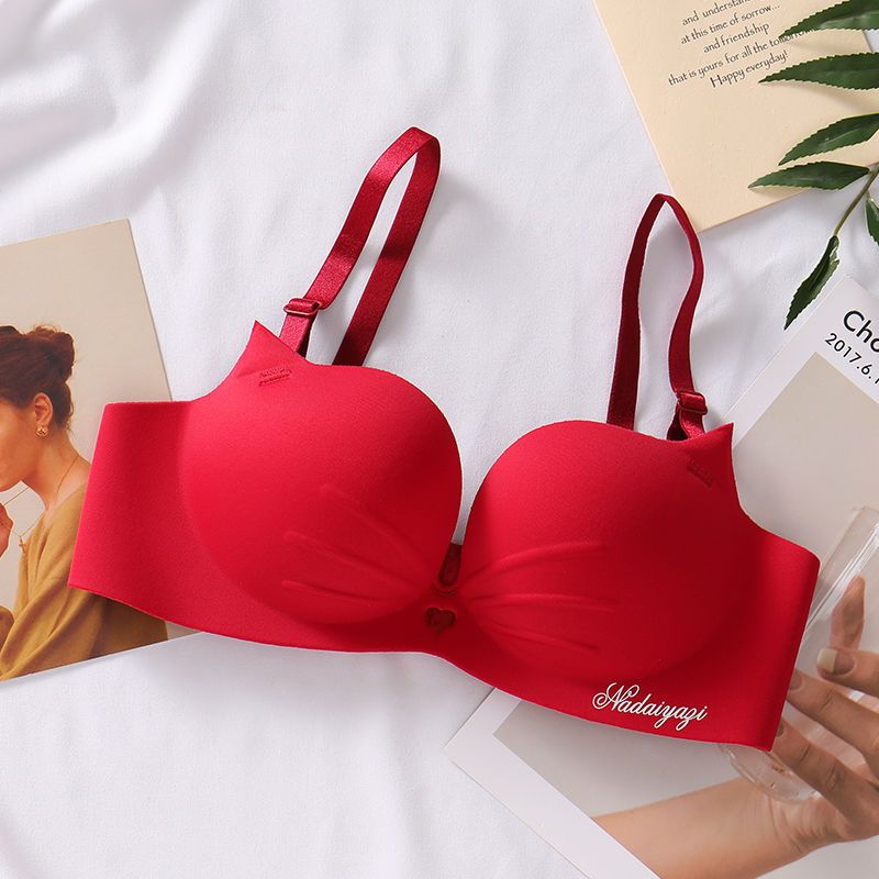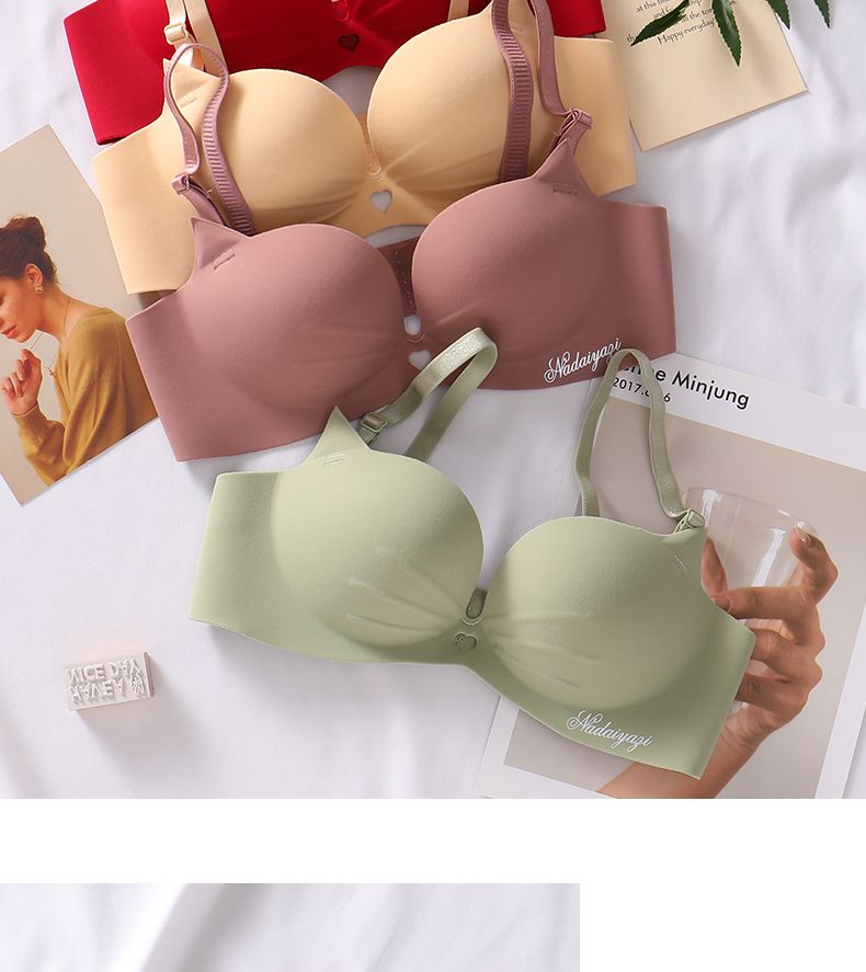 一片式无痕内衣套装性感少女小胸聚拢文胸舒适无钢圈文胸猫头款女